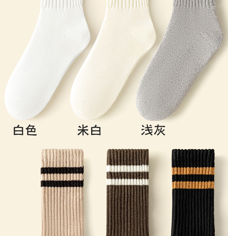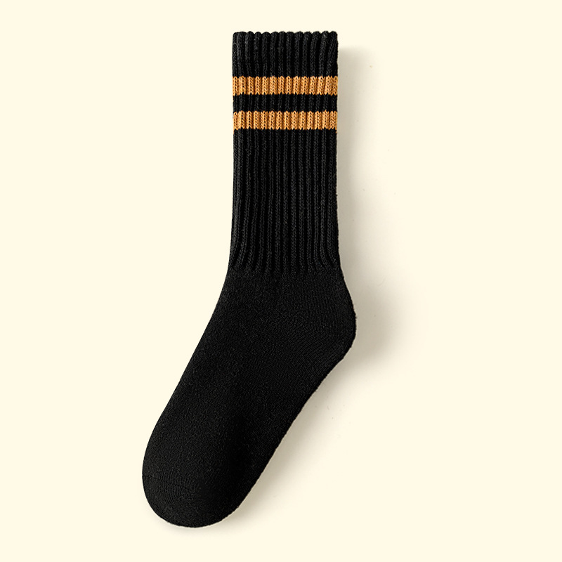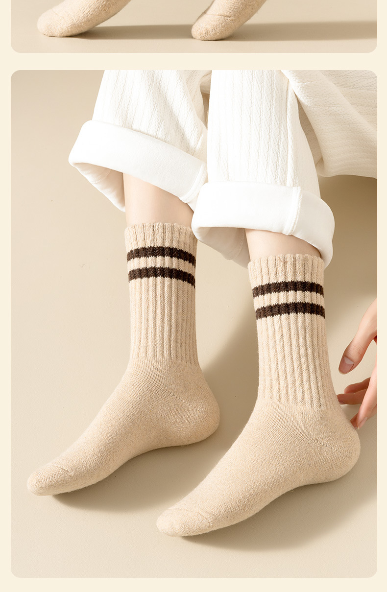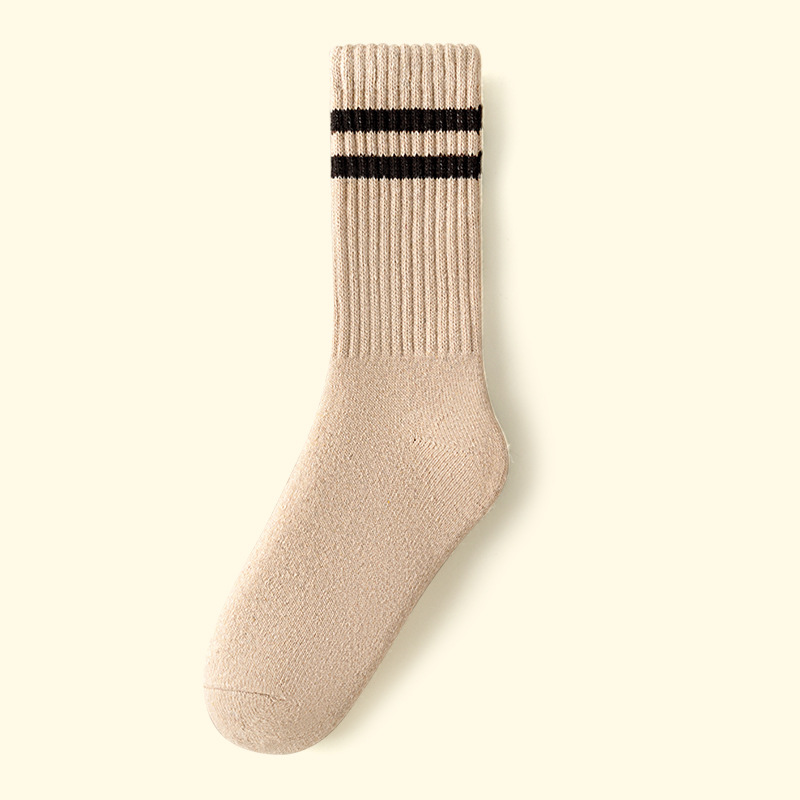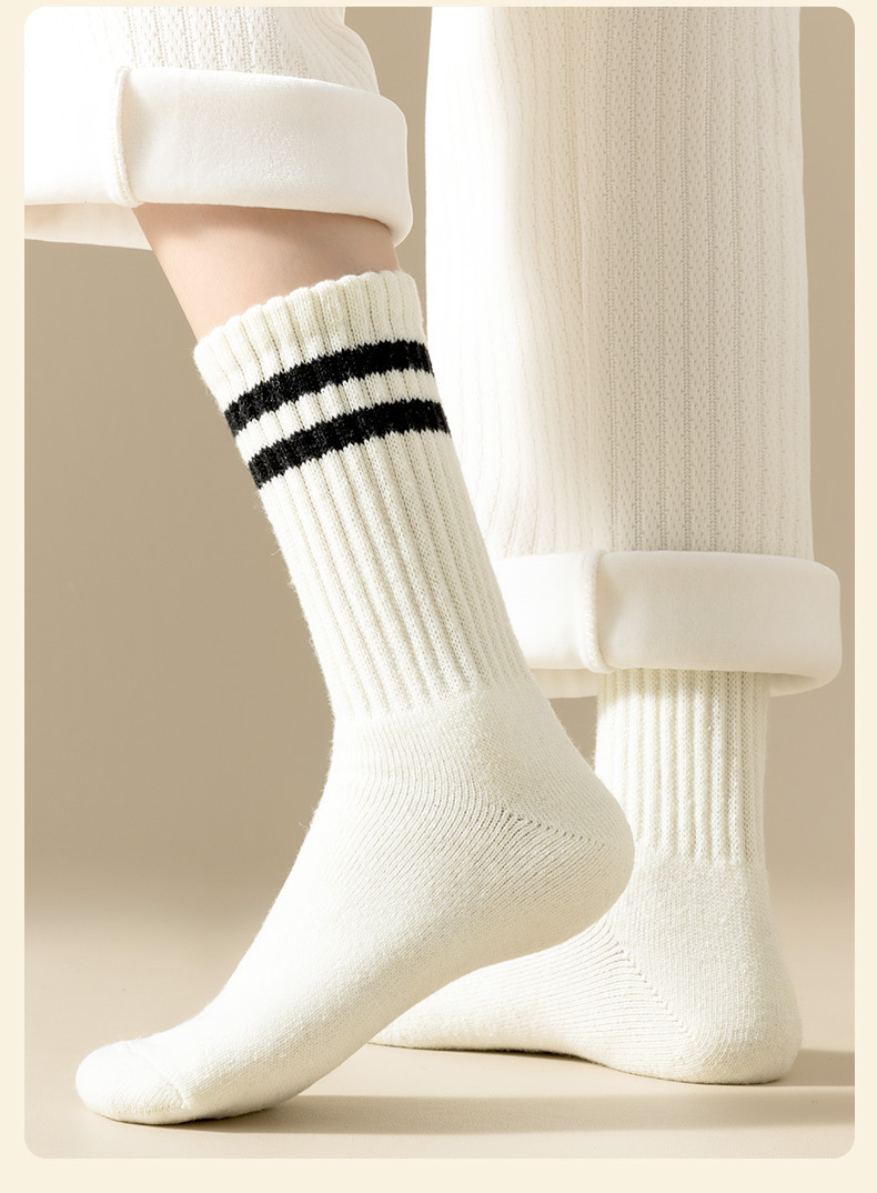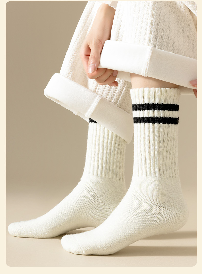 가을과 겨울의 24 년 동안 새로운 테리 땀 흡수성 두꺼운 평행 바 줄무늬 냉간 부동액 따뜻한 긴 튜브 여성용 양말을 선호했습니다.스토어 가기