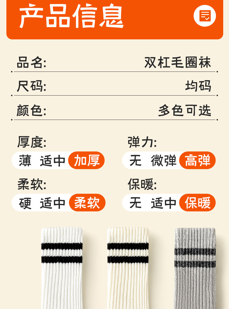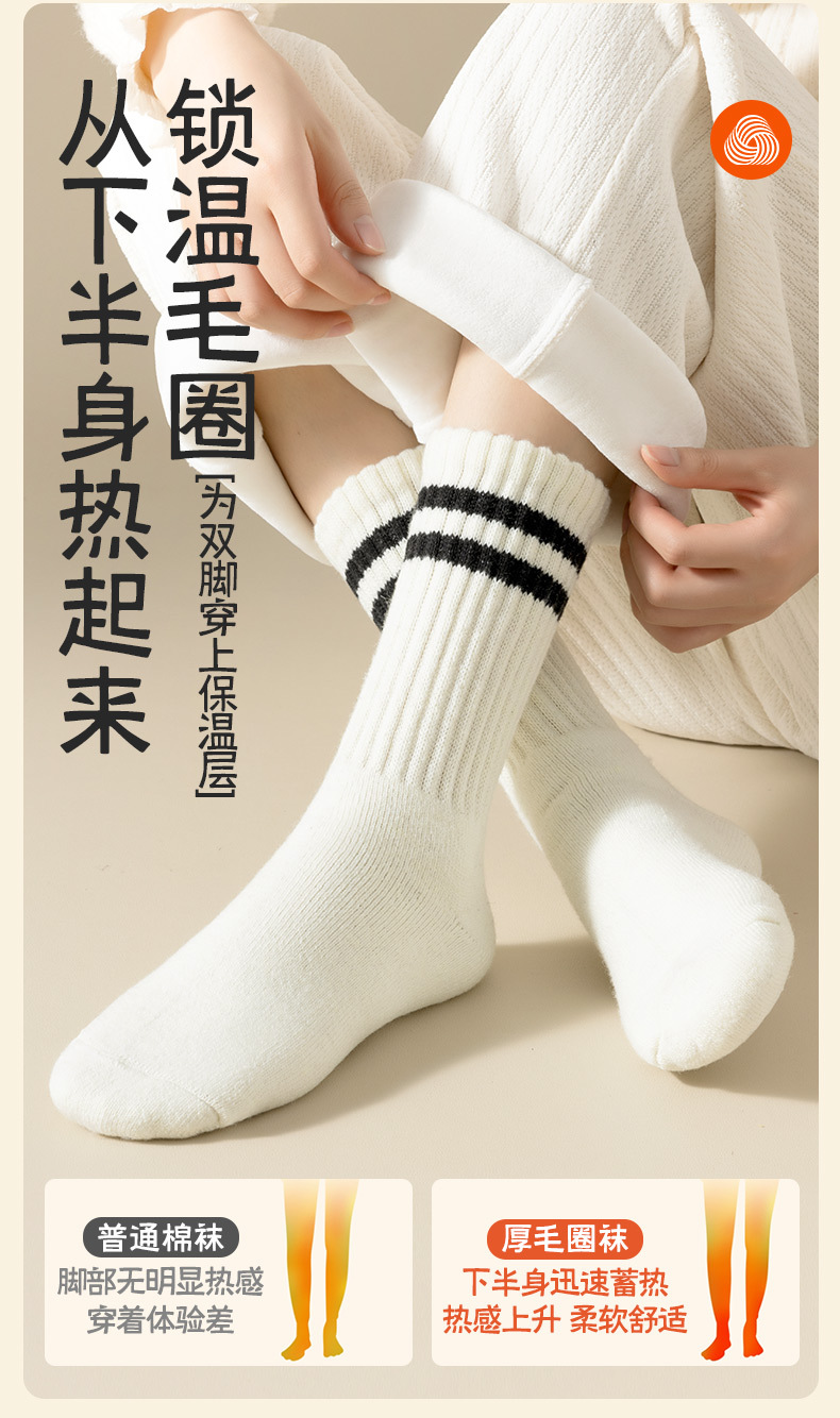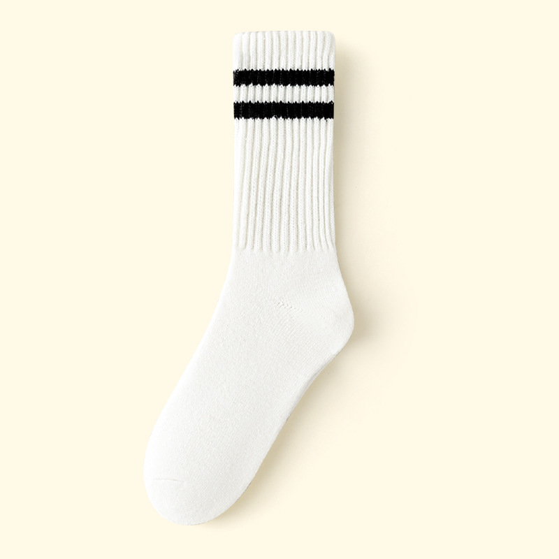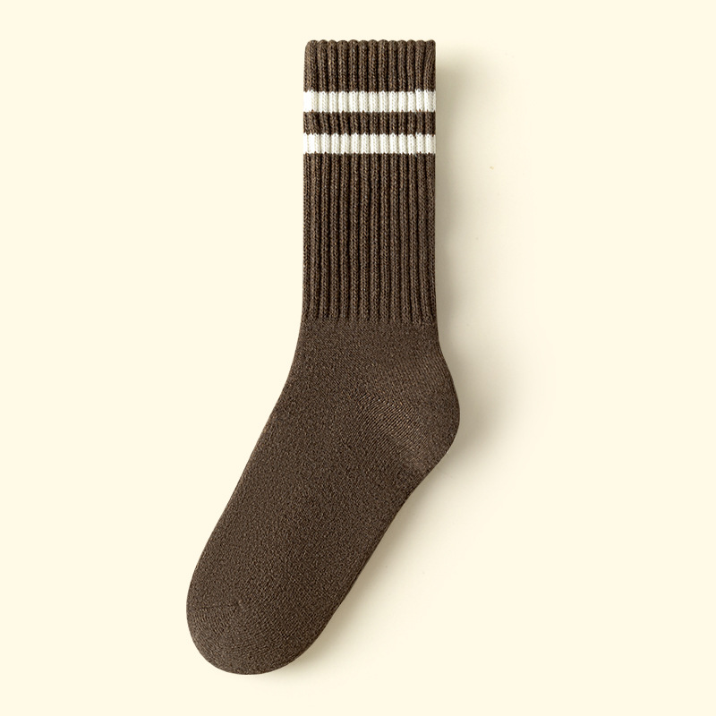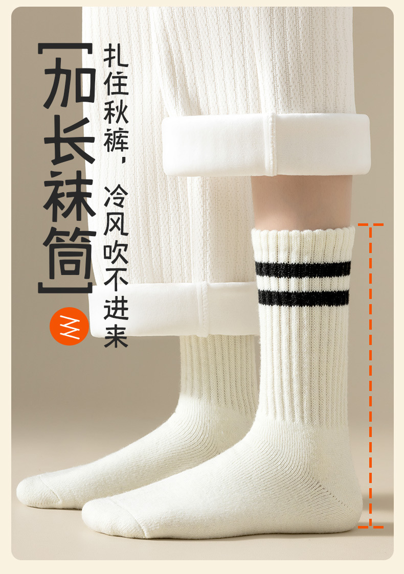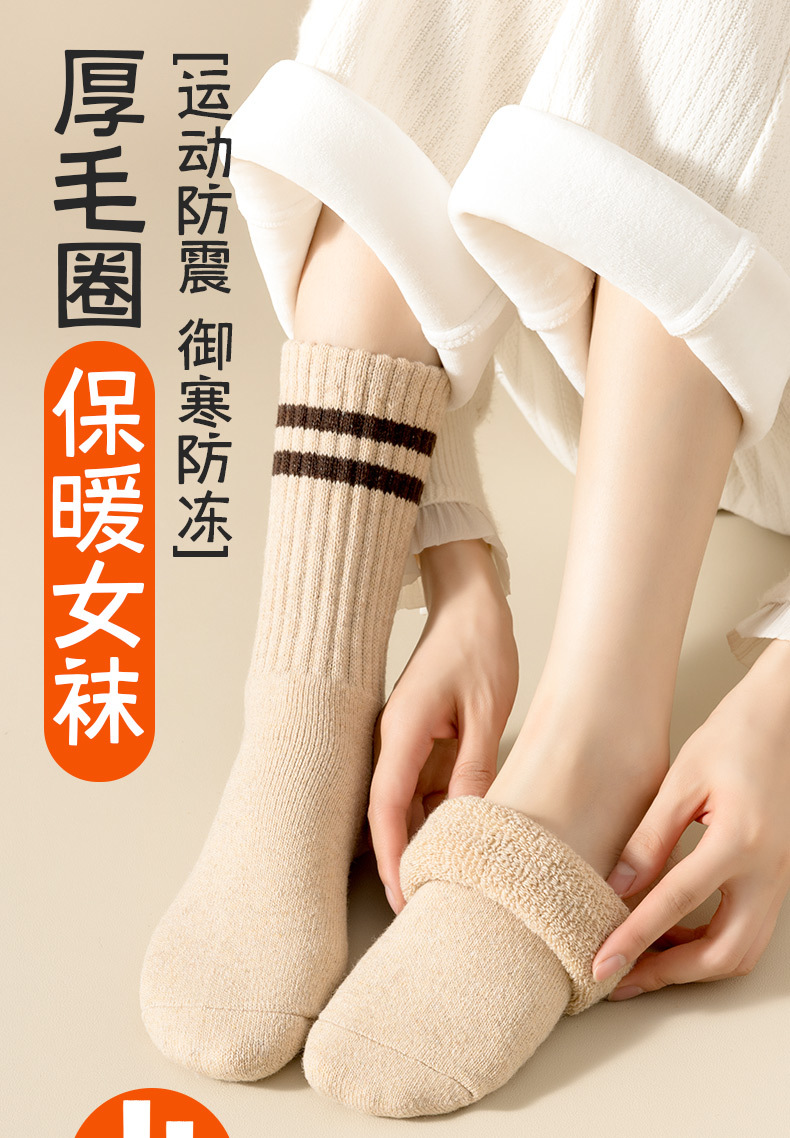 가을과 겨울의 24 년 동안 새로운 테리 땀 흡수성 두꺼운 평행 바 줄무늬 냉간 부동액 따뜻한 긴 튜브 여성용 양말을 선호했습니다.스토어 가기