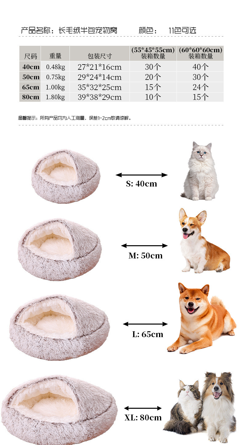 크로스보더 겨울용 2-in-1 초대형 반밀폐형 애완동물 집, 강아지 보온 고양이 집, 개집, 강아지 용품, 두꺼운 소재스토어 가기