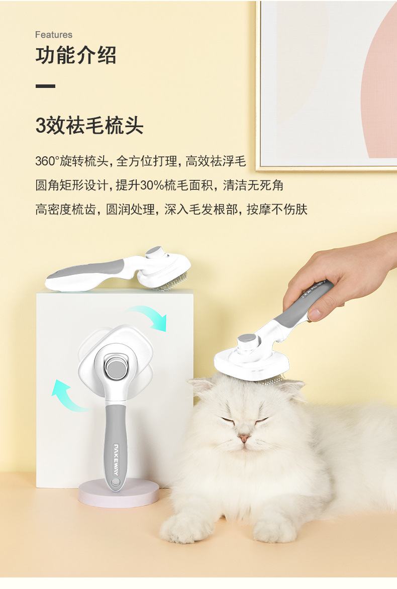 애완 동물 빗 개 용품 자동 녹는 빗 고양이 빗 오픈 매듭 부동 머리 빗 회전 자기 청소 바늘 빗