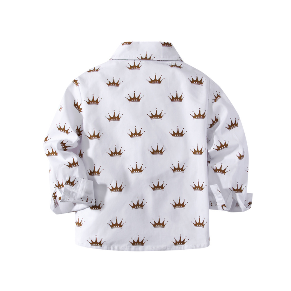 가을 새 소년 세트 왕관 프린트 긴 소매 바지 사진 생일 신사 원피스 대외 무역 아동복 도매