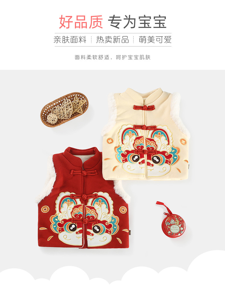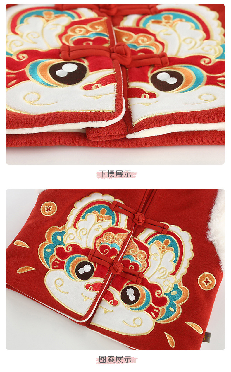 어린이 조끼 겨울 기모 아기 조끼 중국 스타일 라이온 댄스 조끼 어린이 겨울 신년 의류