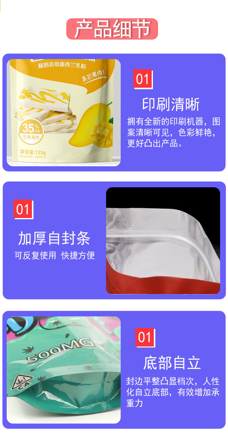 外贸欧美跨境槟榔直自立烟草袋异型防儿童锁拉链袋复合糖果烟草袋 水果燕麦片包装袋 镀铝自立袋 厂家定制 果蔬脆包装袋 食品蒸煮袋