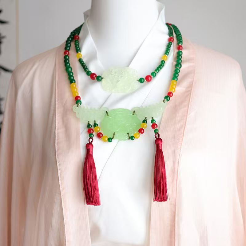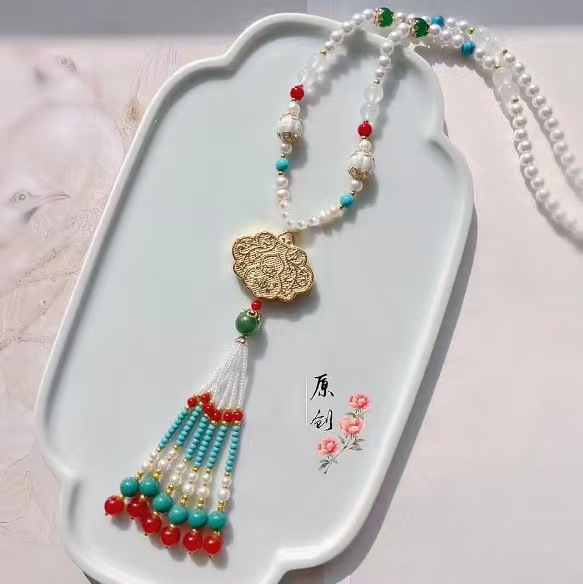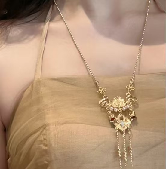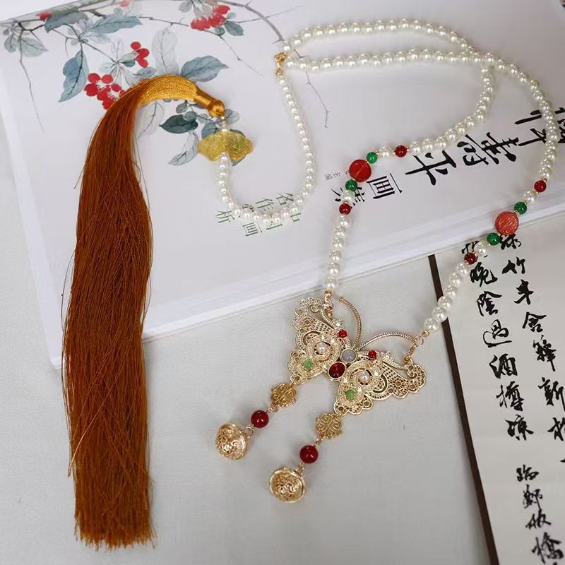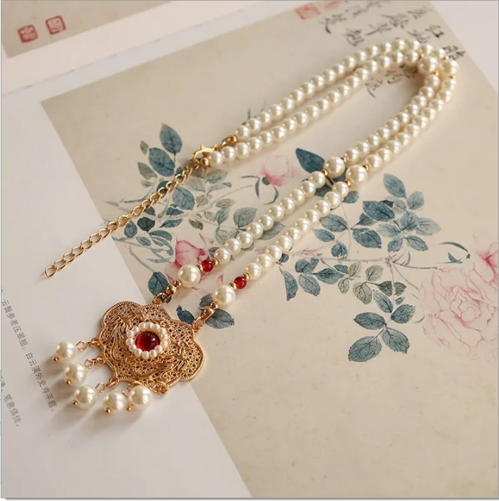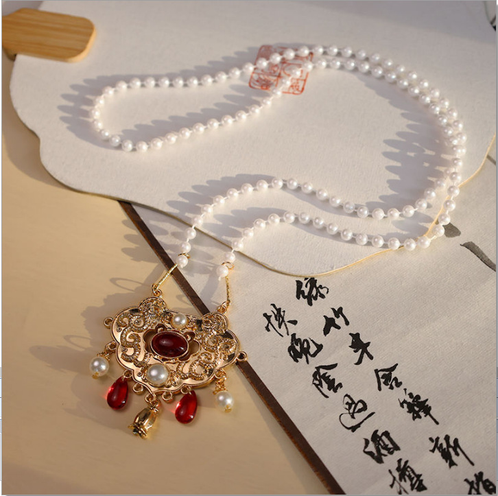 골동품 목걸이 국립 패션 중국 한후 긴 뒤로 구름 부드러운 화환 펜던트 명나라 만든 말 얼굴 스커트 청삼 목걸이스토어 가기