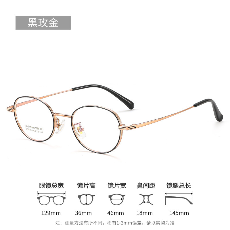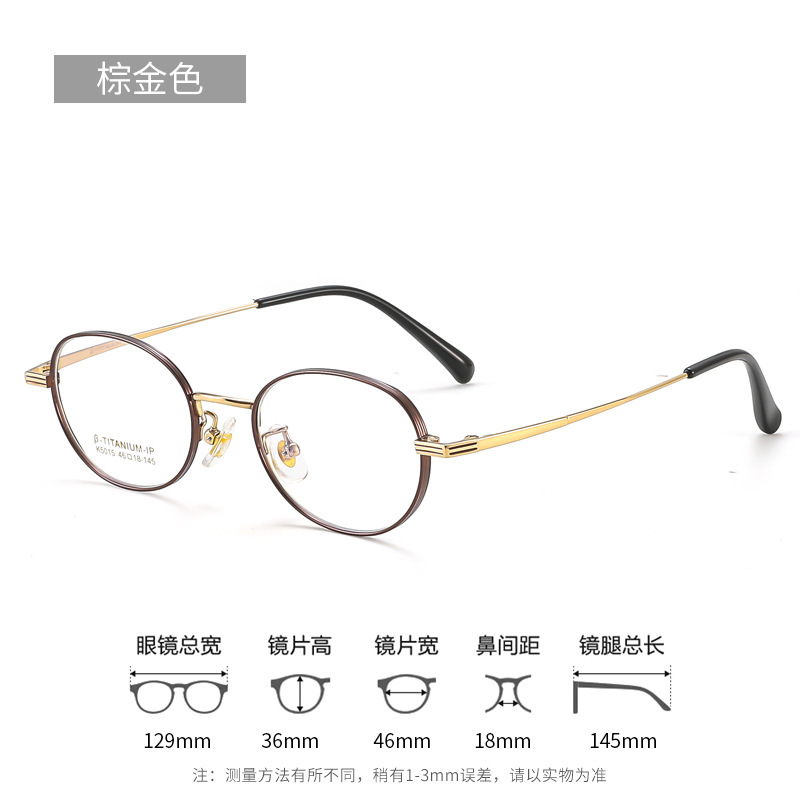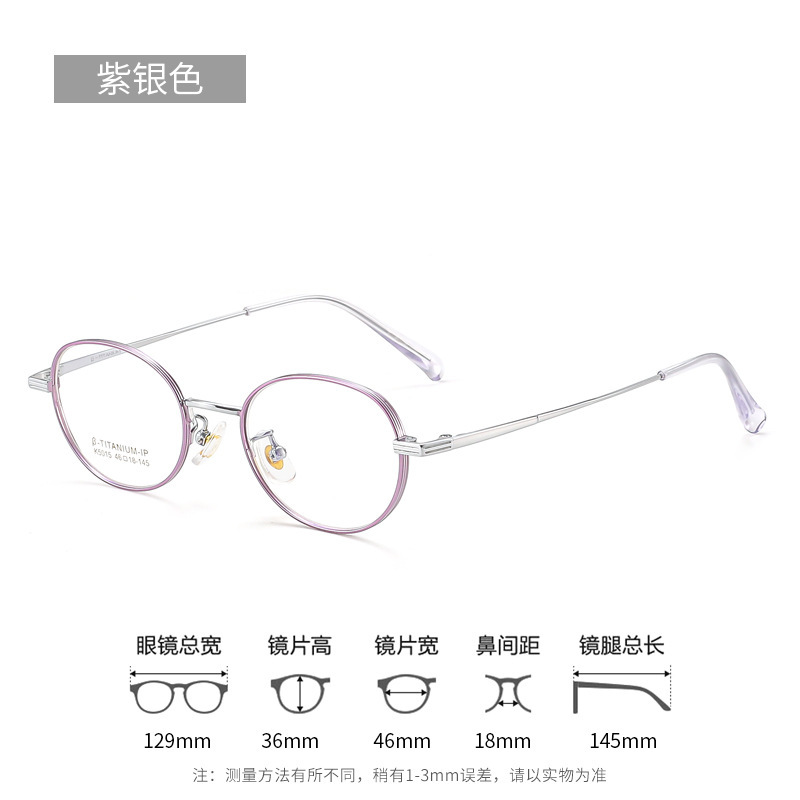 높은 숫자 작은 프레임 안경 순수 티타늄 근시 여성의 높은 감각 울트라 라이트 컬러 프리 5015 폭 프레임 힘을 장착 할 수 있습니다
