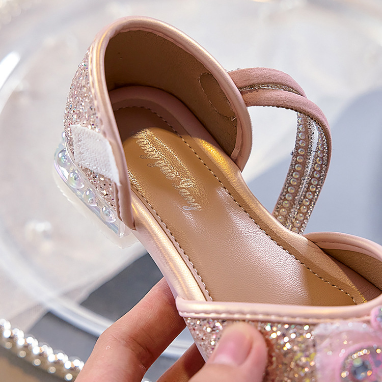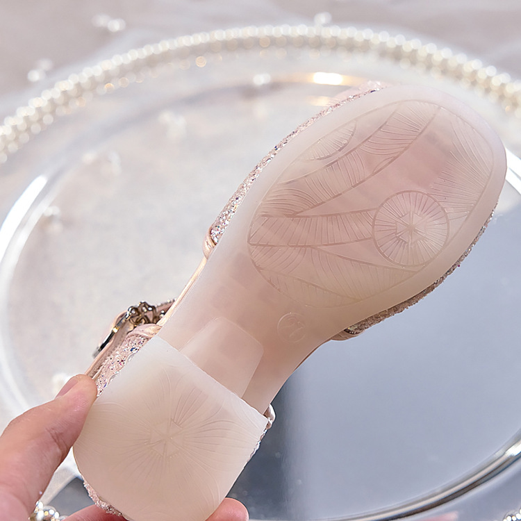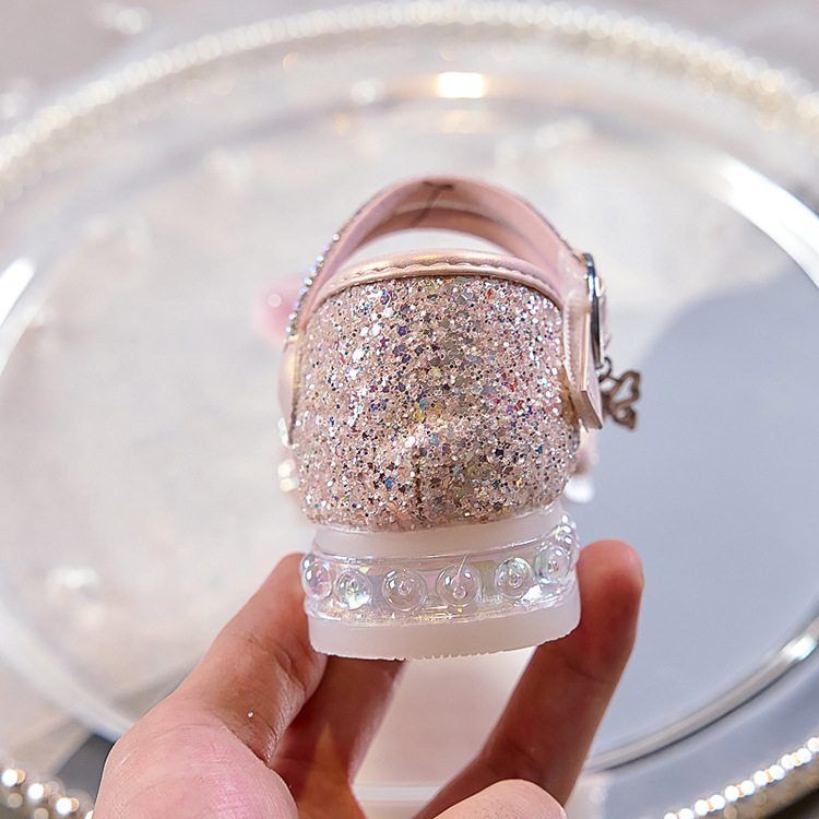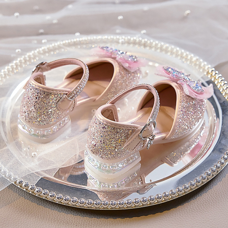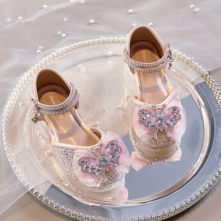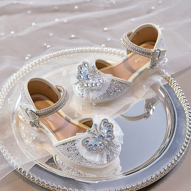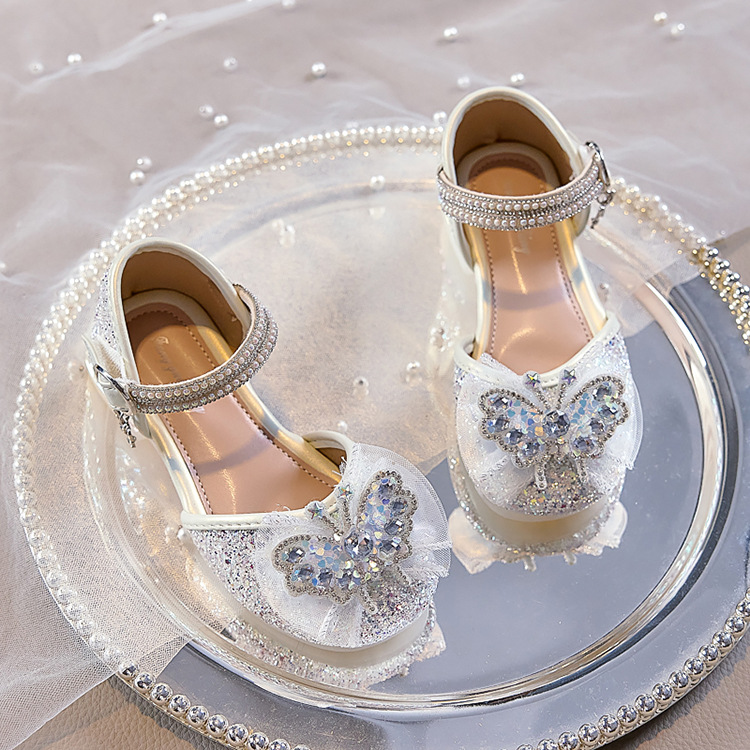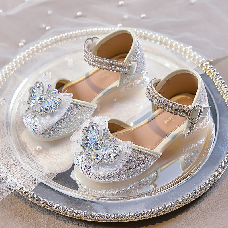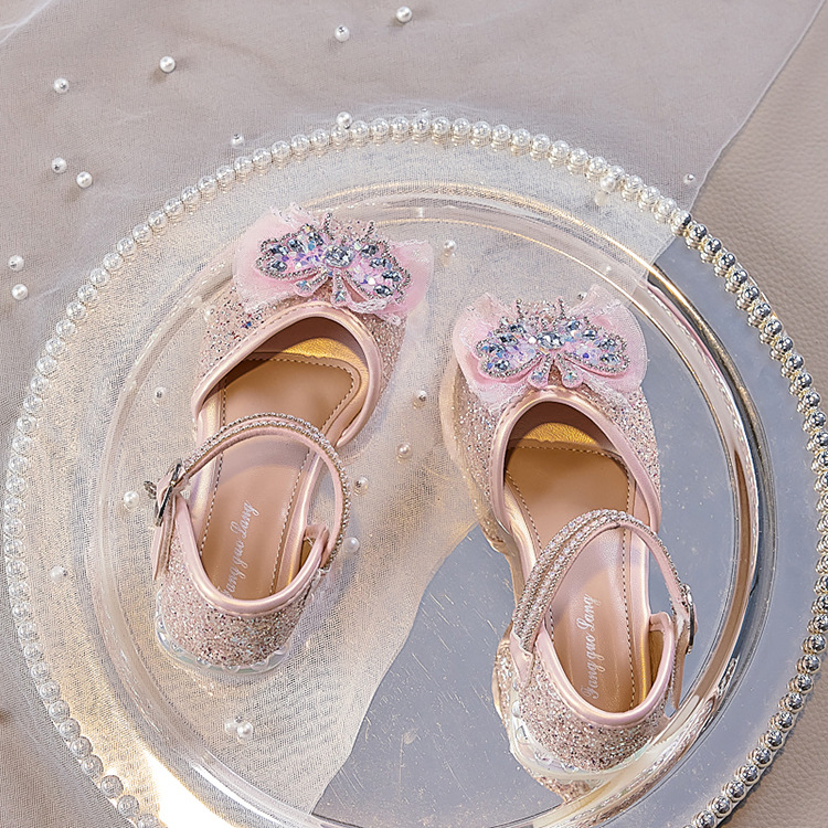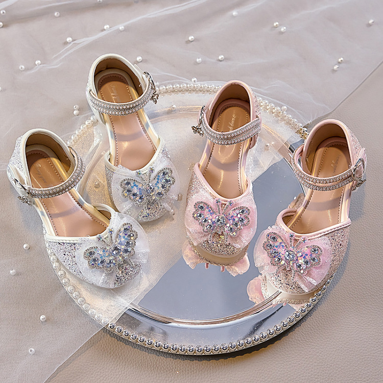 여아용 반짝이 나비 공주 신발 2026 가을 신상품 워터다이아몬드 가죽 신발 여아용 부드러운 밑창 가볍고 편안한 싱글 슈즈
