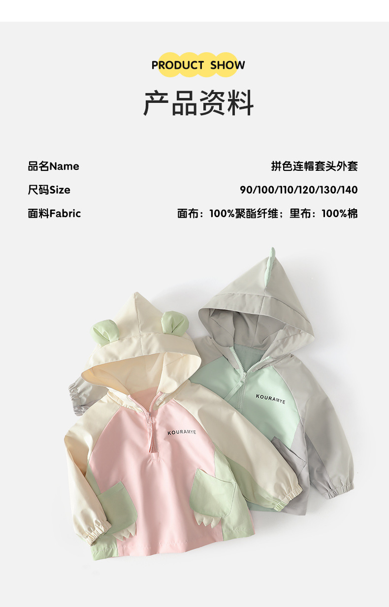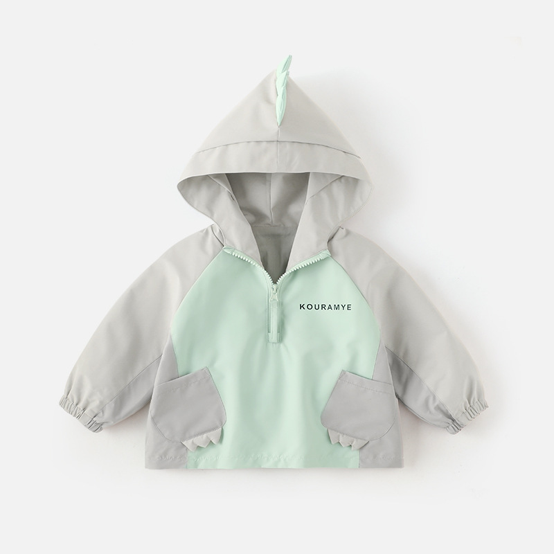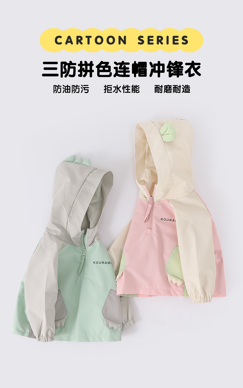 가을 어린이 후드 코트 귀여운 공룡 색상 분할 3 방지 윈드 브레이커 따뜻한 재킷 야외 정상 소년 소녀스토어 가기