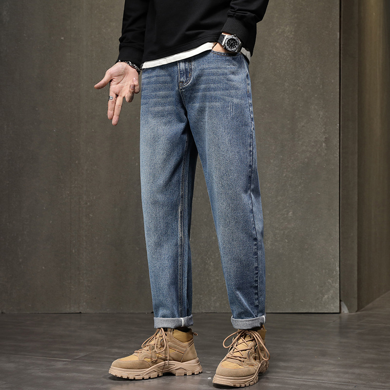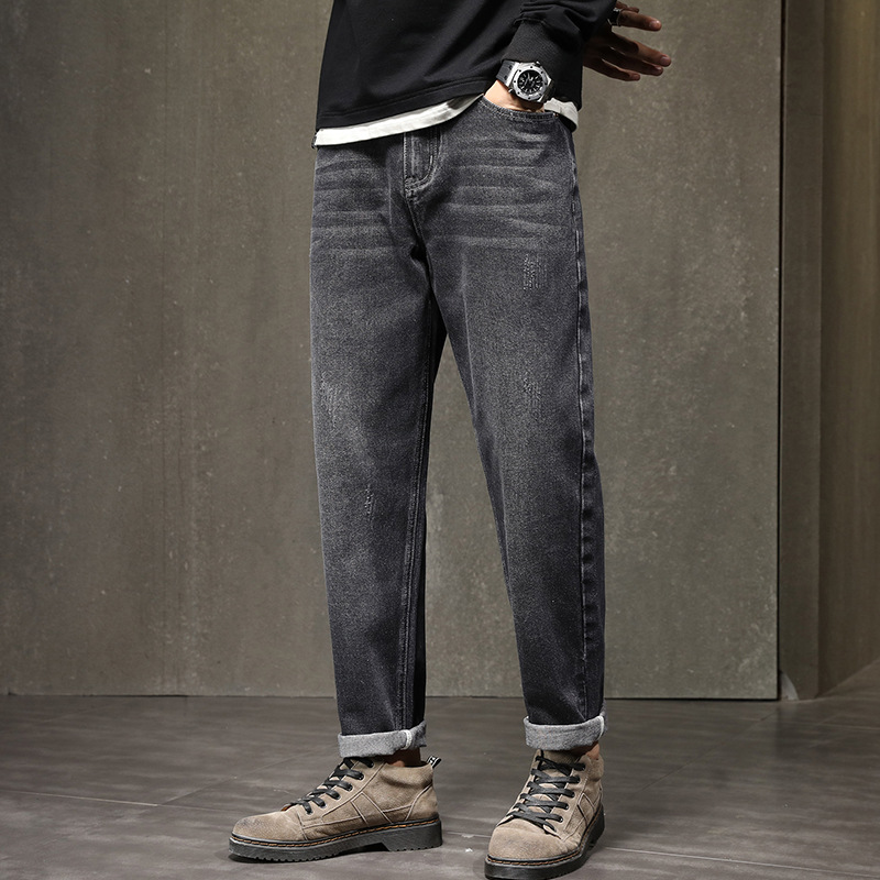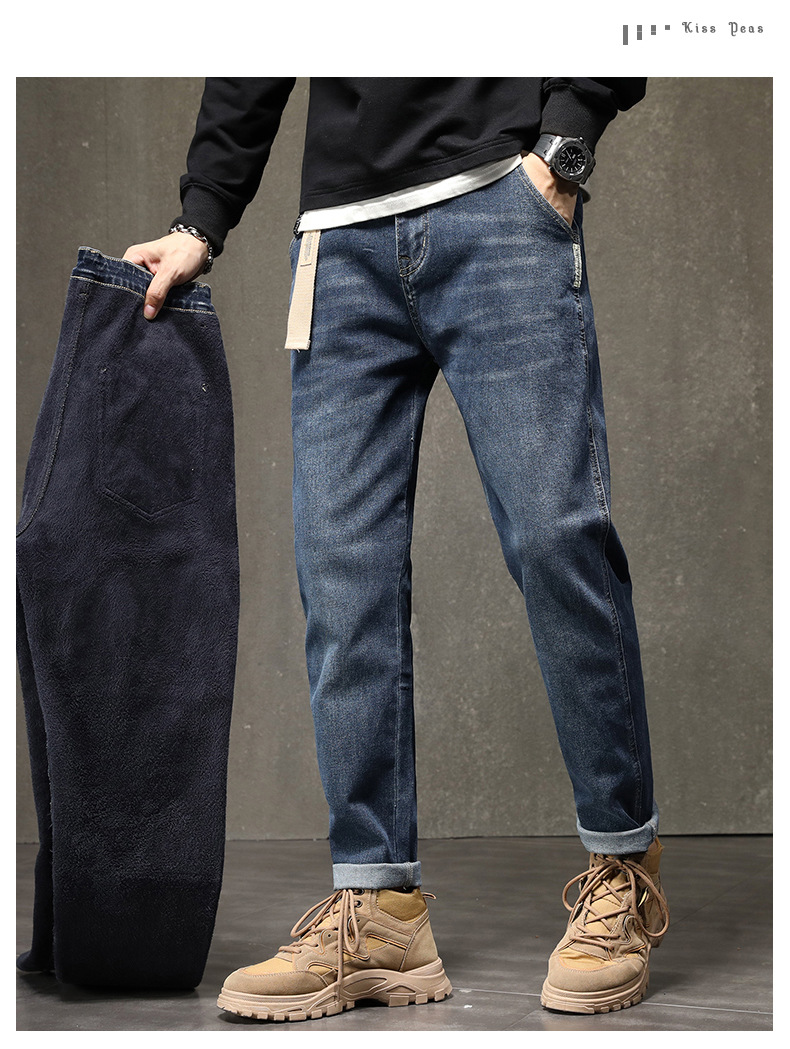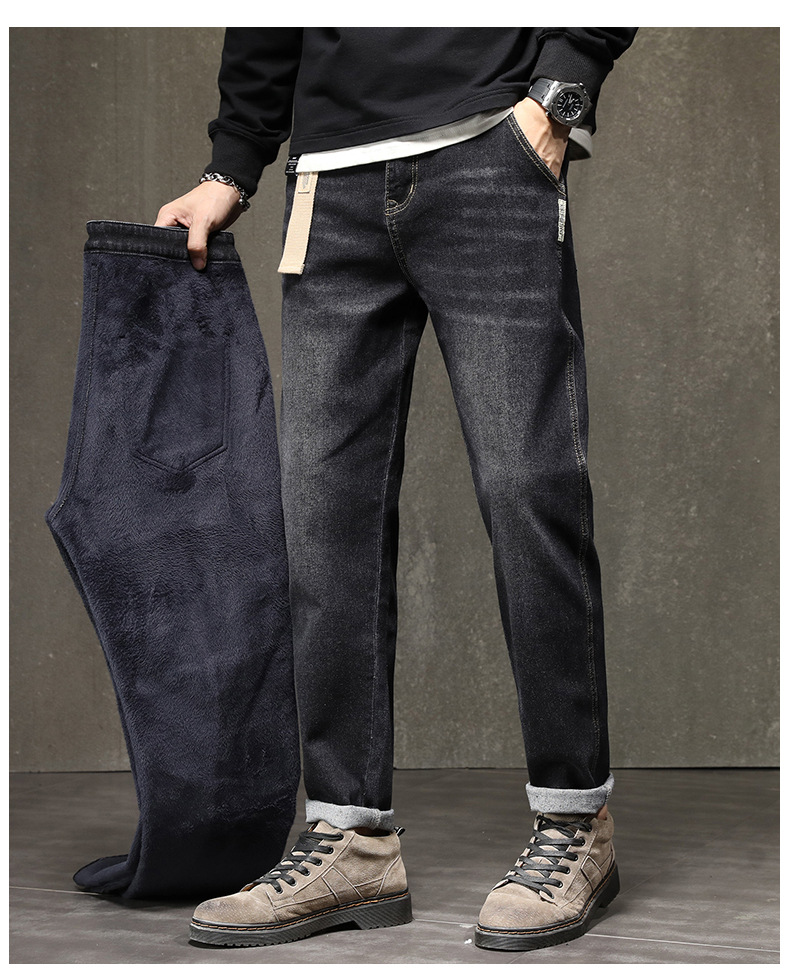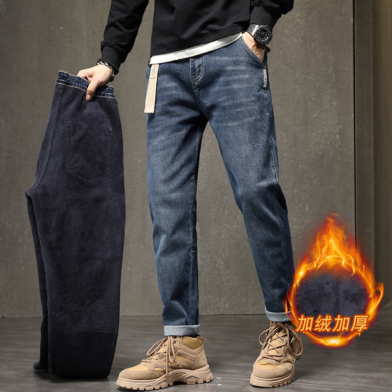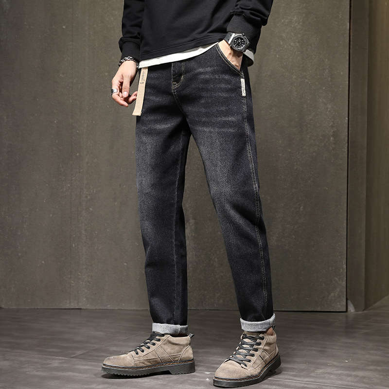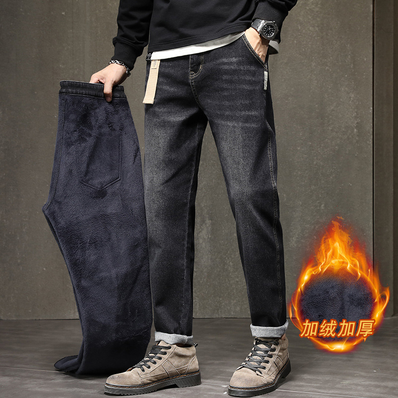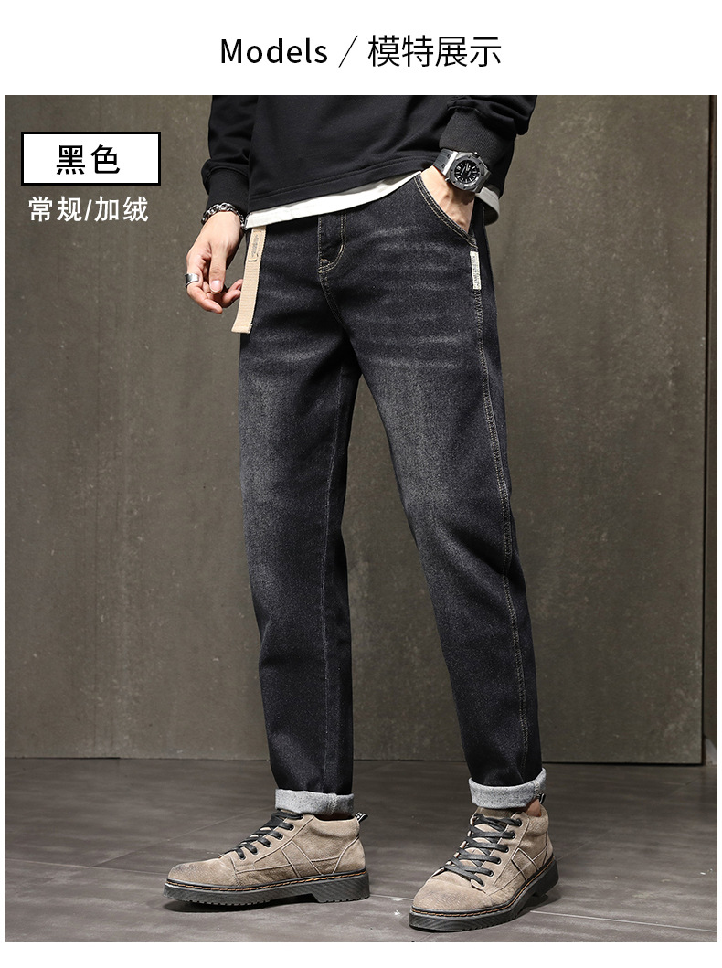 기모 청바지 남자 2023 가을과 겨울 새로운 느슨한 스트레치 올 매치 하렘 바지 유행 브랜드 캐주얼 바지스토어 가기