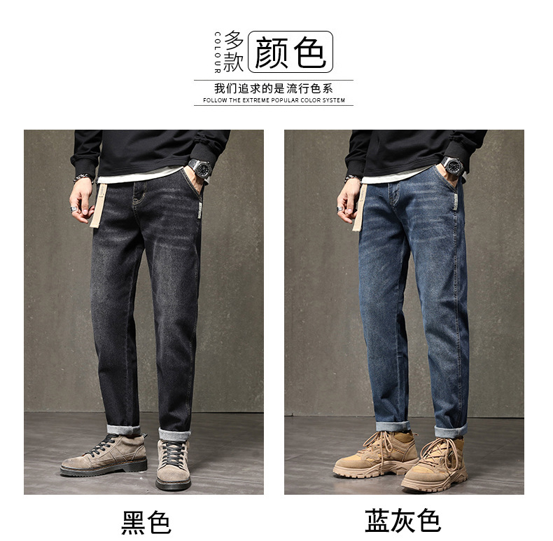 기모 청바지 남자 2023 가을과 겨울 새로운 느슨한 스트레치 올 매치 하렘 바지 유행 브랜드 캐주얼 바지