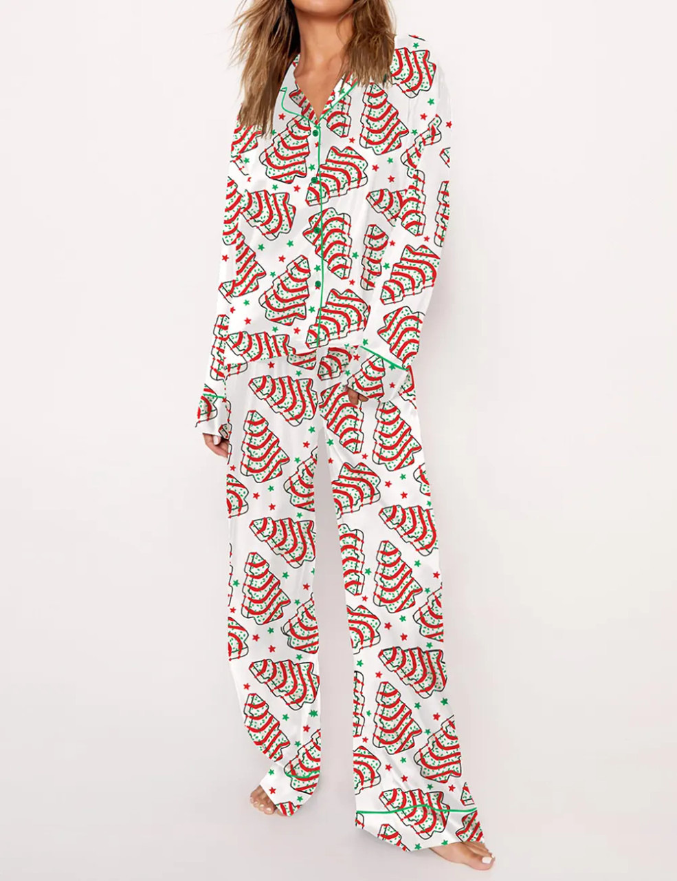 2024 크리스마스 트리 프린트 세트 여성 및 아동용 잠옷 대형 사이즈 우아한 POD 맞춤 제작스토어 가기