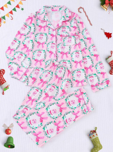 2024 크리스마스 트리 프린트 세트 여성 및 아동용 잠옷 대형 사이즈 우아한 POD 맞춤 제작