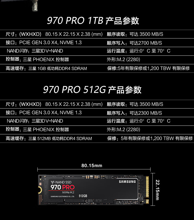 • 970 PRO PCIe3.0 독립 캐시 MLC 입자-500G~512G