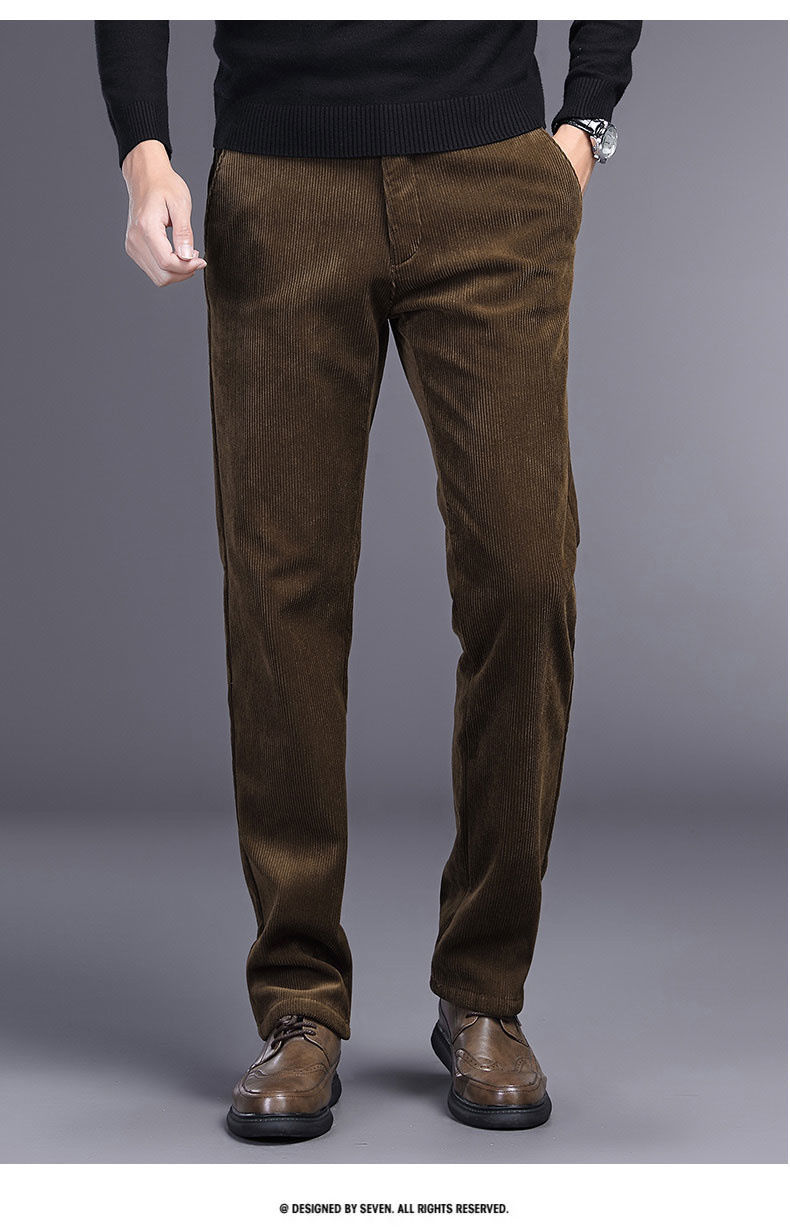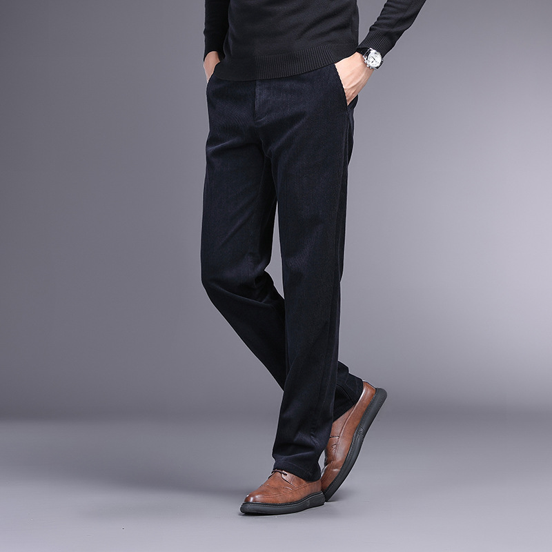 하이 퀄리티 코듀로이 남성용 캐주얼 바지 스트레이트 루즈 롱 바지 남성 중년 및 노인 아빠의 겨울 두께스토어 가기