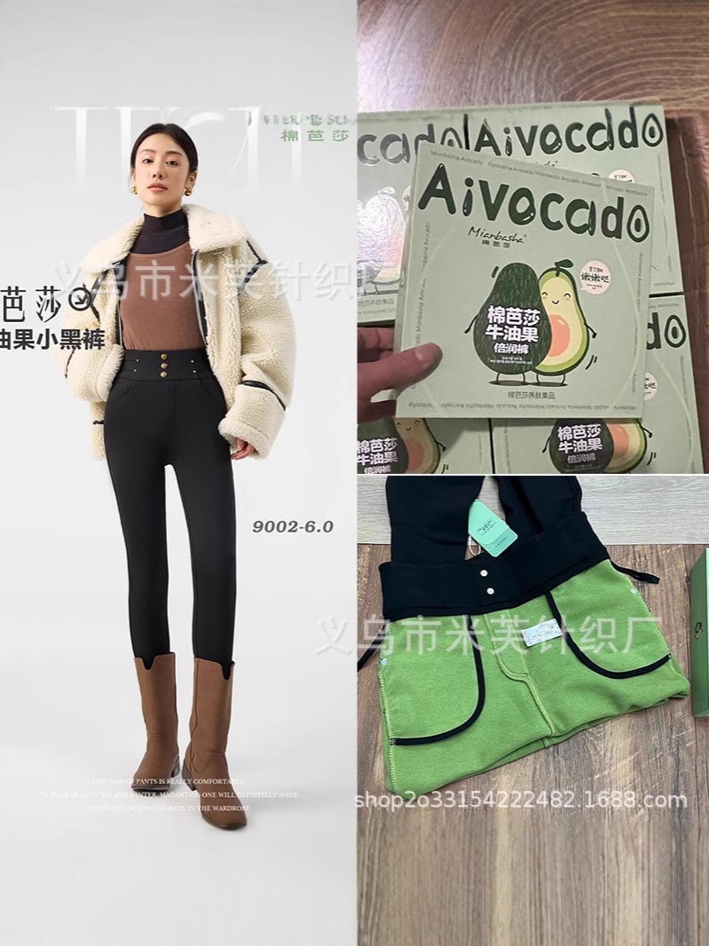 공장 도매 면화 바자회 아보카도 9002-6.0 작은 검은 바지 여성 착용 기모 두꺼운 2024 가을과 겨울 새로운스토어 가기