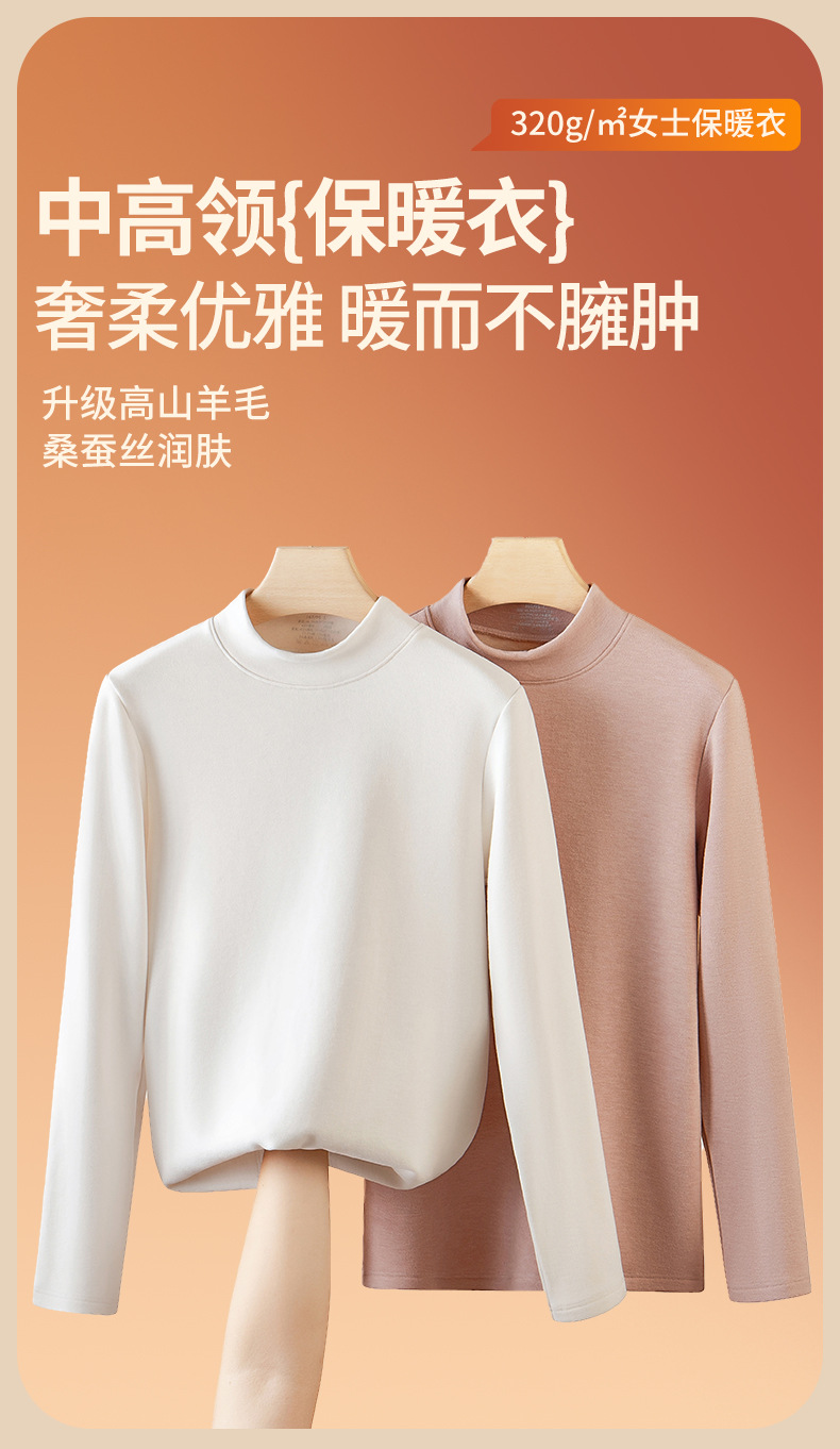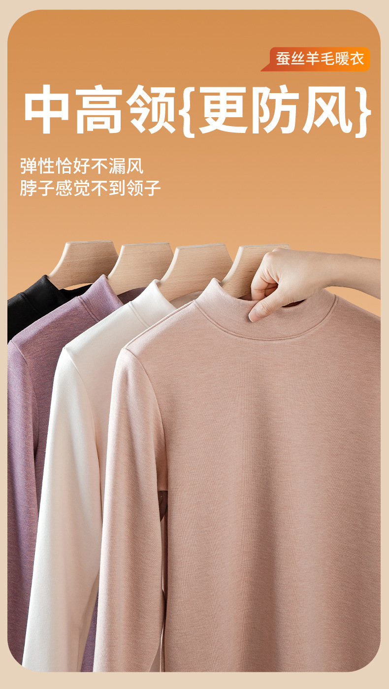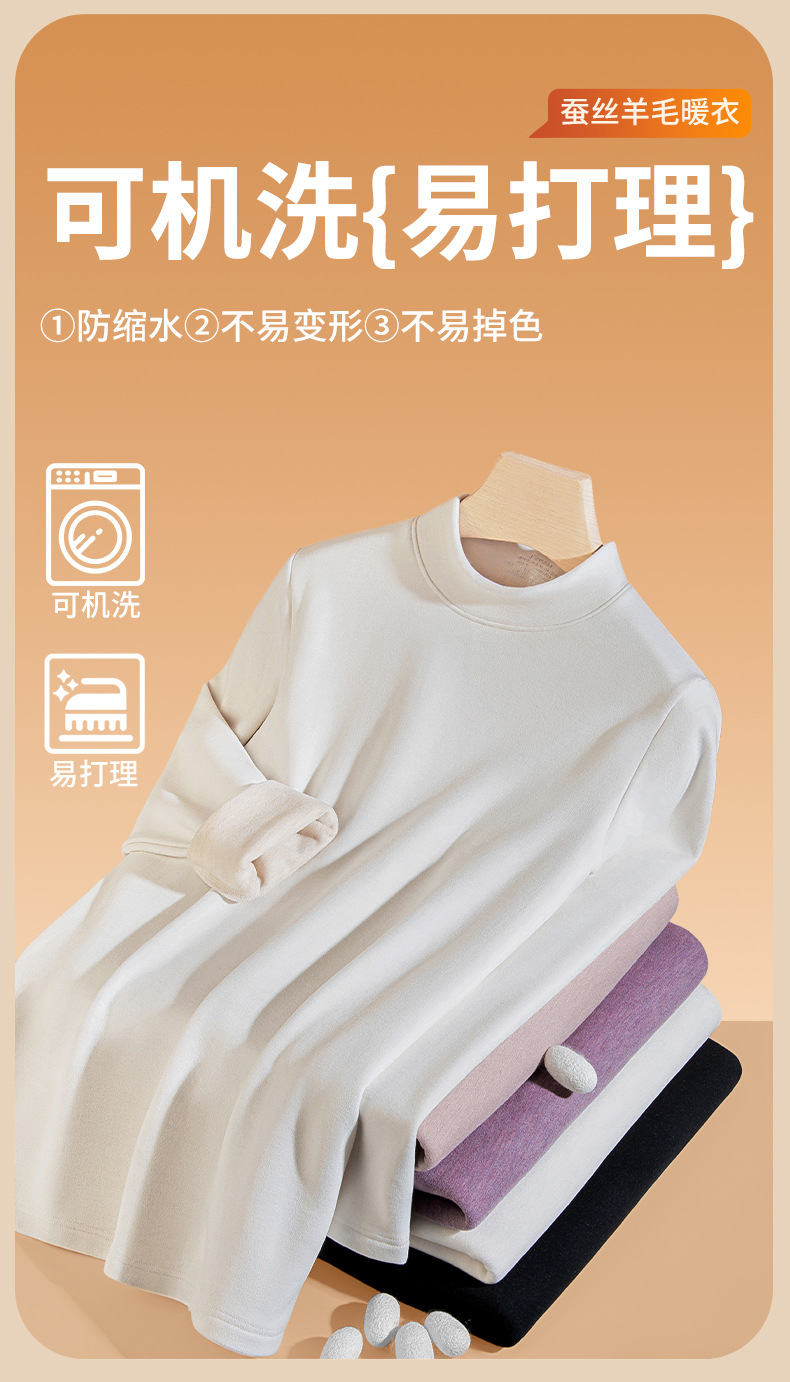 [실크 포함] 새로운 국경 가을과 겨울 여성 양모 세미 하이 칼라베이스 셔츠는 두꺼운 기모 외출 할 수 있습니다
