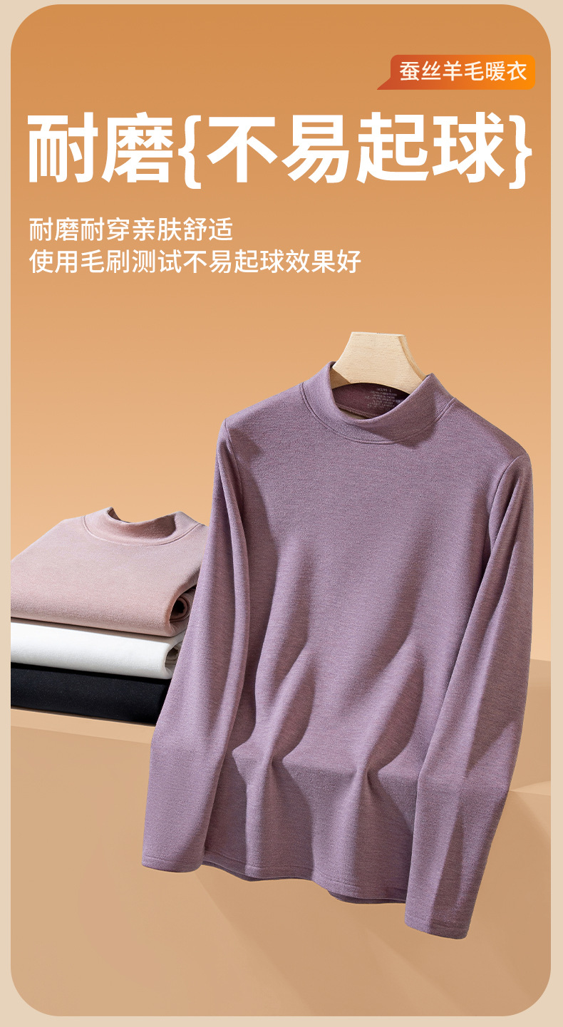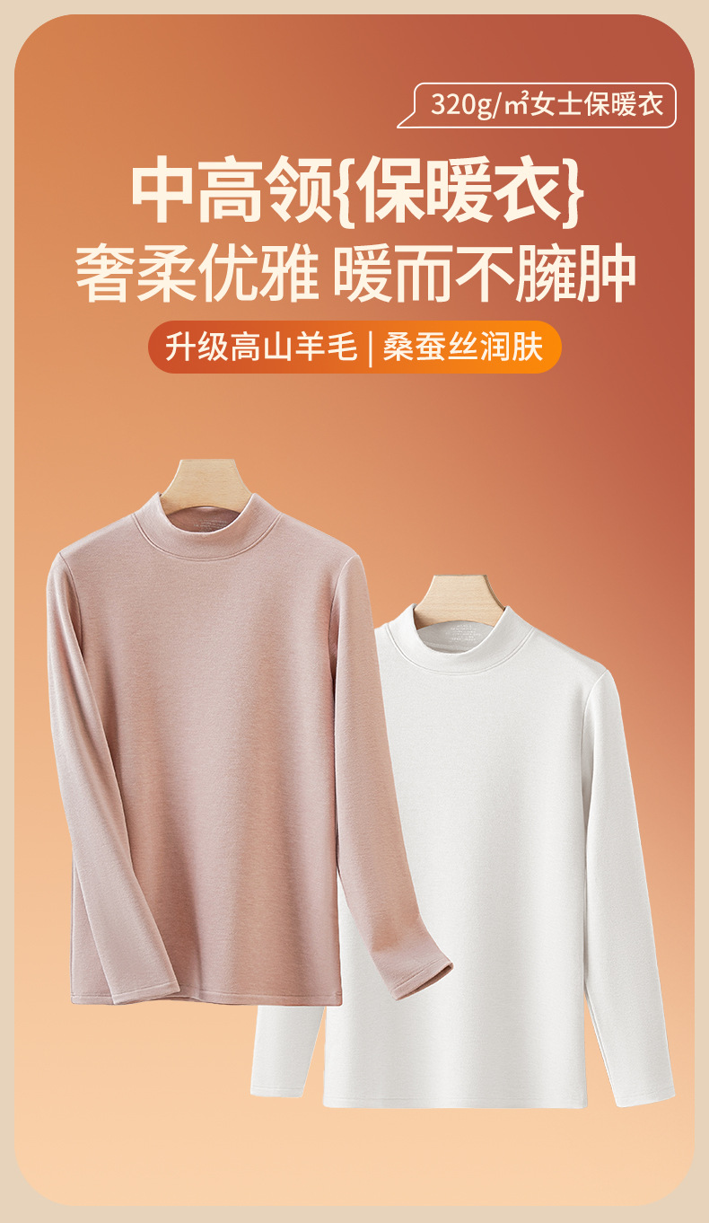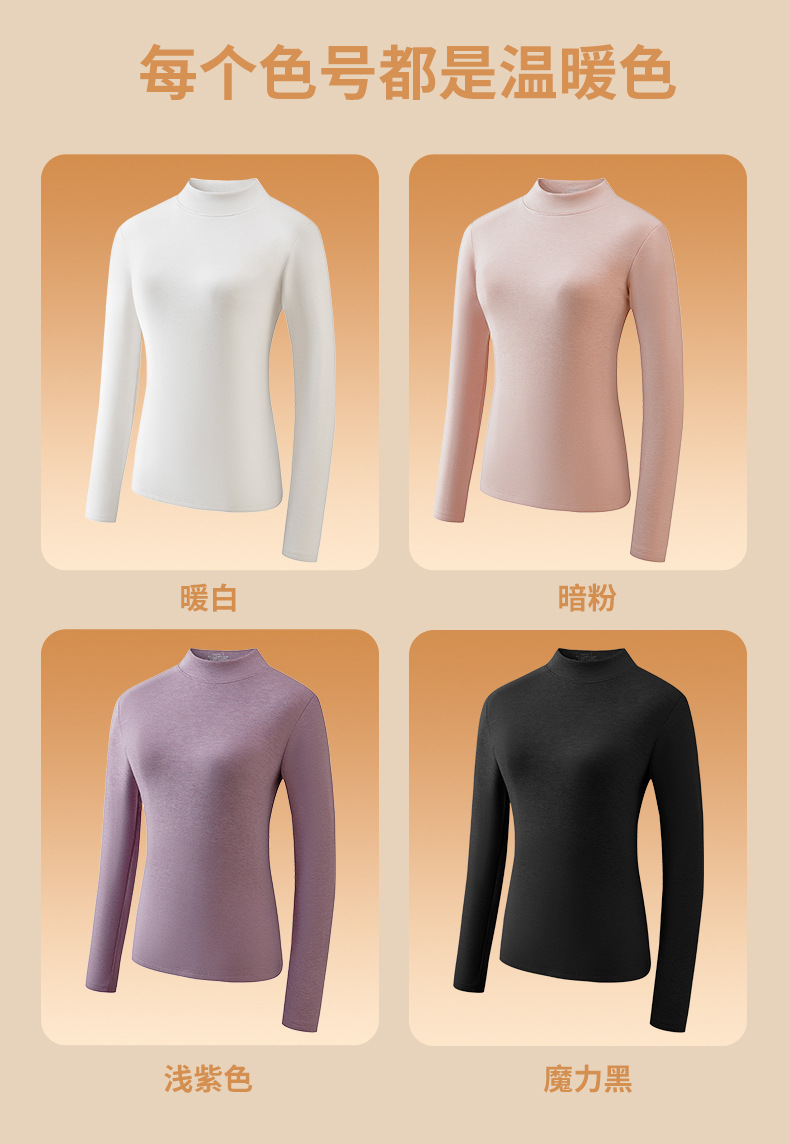 [실크 포함] 새로운 국경 가을과 겨울 여성 양모 세미 하이 칼라베이스 셔츠는 두꺼운 기모 외출 할 수 있습니다