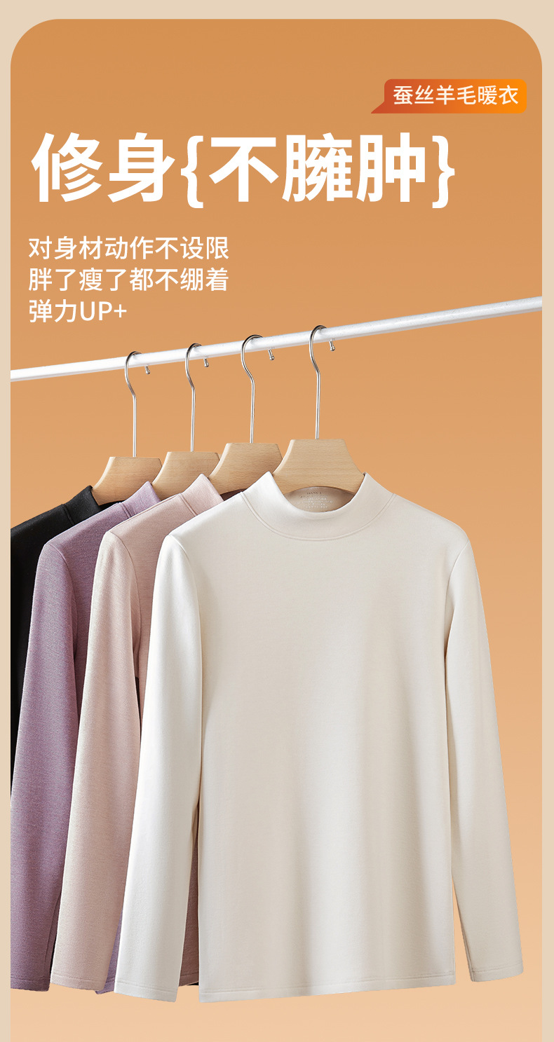 [실크 포함] 새로운 국경 가을과 겨울 여성 양모 세미 하이 칼라베이스 셔츠는 두꺼운 기모 외출 할 수 있습니다스토어 가기