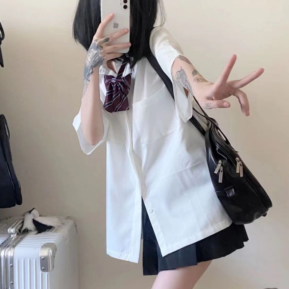 흰색 원피스 셔츠 반팔 클래스 옷 여학생 한국 느슨한 여름 유니폼 코트 일본 셔츠 톱 드림 도메인