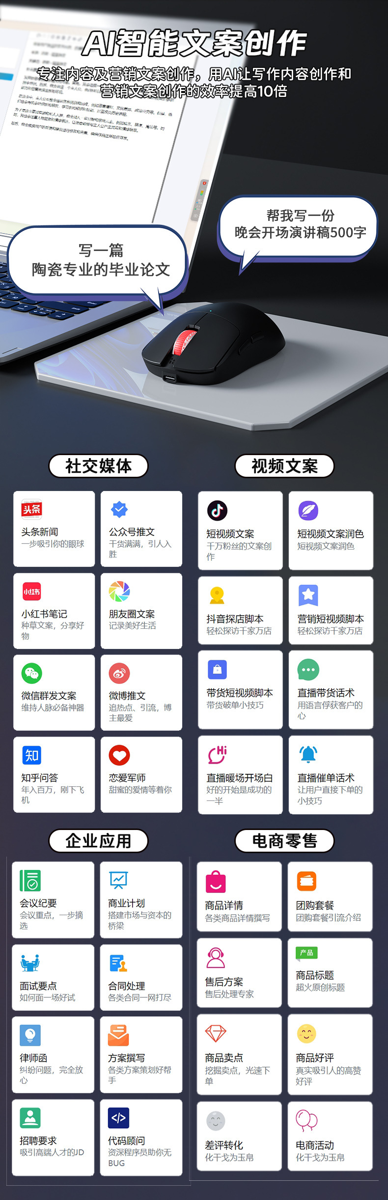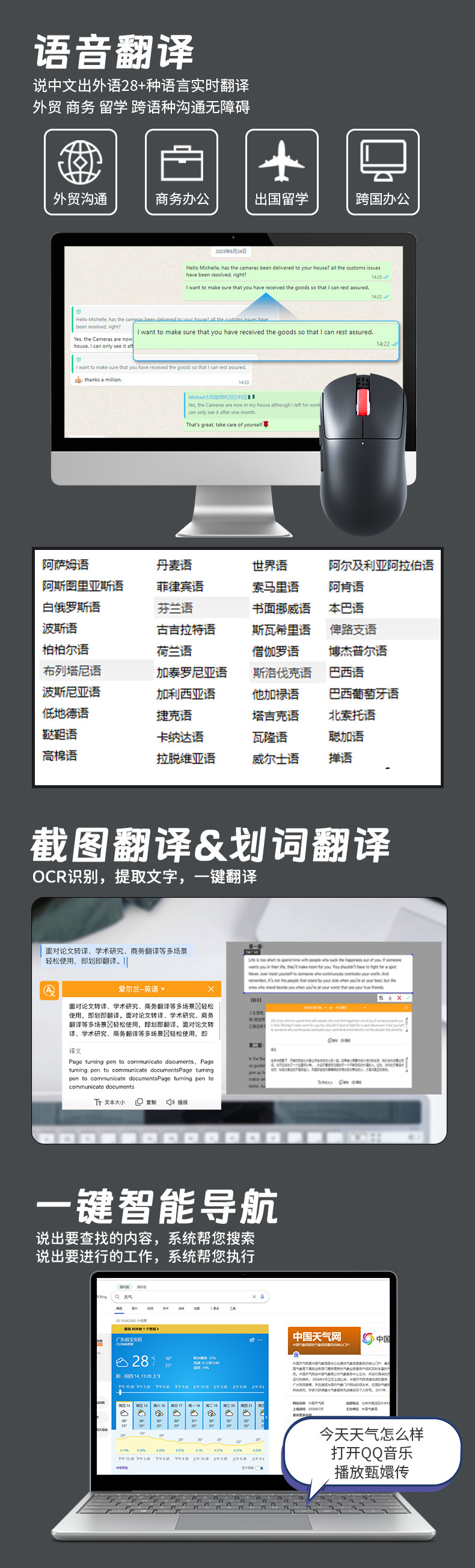 商务办公、会议记录、跨境商务、外语学习、网课教育、跨境电商、高效办公、智能家居控制、企业采购、商务礼品