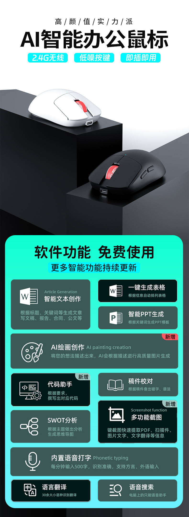 AI鼠标、智能鼠标、语音鼠标、翻译鼠标、办公鼠标、智能语音鼠标、AI智能鼠标、语音输入鼠标、无线鼠标、鼠标、电脑鼠标、游戏鼠标、有线鼠标、静音鼠标、蓝牙鼠标、2.4G无线鼠标、静音无线鼠标、轻量化无线鼠标、智能手势鼠标、语音输入鼠标、会议记录AI鼠标、跨语种翻译鼠标、可编程快捷键智能鼠标、便携无线鼠标、长效续航无线鼠标、适合笔记本的无线鼠标、适合大手型的游戏鼠标、CAD制图专用鼠标、左右手办公鼠标