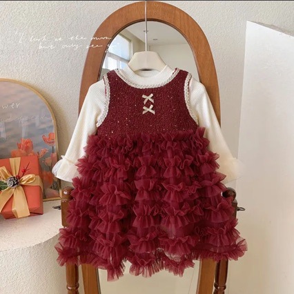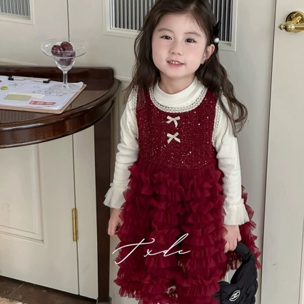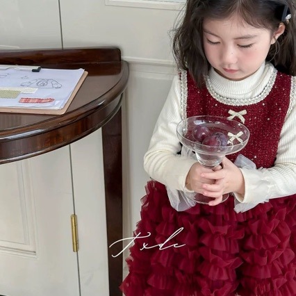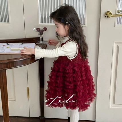 2024 년 새해 기모 민소매 공주 원피스 겨울 소녀 튼튼한 푹신한 조끼 거즈 스커트