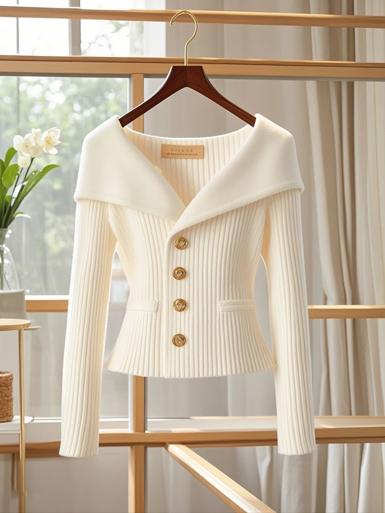 샤넬 스타일 화이트 스웨터 코트 여성 하이 엔드 디자인 센스 틈새 우아한 사교계의 위장한 니트 탑 가을 뉴스토어 가기