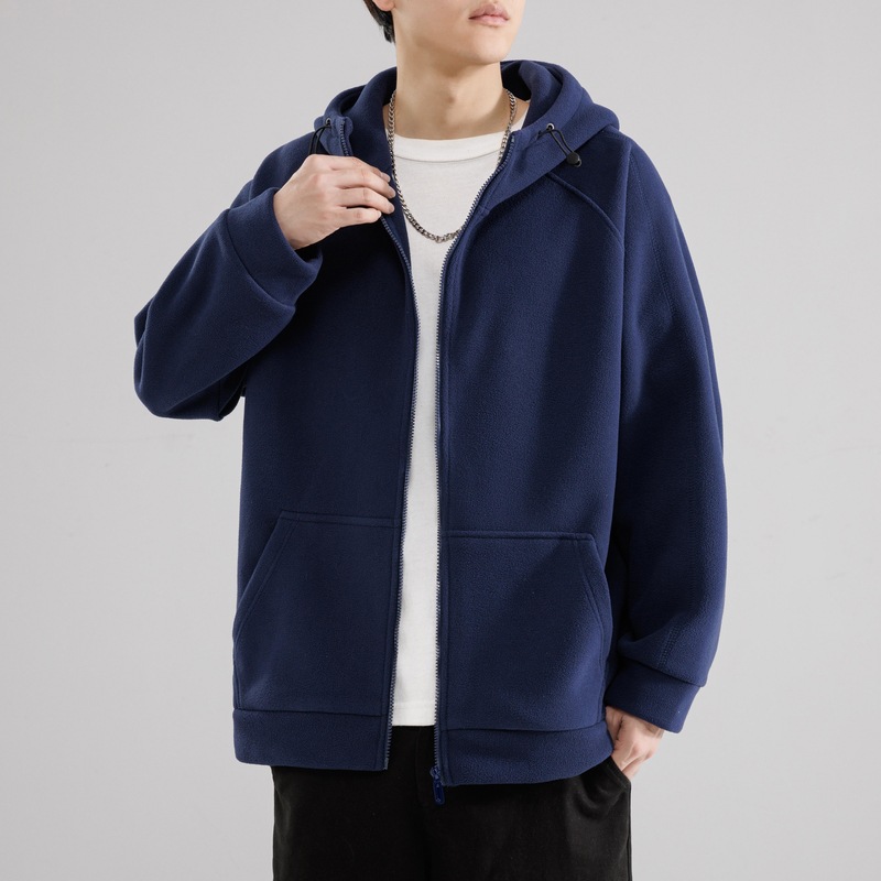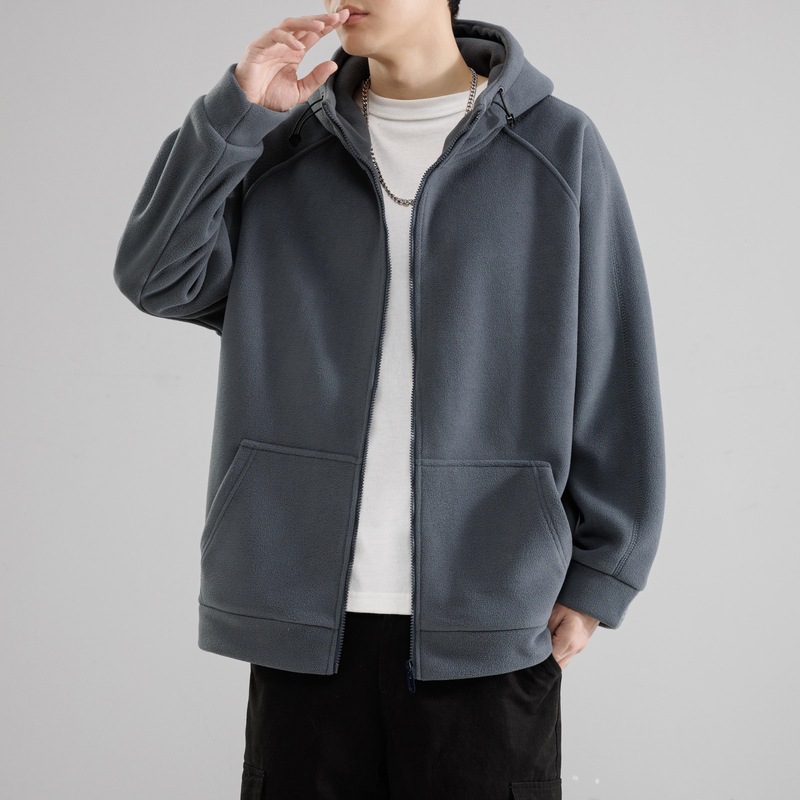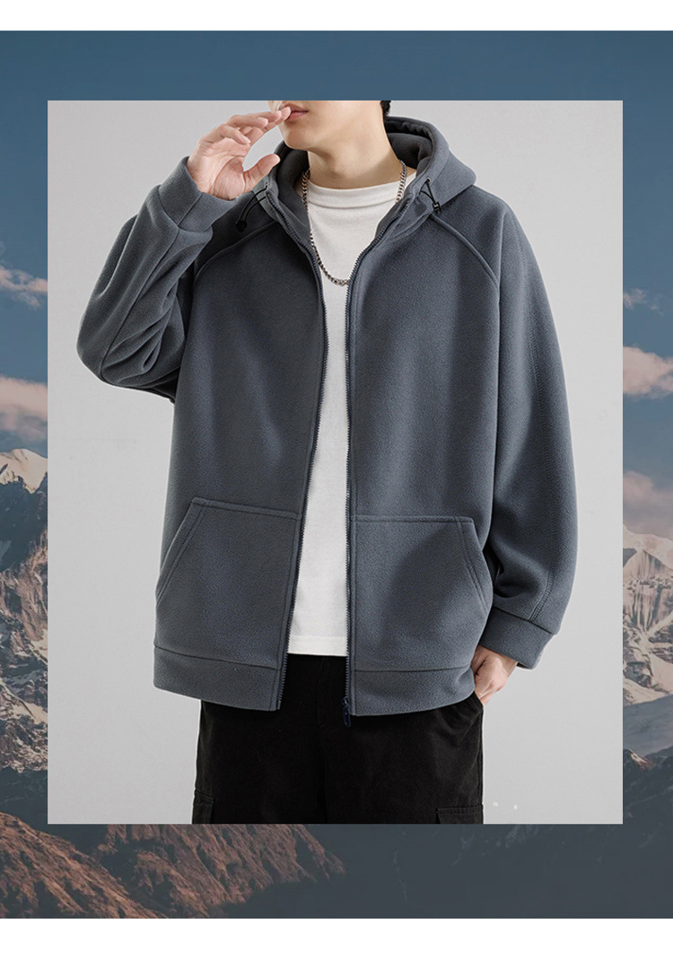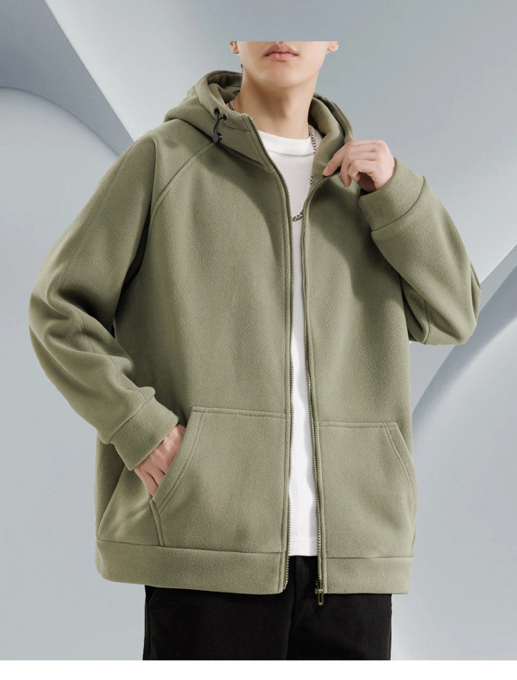 양털 카디건 스웨터 남자의 봄 가을과 겨울 단색 지퍼 후드 두꺼운 따뜻한 탑 재킷 남자 재킷