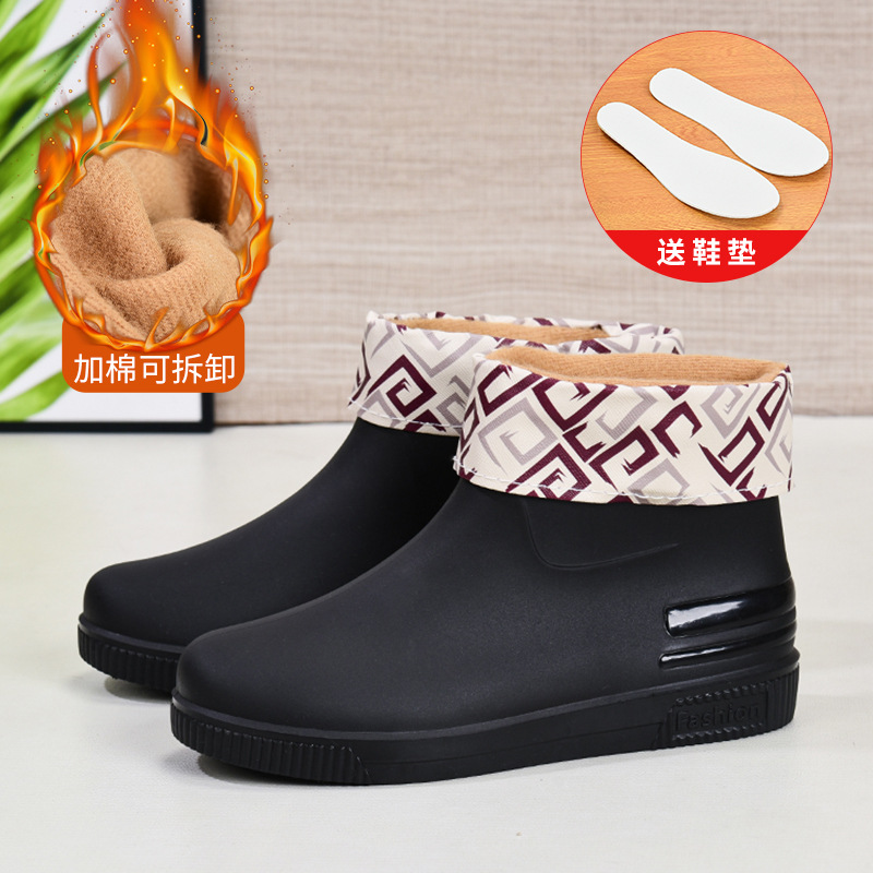 여성용 워터 슈즈 패션 짧은 튜브 레인 부츠 새로운 낮은 튜브 워터 부츠 로우 탑 레인 부츠 방수 접착제 신발 커버 신발 크로스 보더 핫 세일스토어 가기