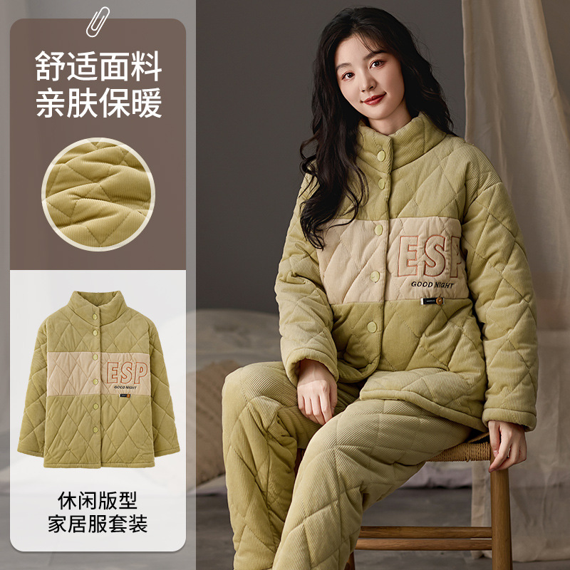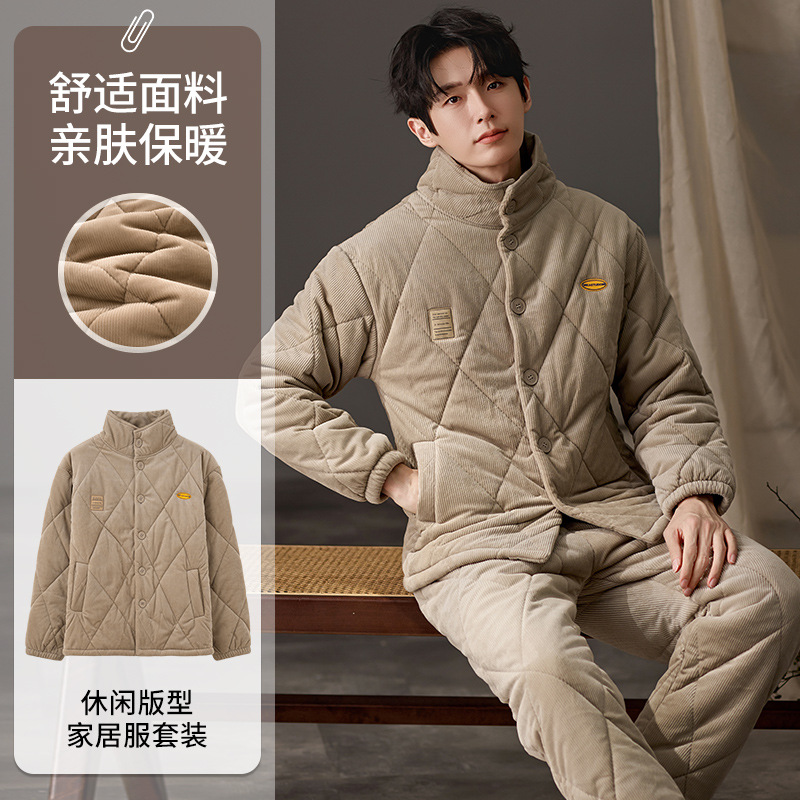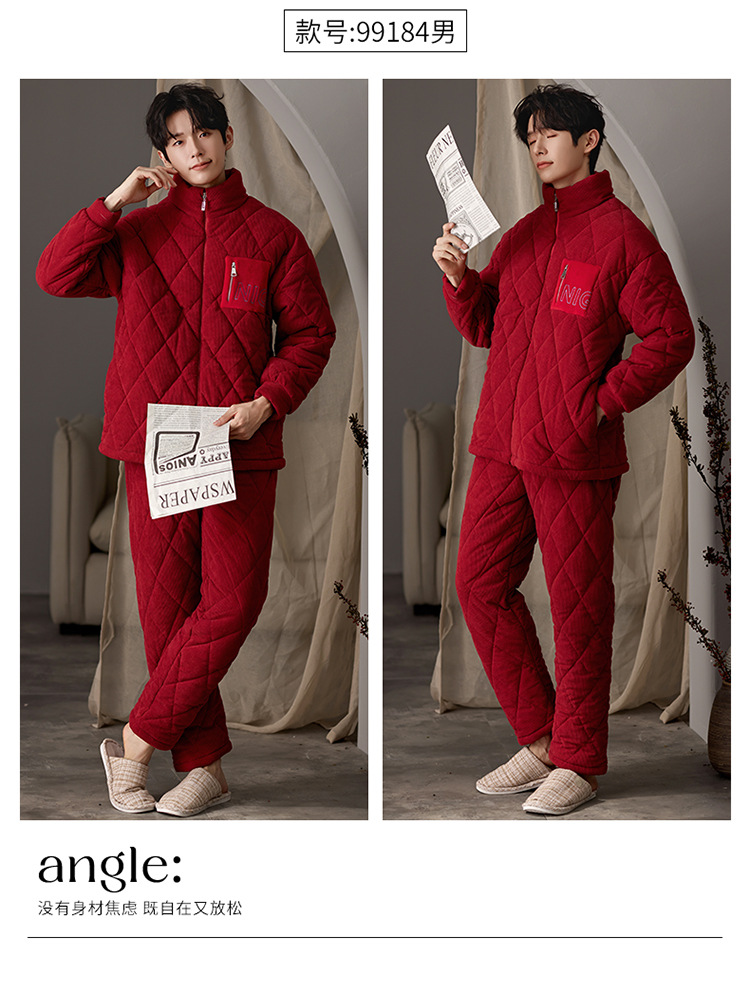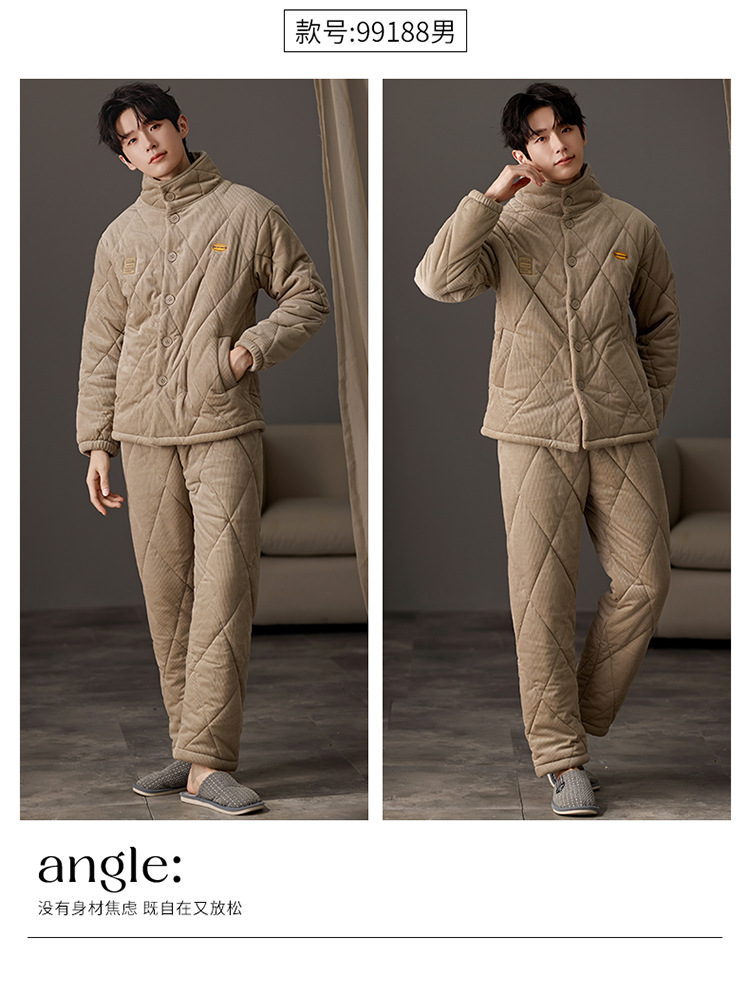 커플 잠옷 겨울 여성의 두꺼운 기모 밀크 벨벳 퀼트 따뜻한 3 층 코랄 벨벳 남성용 칼라 홈 옷