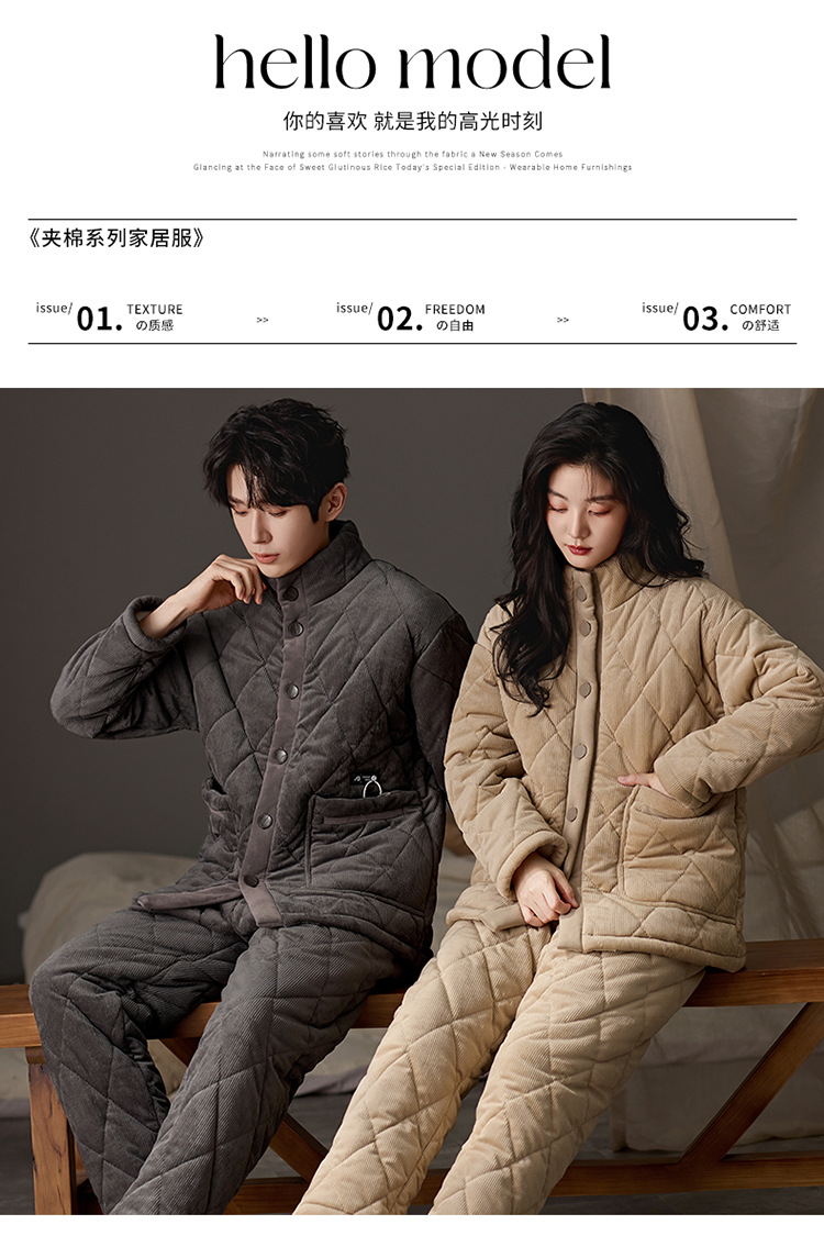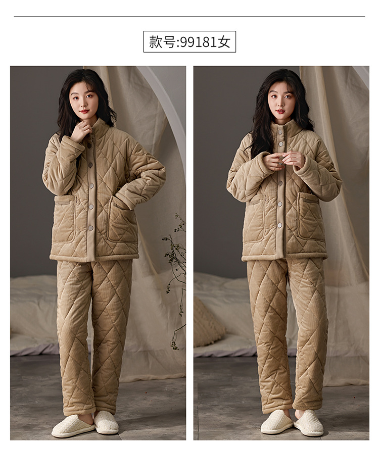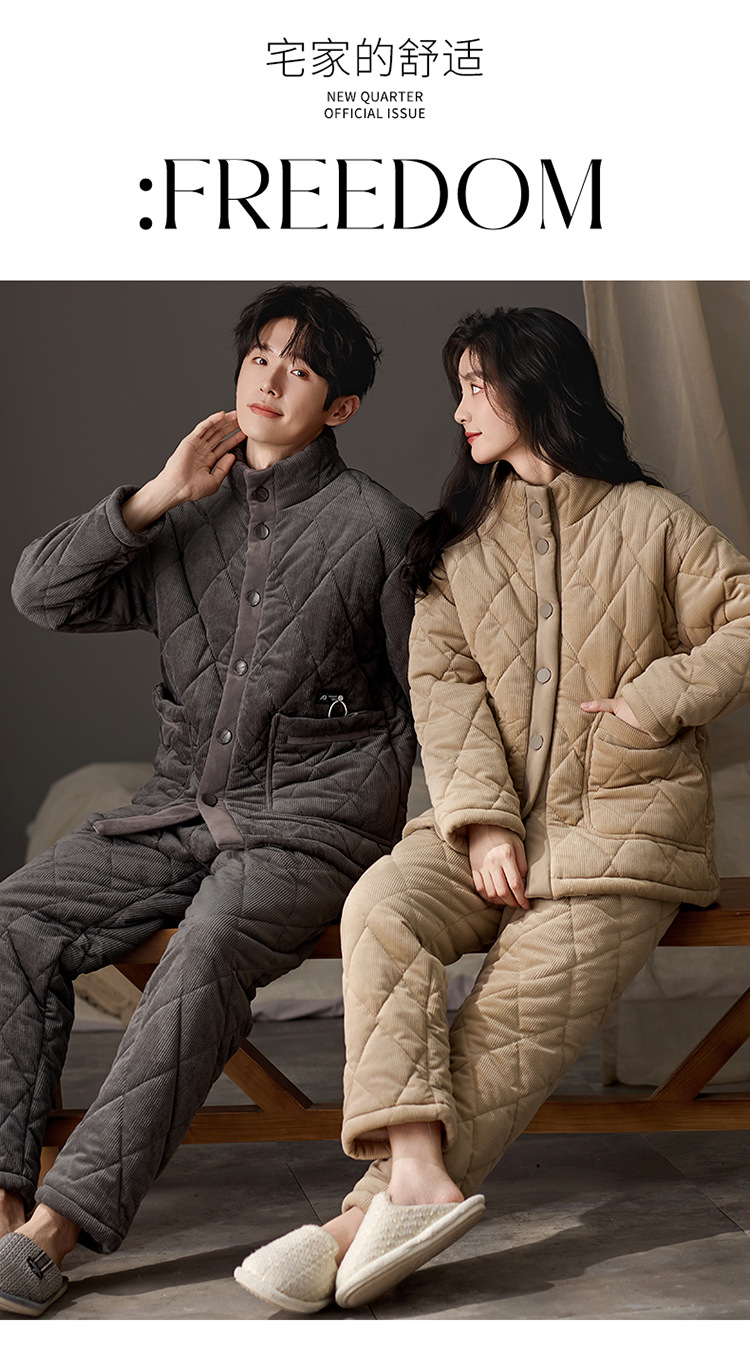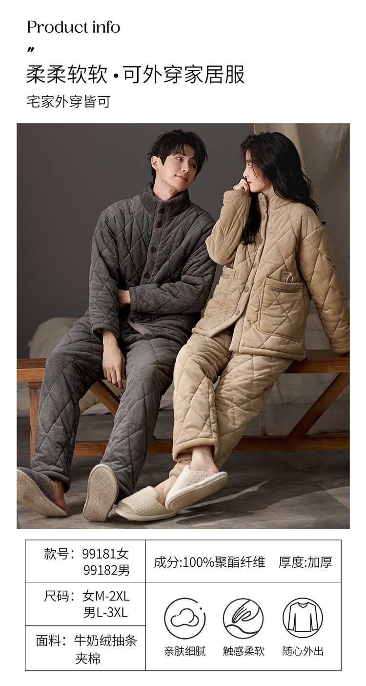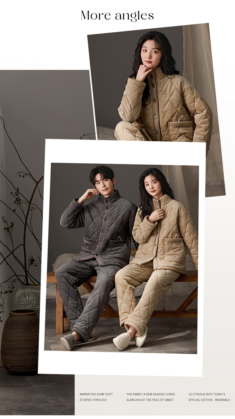 커플 잠옷 겨울 여성의 두꺼운 기모 밀크 벨벳 퀼트 따뜻한 3 층 코랄 벨벳 남성용 칼라 홈 옷스토어 가기