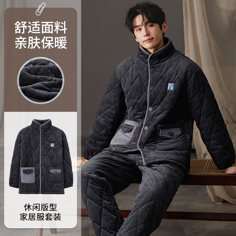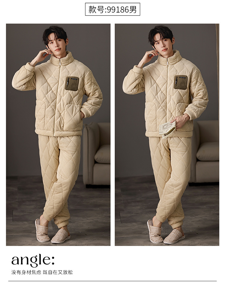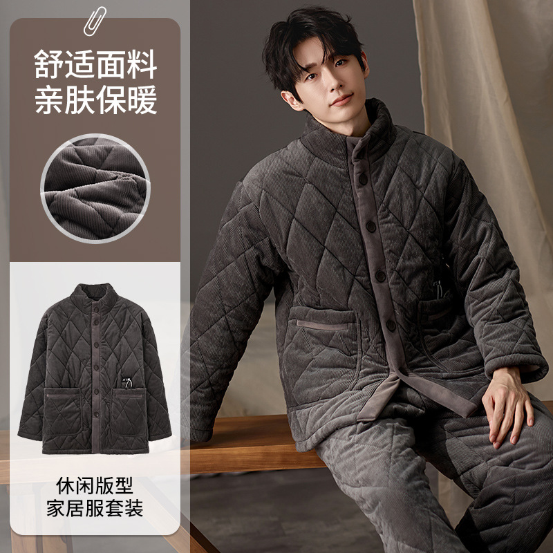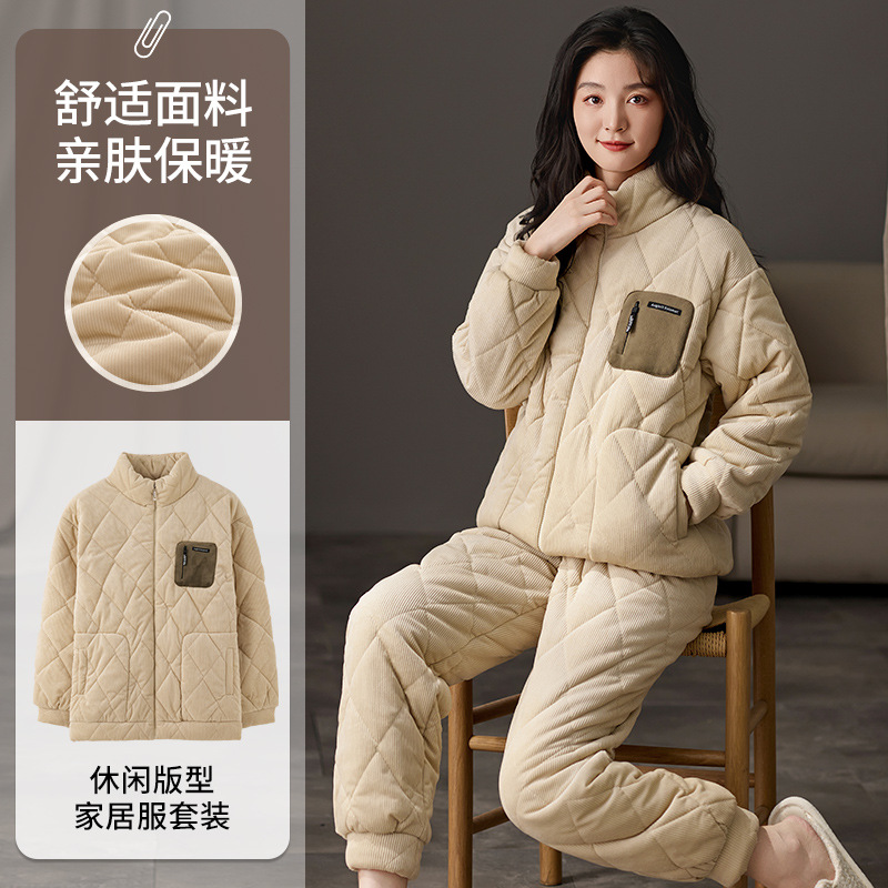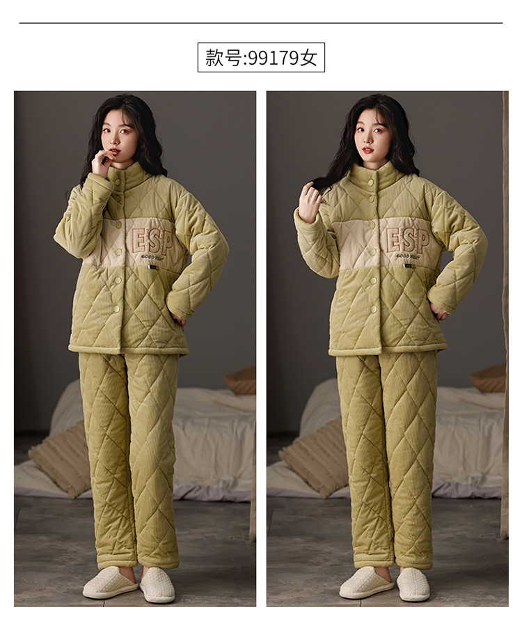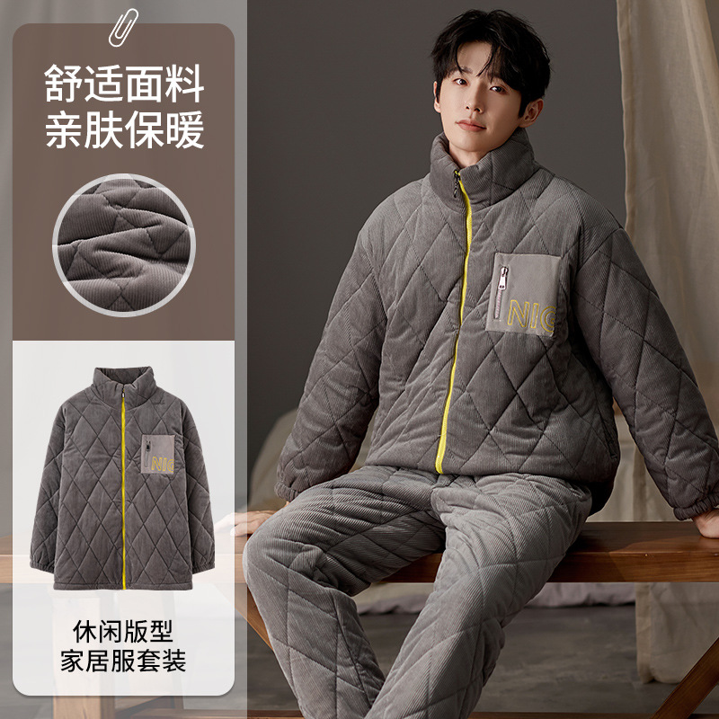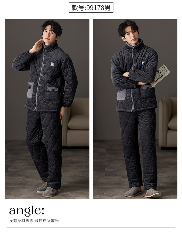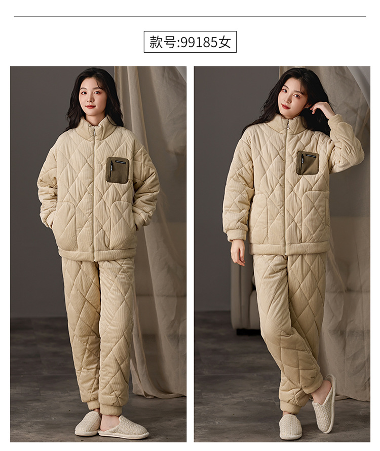 커플 잠옷 겨울 여성의 두꺼운 기모 밀크 벨벳 퀼트 따뜻한 3 층 코랄 벨벳 남성용 칼라 홈 옷스토어 가기