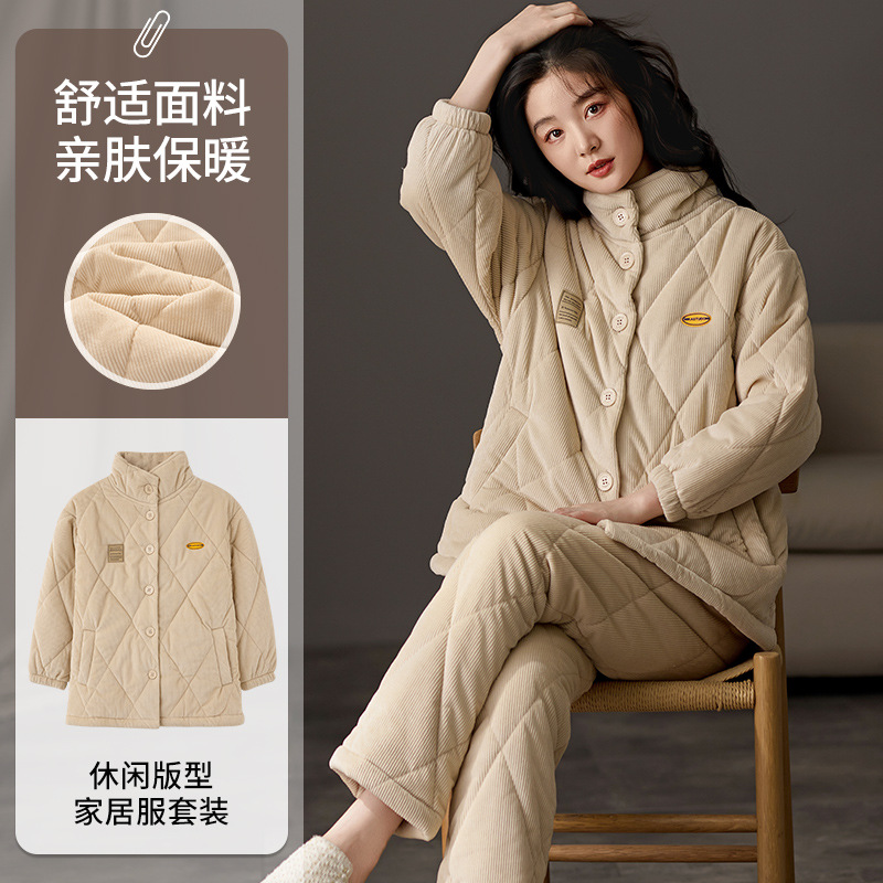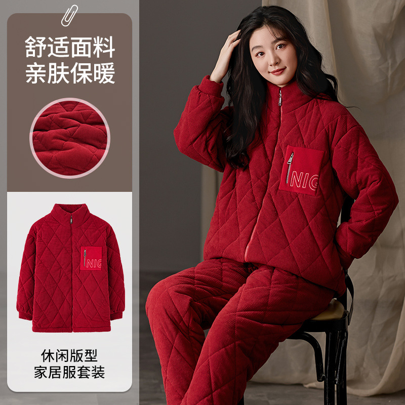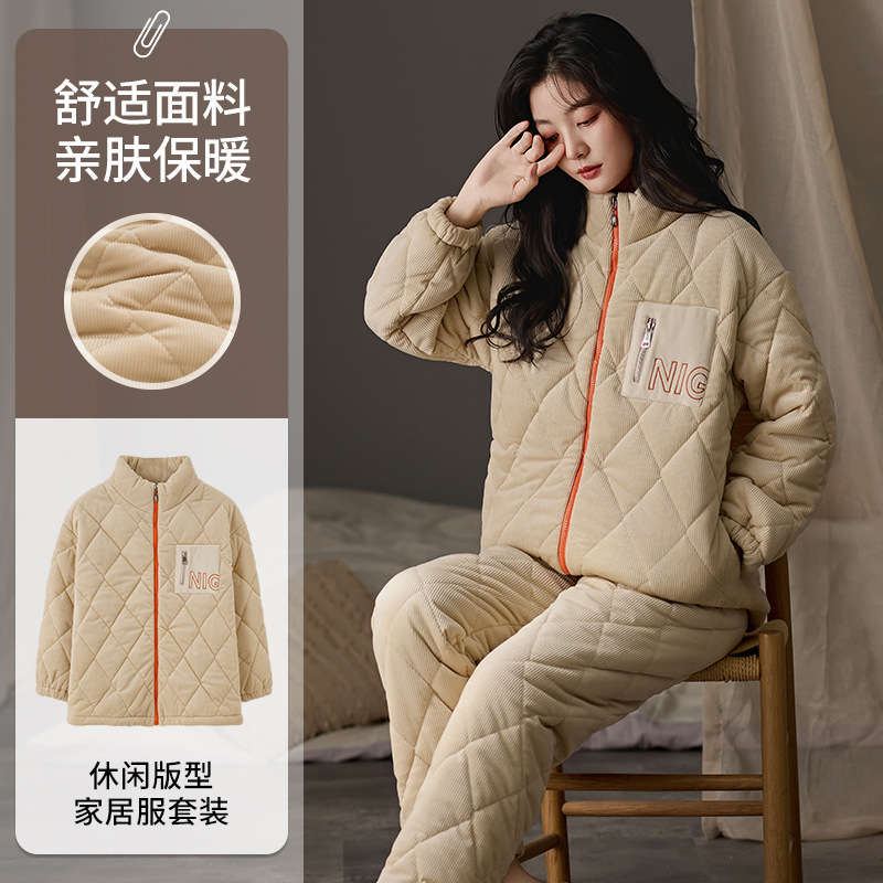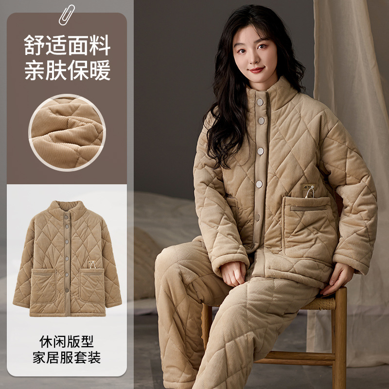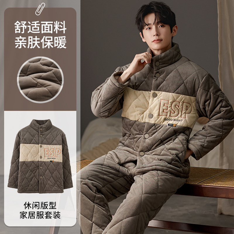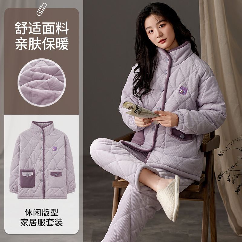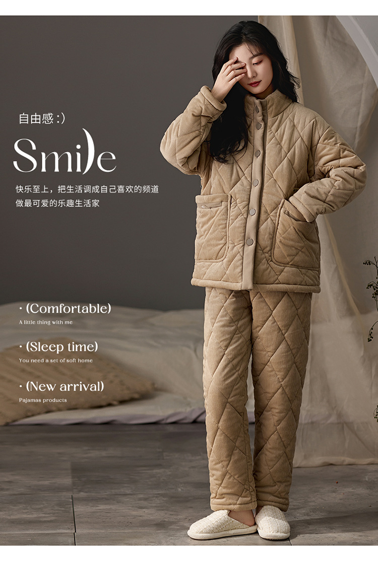 커플 잠옷 겨울 여성의 두꺼운 기모 밀크 벨벳 퀼트 따뜻한 3 층 코랄 벨벳 남성용 칼라 홈 옷스토어 가기