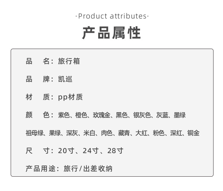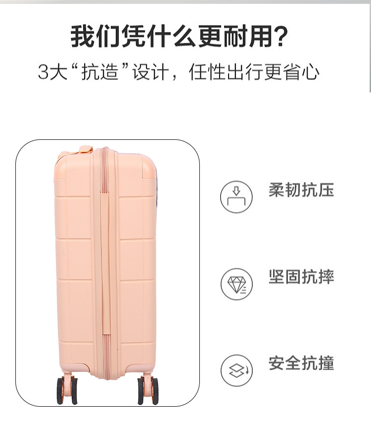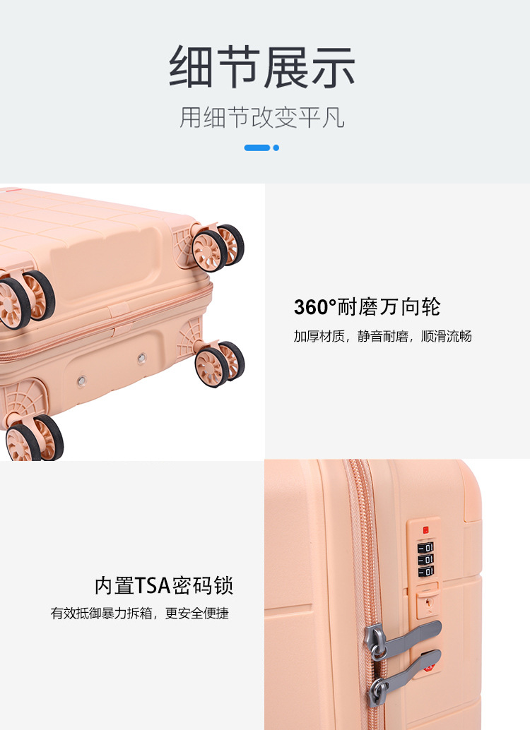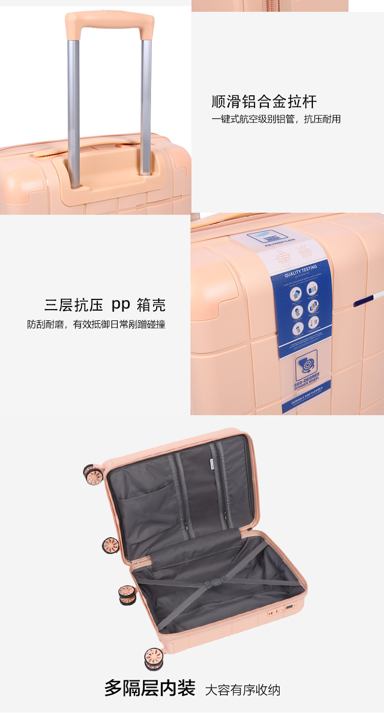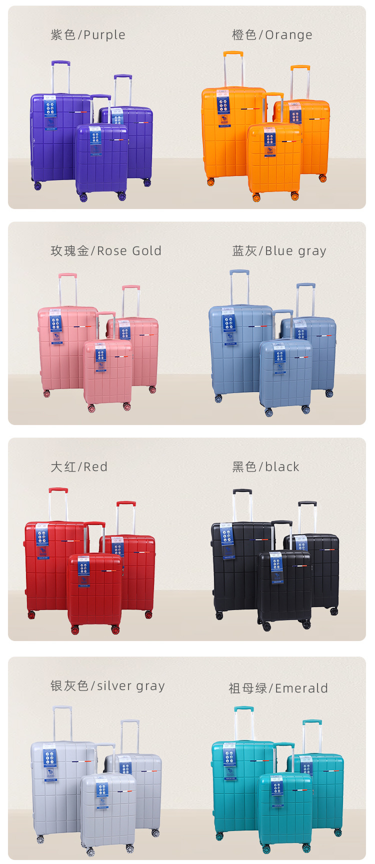 2024 대용량 가방 pp 소재 솔리드 컬러 트롤리 케이스 여행 여행 학생 20inch 탑승 비즈니스 케이스