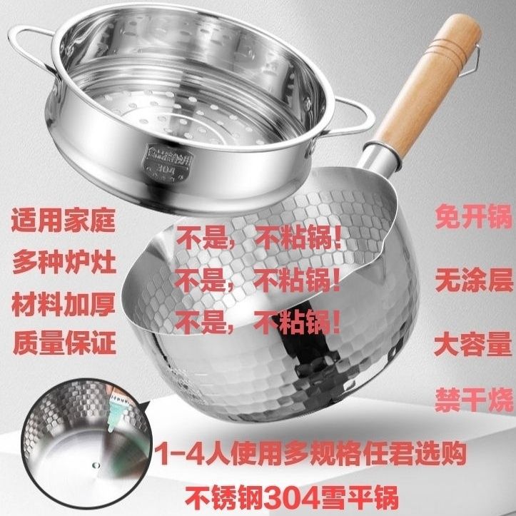 304 스테인레스 스틸 스노우 팬 가정용 기숙사 작은 냄비 유아식 보충 냄비 코팅되지 않은 우유 냄비 증기선 Hongzhi