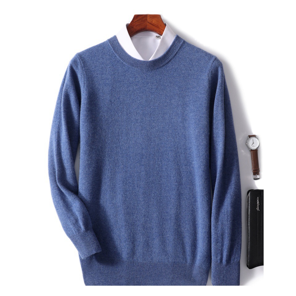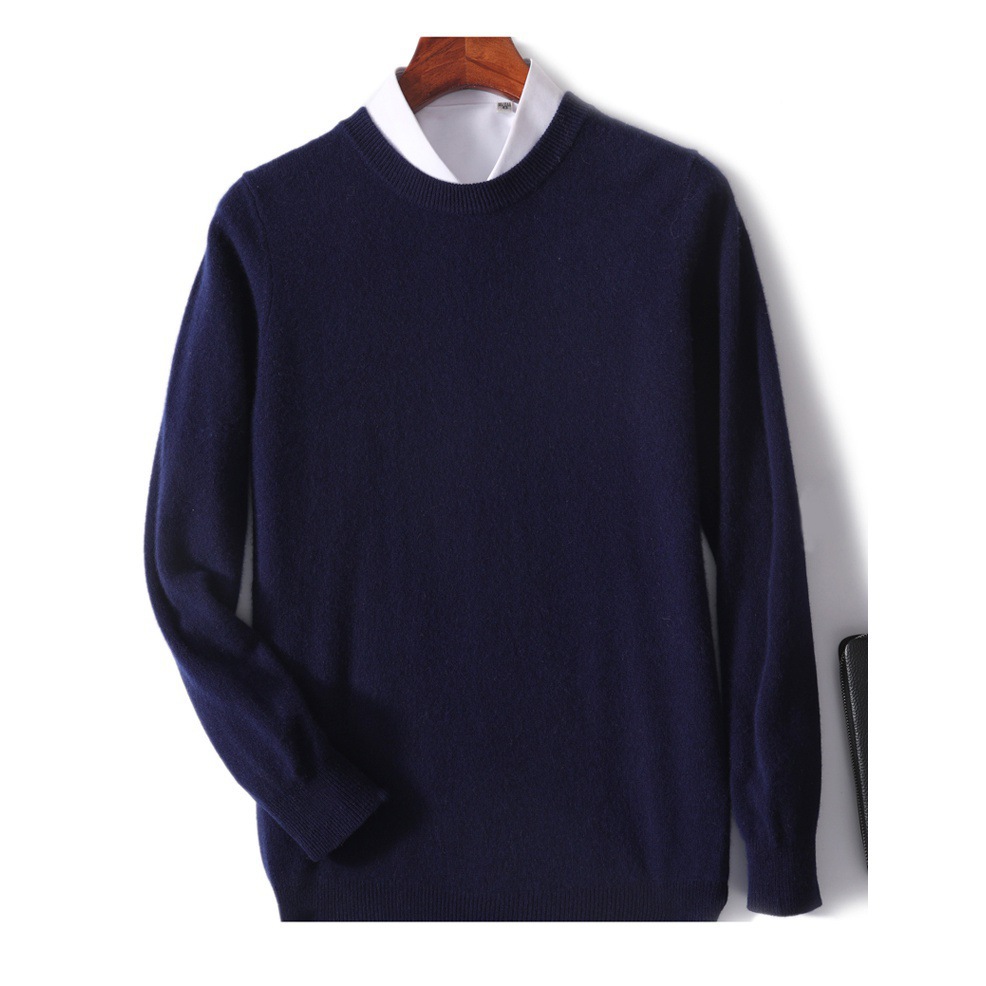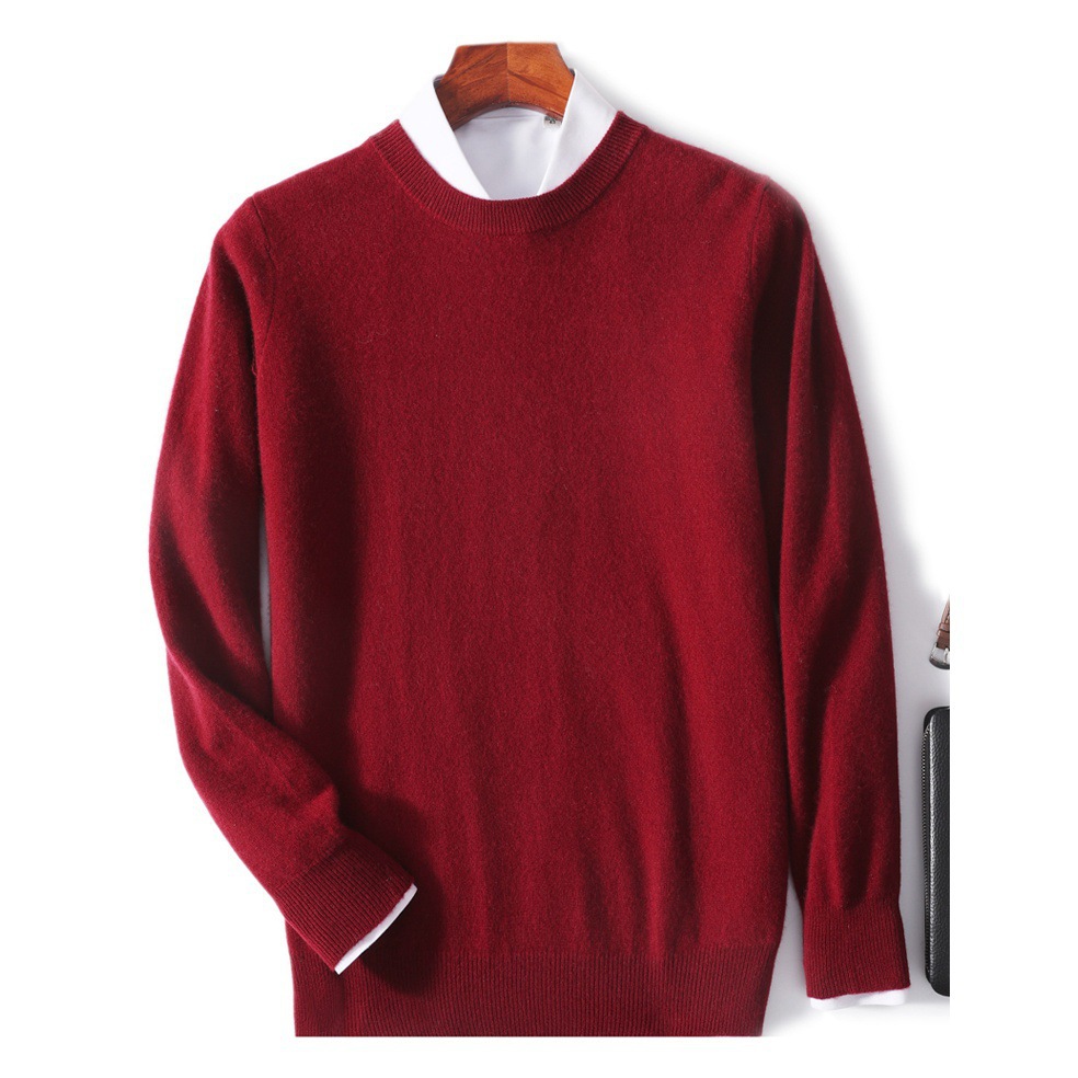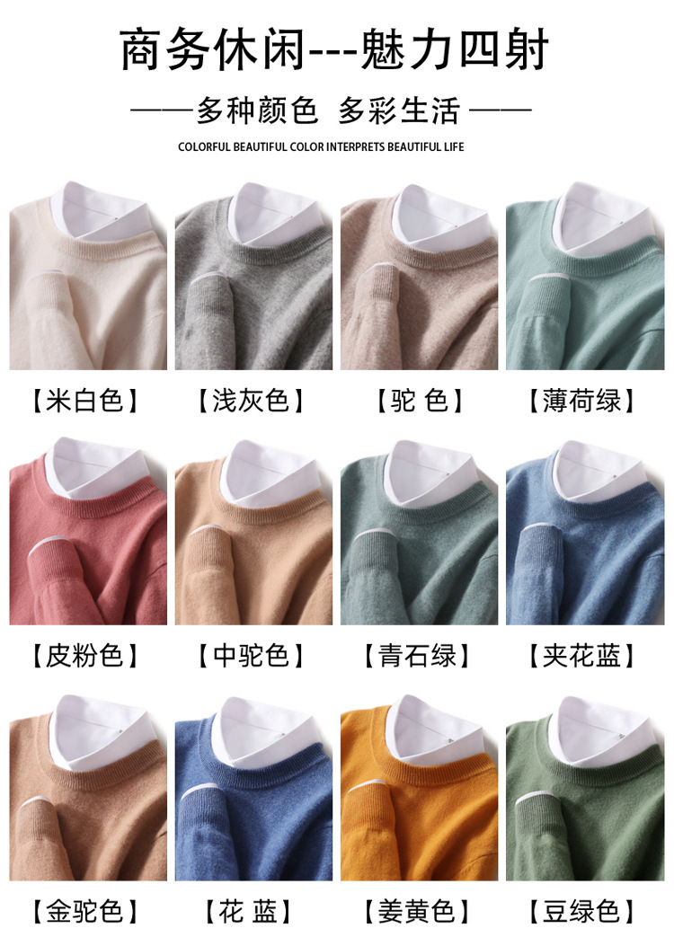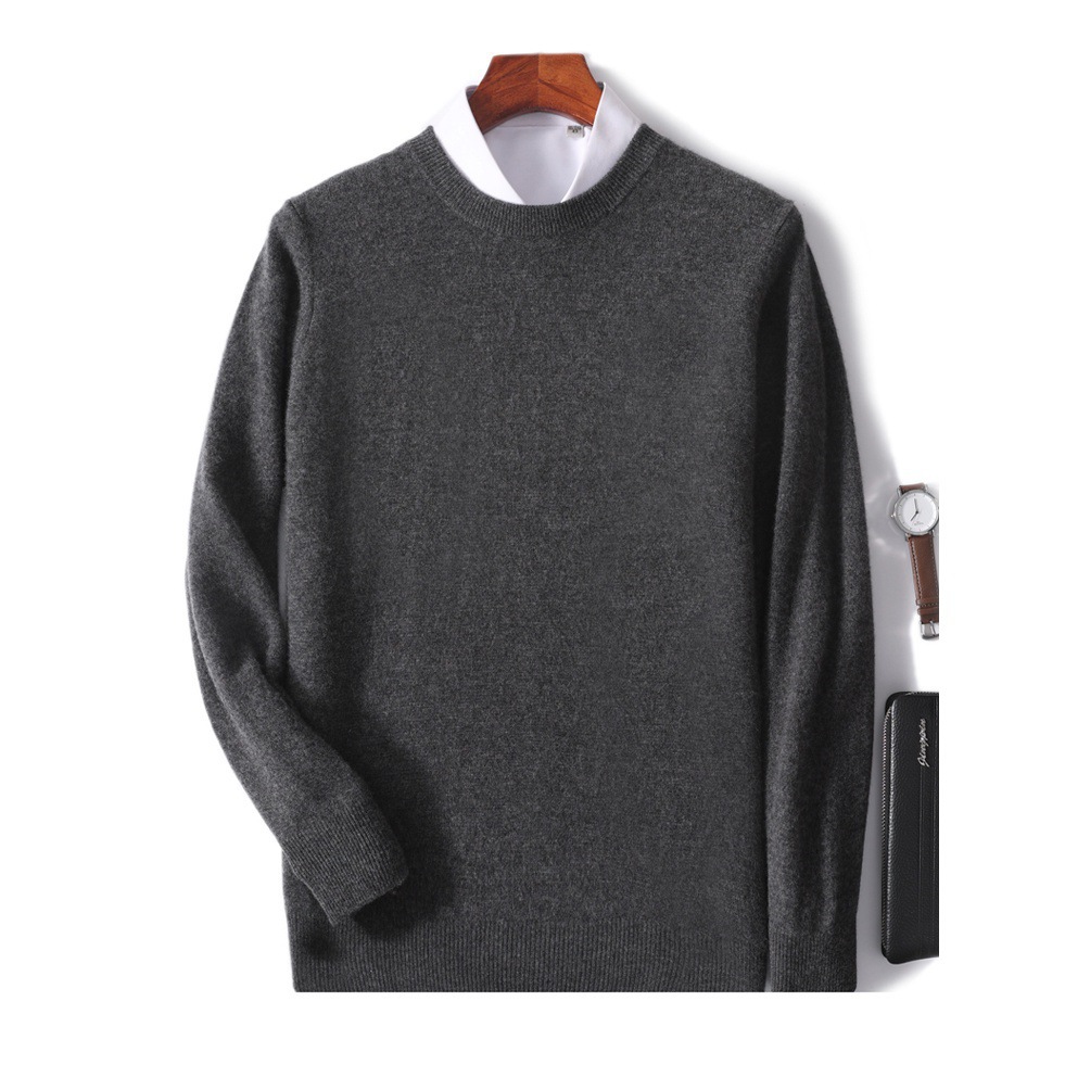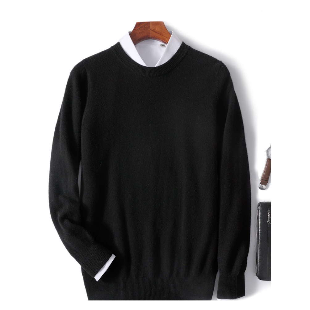 가을과 겨울 새로운 100% 순수 양모 남자 크루 넥 풀오버 스웨터 느슨한 니트베이스 캐시미어 스웨터 플러스 사이즈