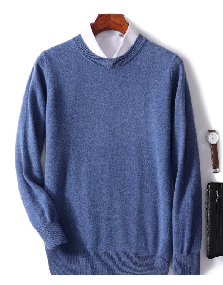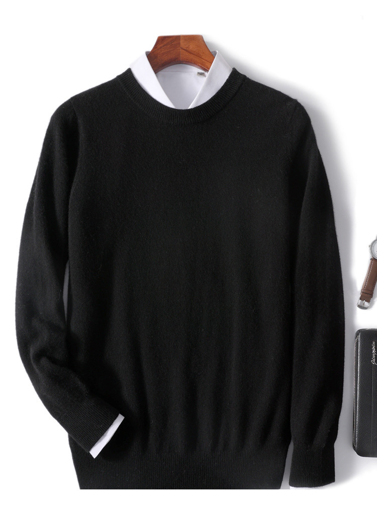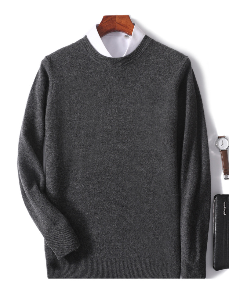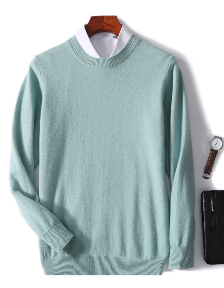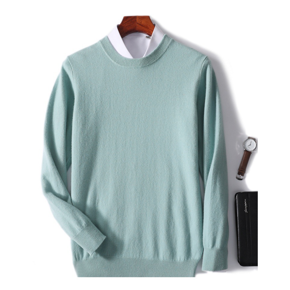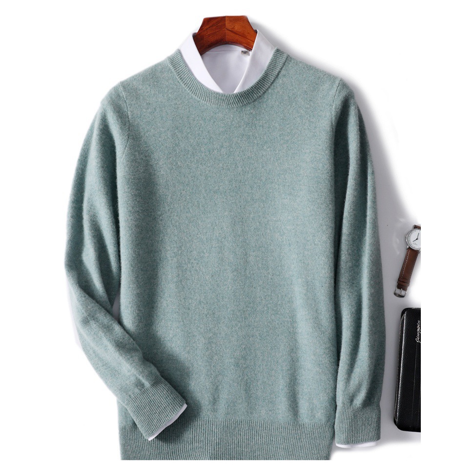 가을과 겨울 새로운 100% 순수 양모 남자 크루 넥 풀오버 스웨터 느슨한 니트베이스 캐시미어 스웨터 플러스 사이즈