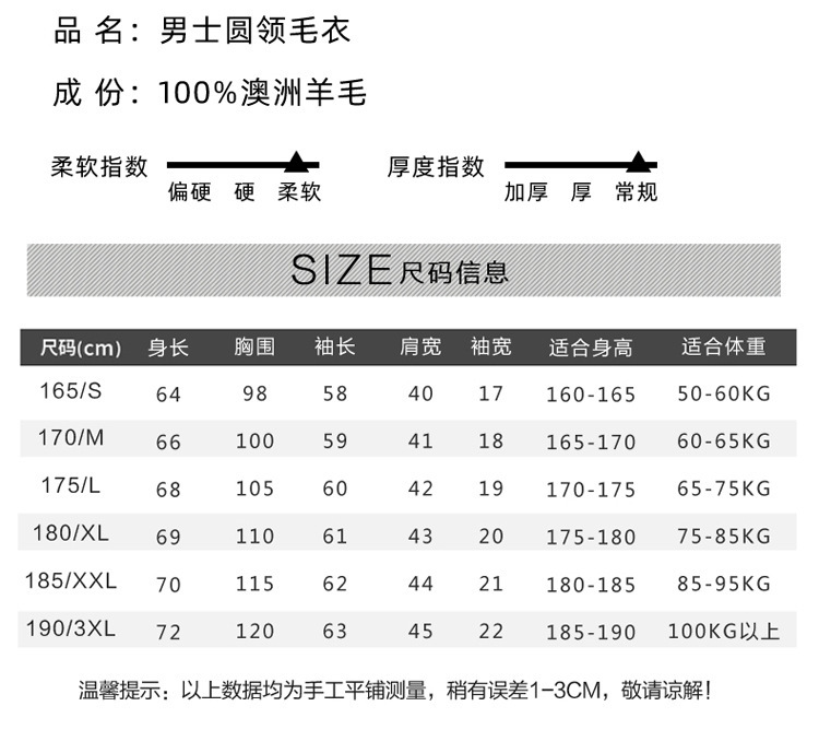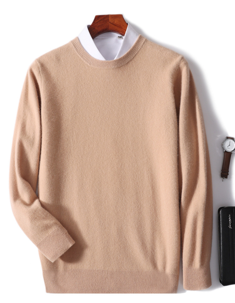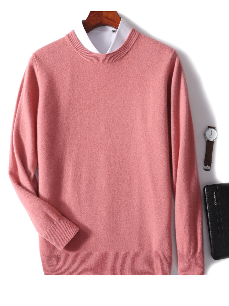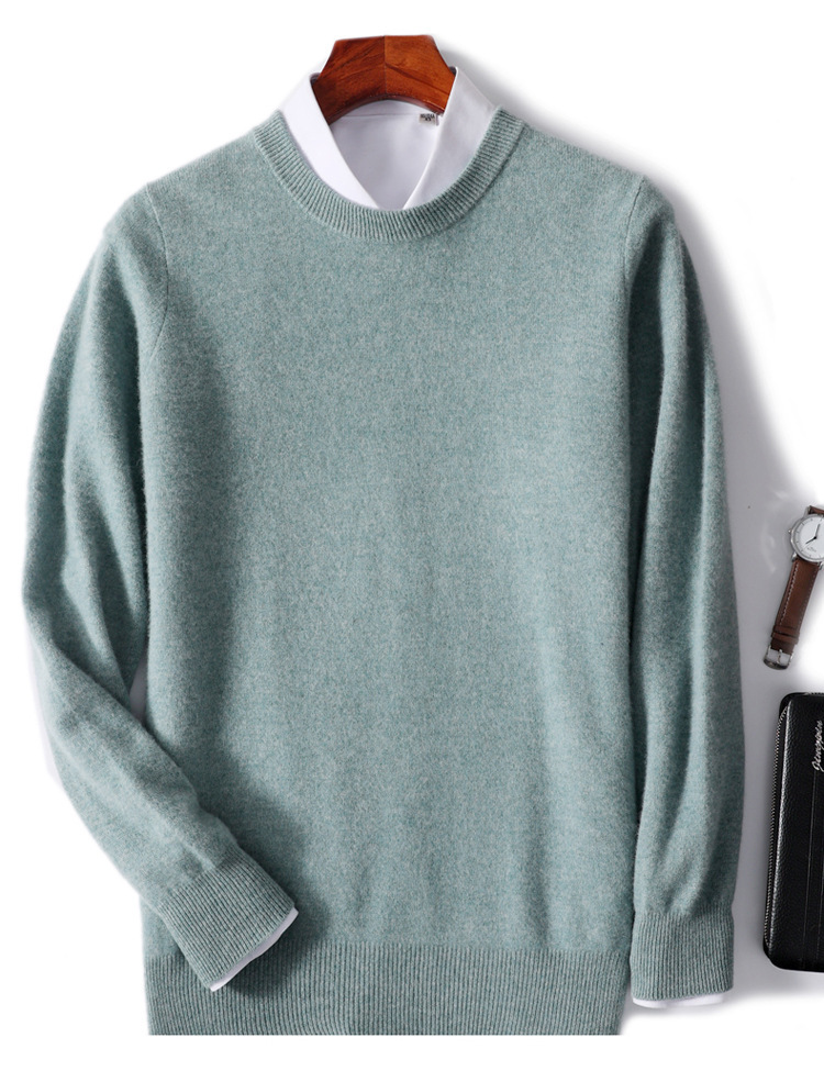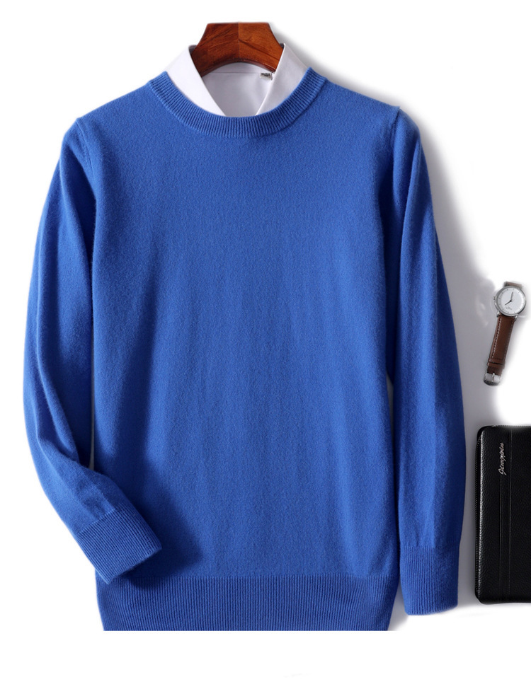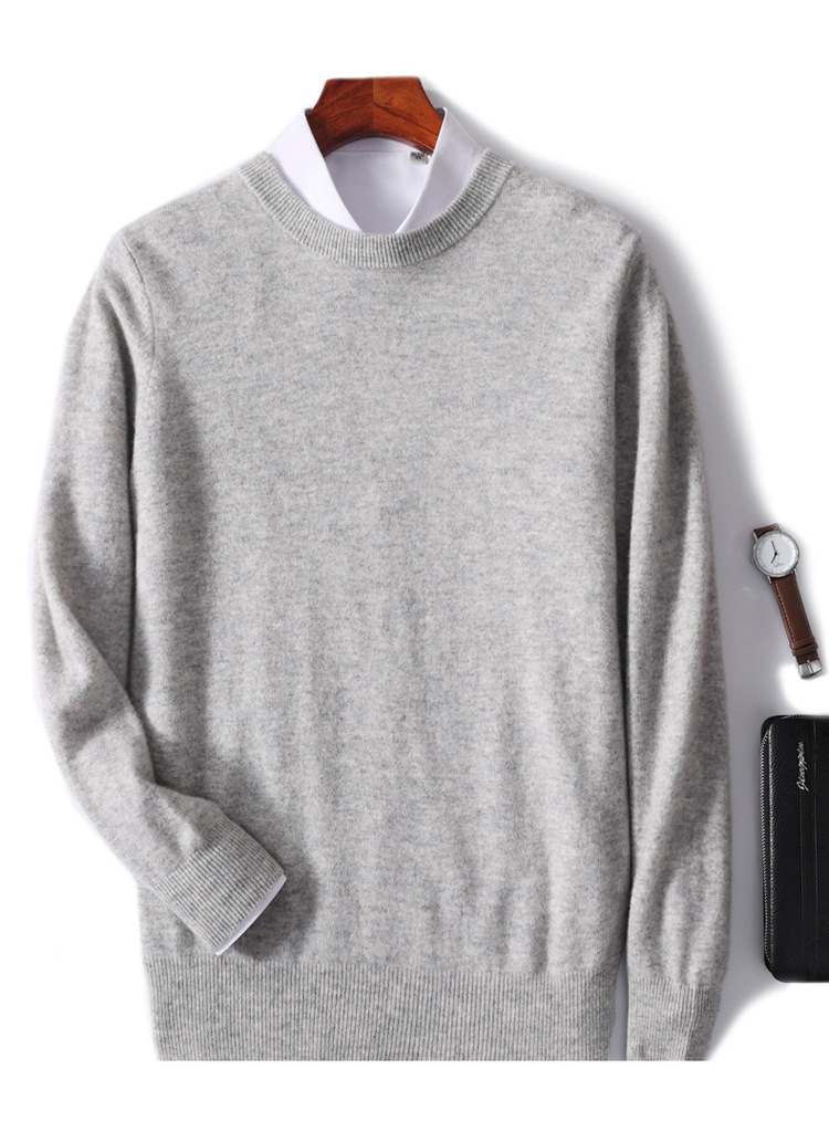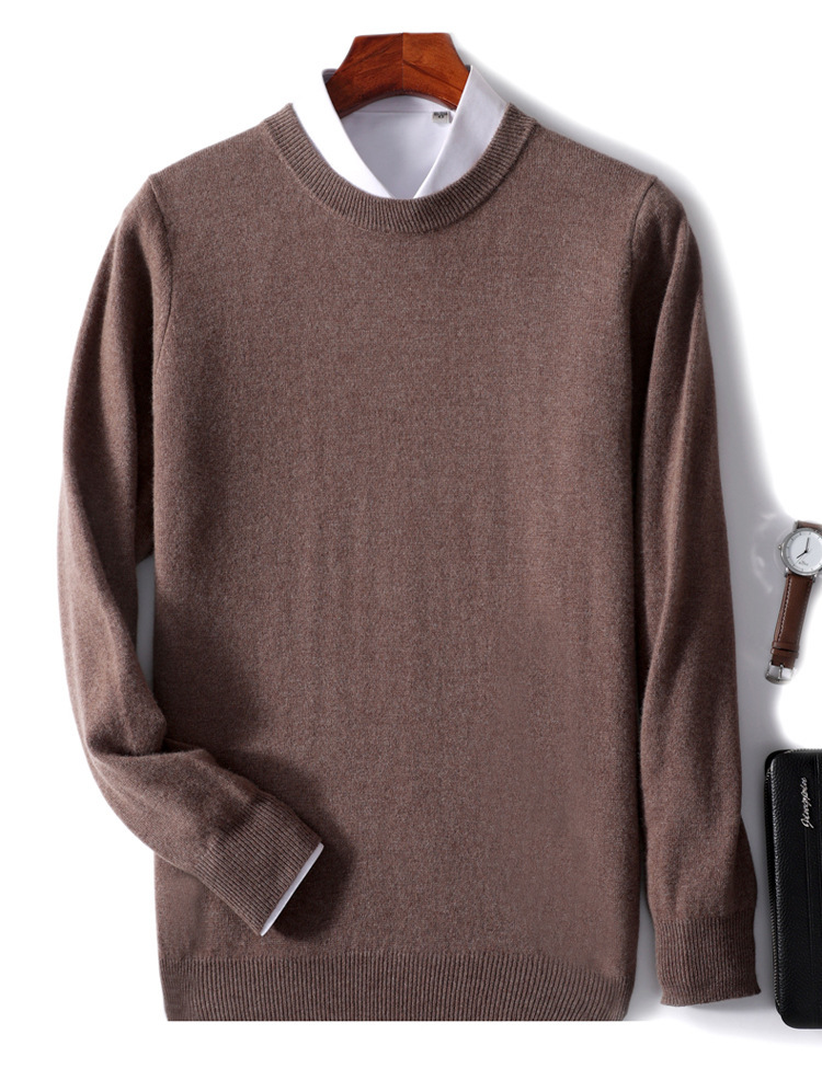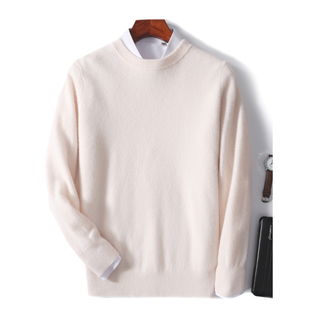 가을과 겨울 새로운 100% 순수 양모 남자 크루 넥 풀오버 스웨터 느슨한 니트베이스 캐시미어 스웨터 플러스 사이즈
