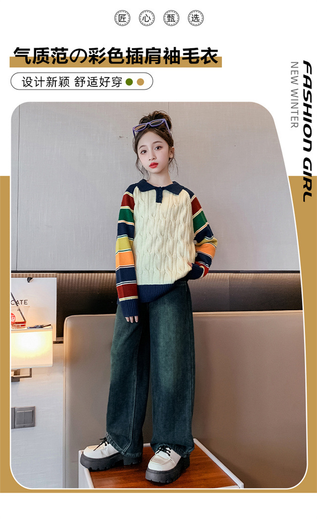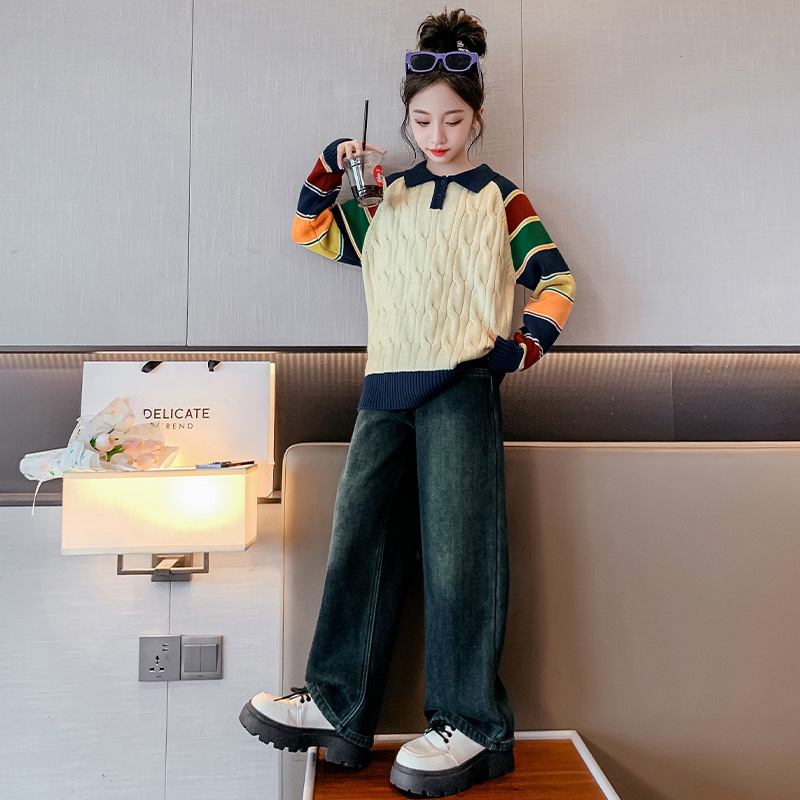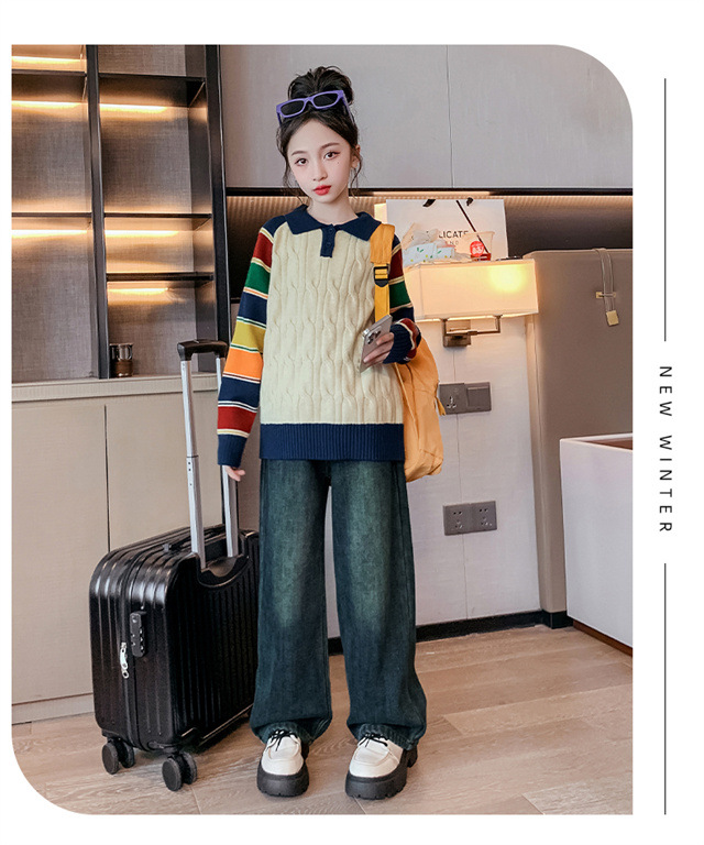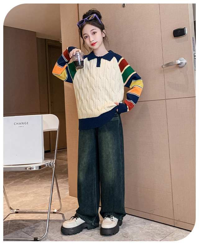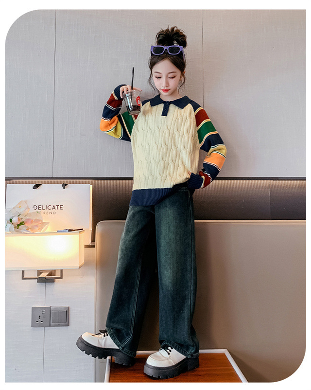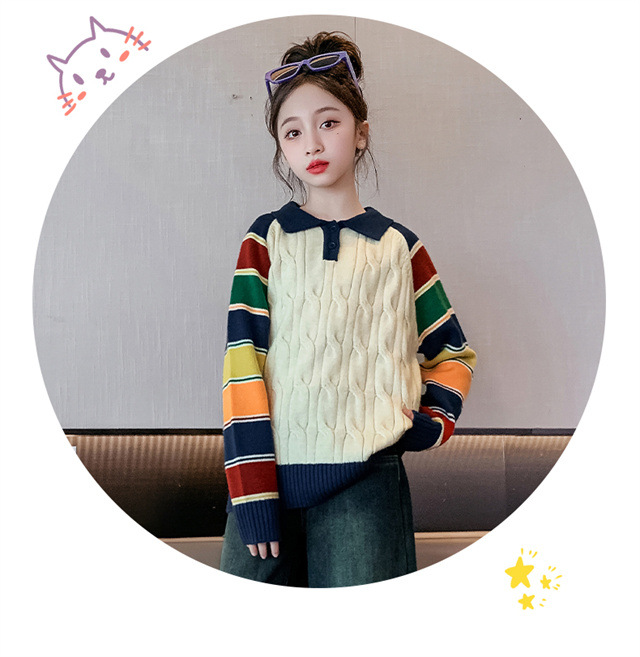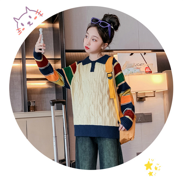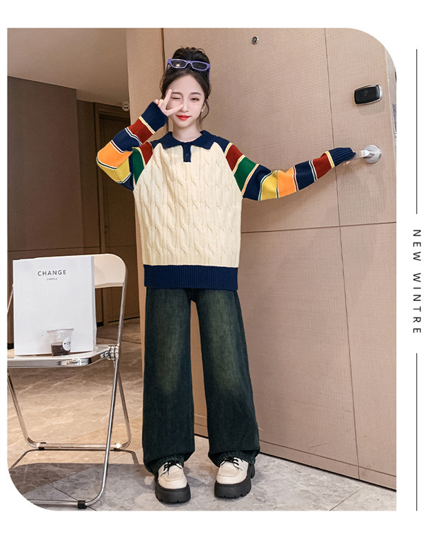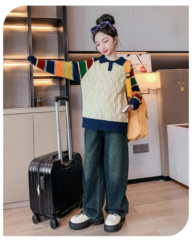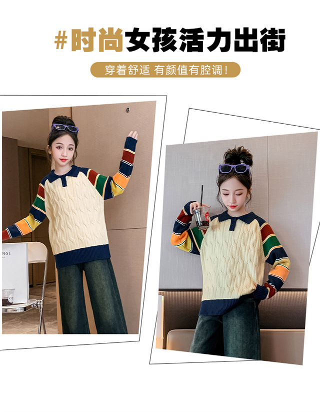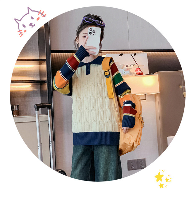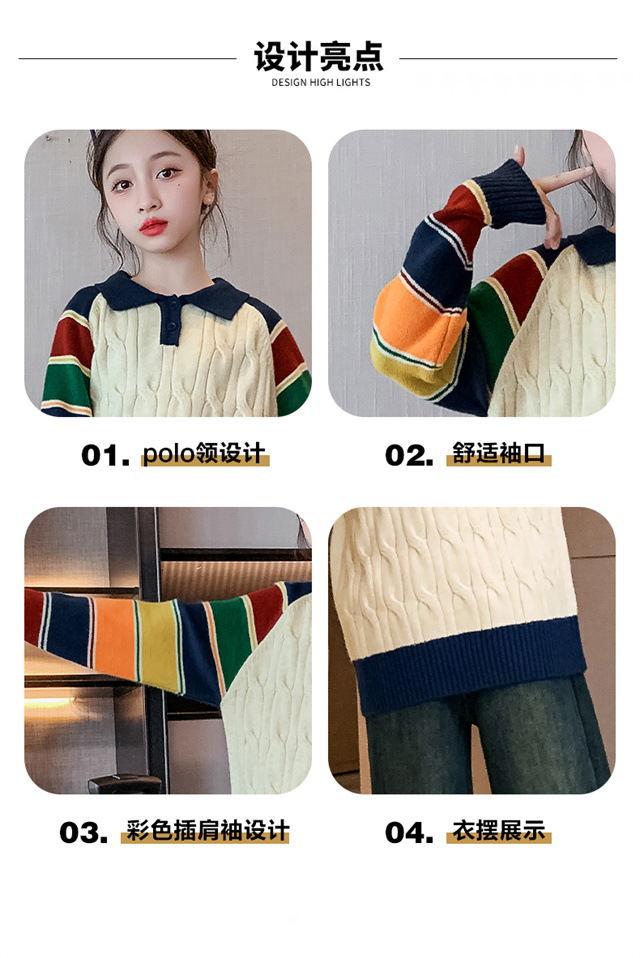 빅 보이 2024 가을과 겨울 캐주얼 서양 여성의 보물 니트 스웨터 컬러 대비 트위스트 스티칭 폴로 칼라 스웨터