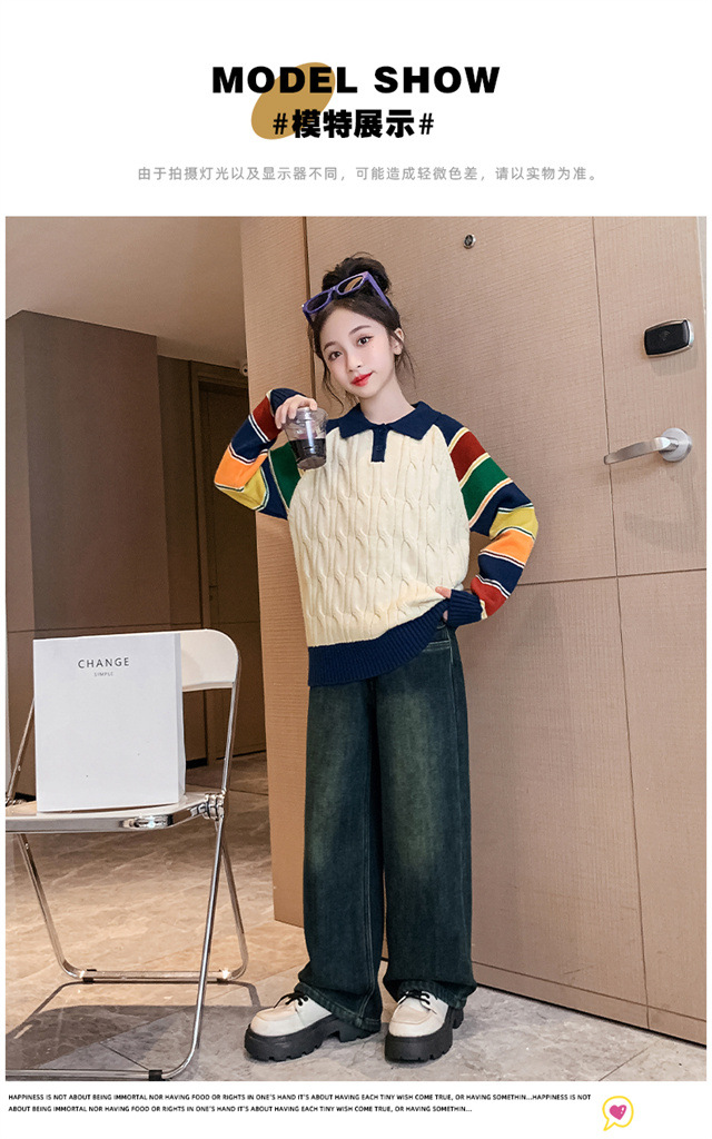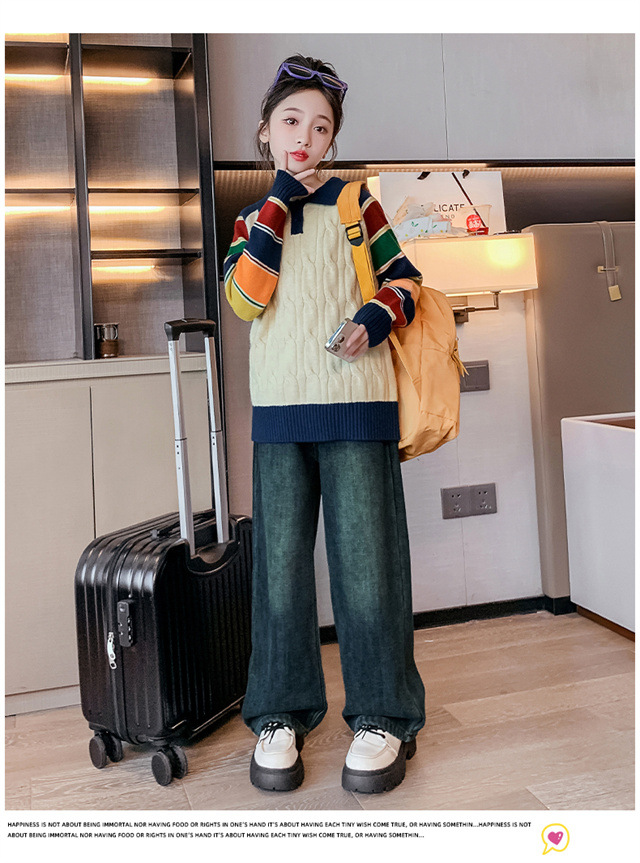 빅 보이 2024 가을과 겨울 캐주얼 서양 여성의 보물 니트 스웨터 컬러 대비 트위스트 스티칭 폴로 칼라 스웨터스토어 가기