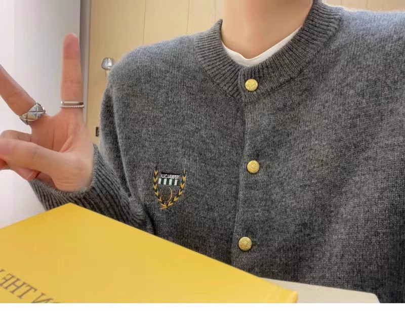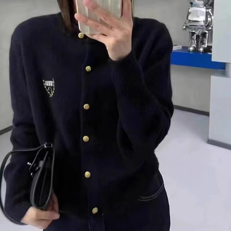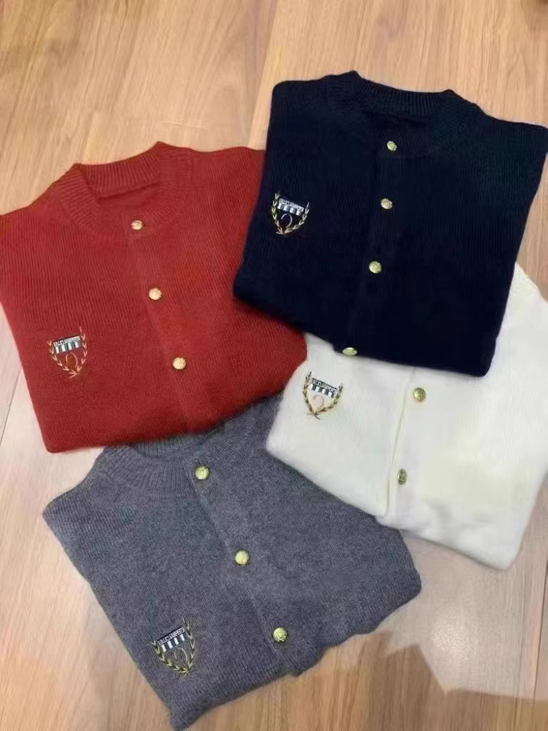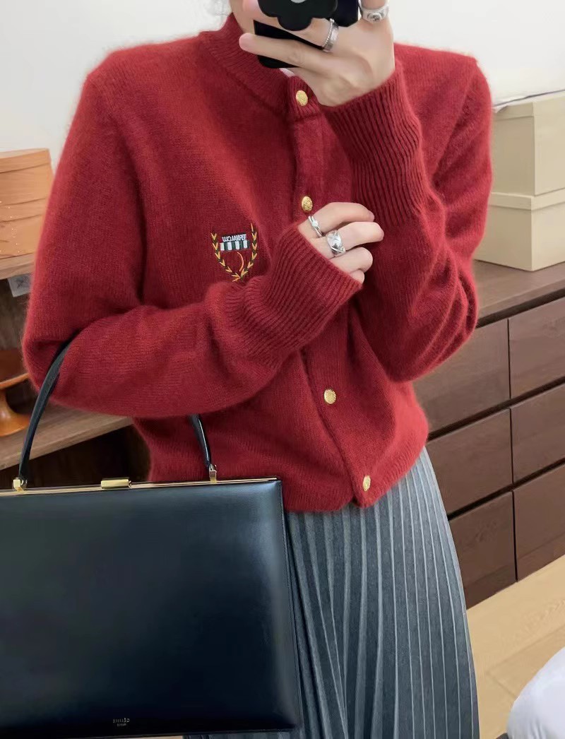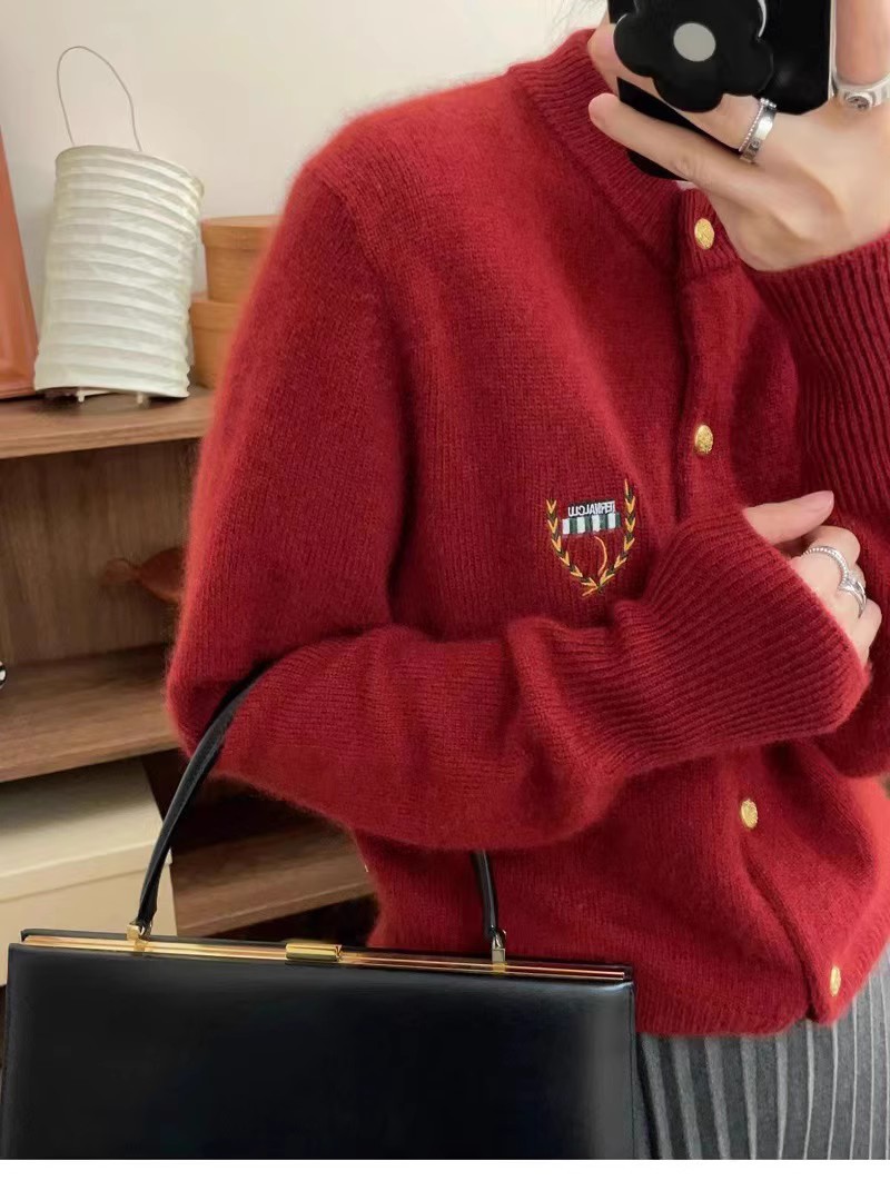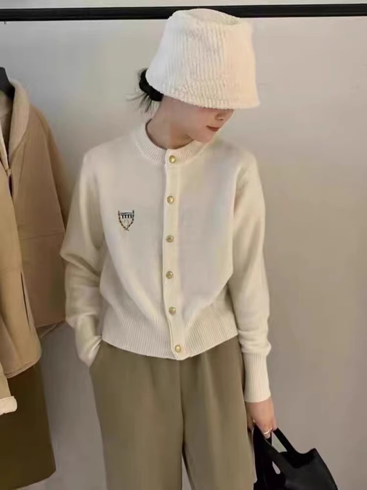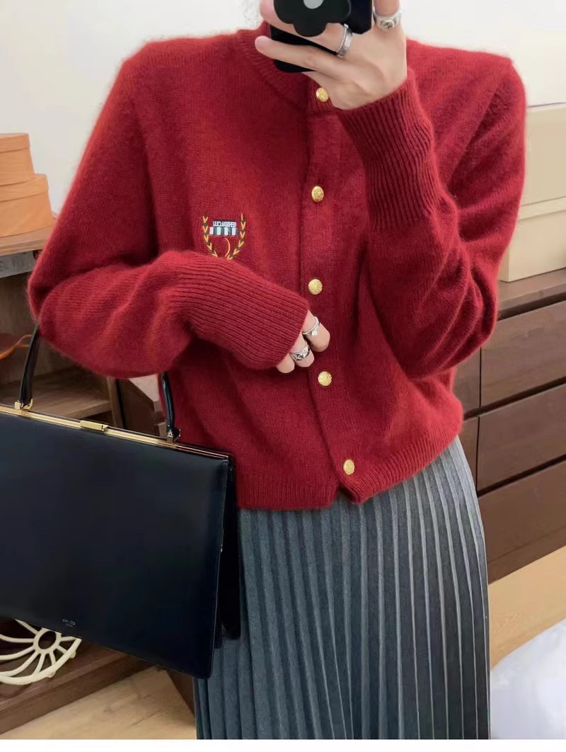 100 순수 양모 카디건 여성 가을과 겨울 새로운 둥근 목 자수 짧은 니트 스웨터 재킷 느슨한 캐주얼 탑