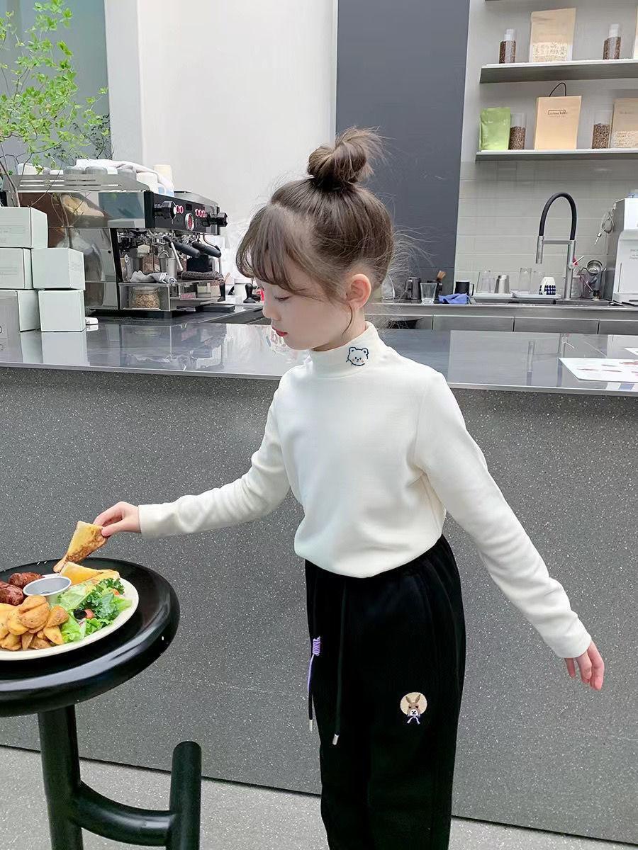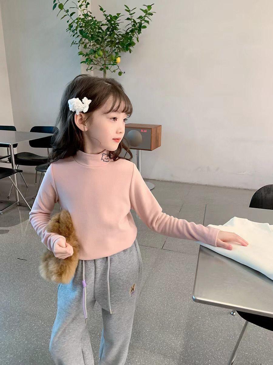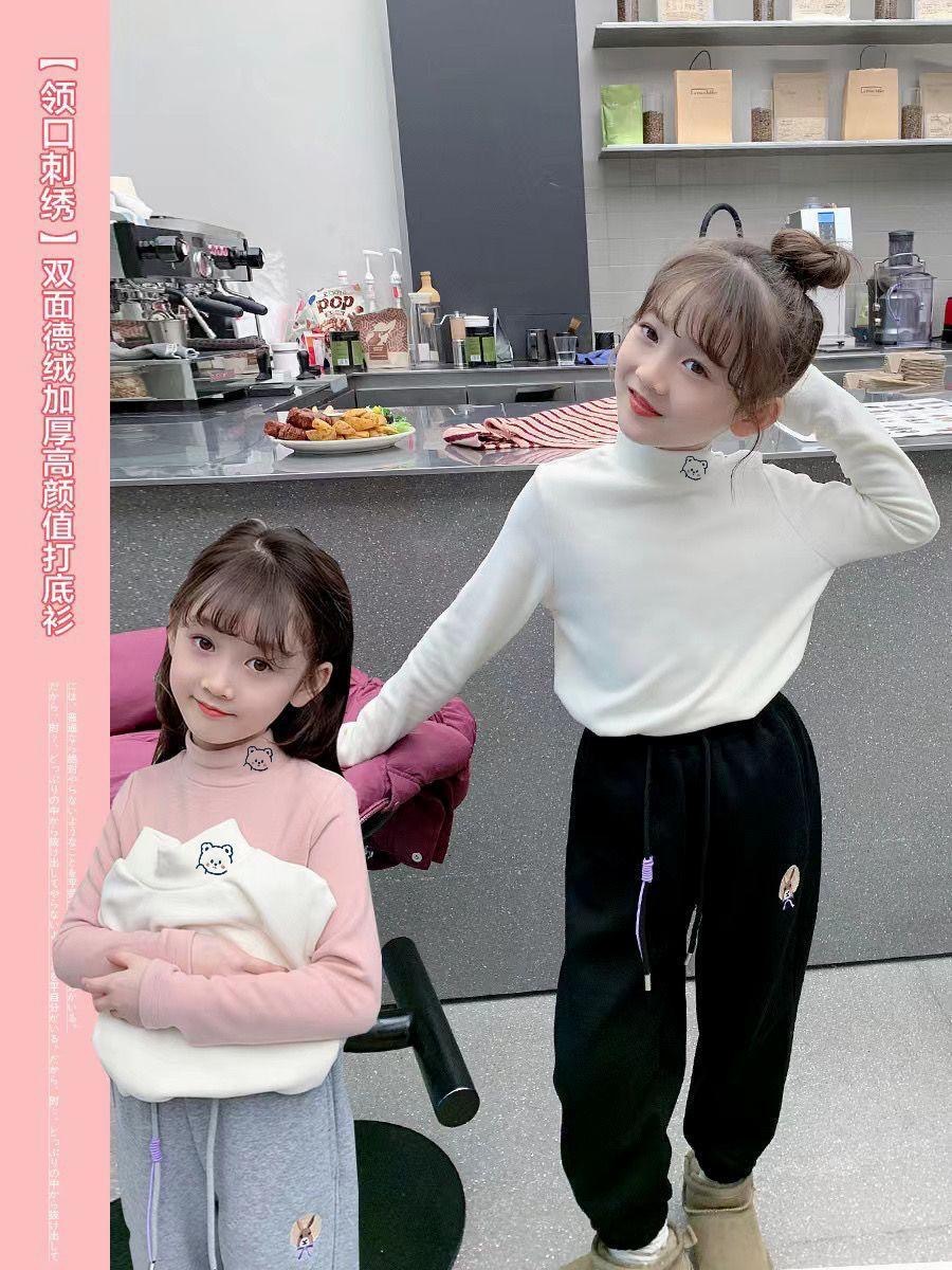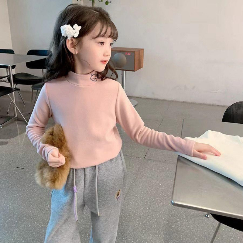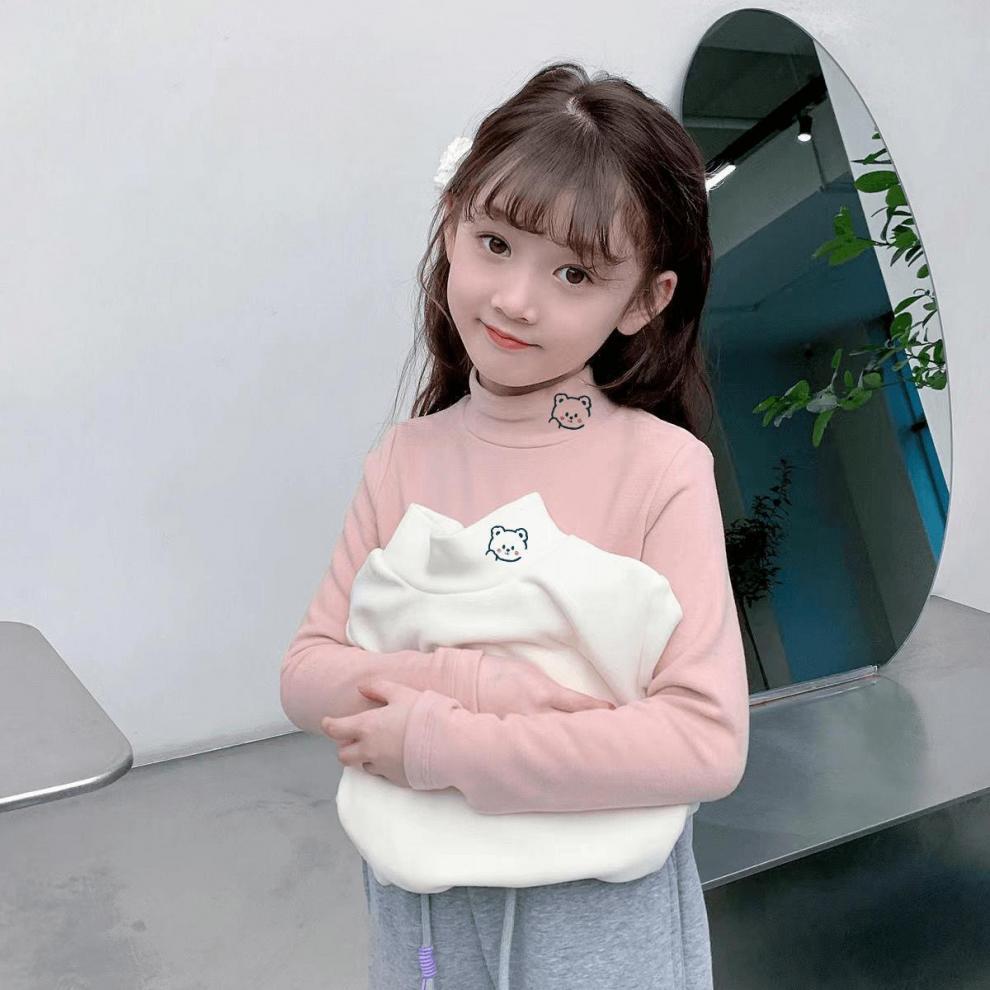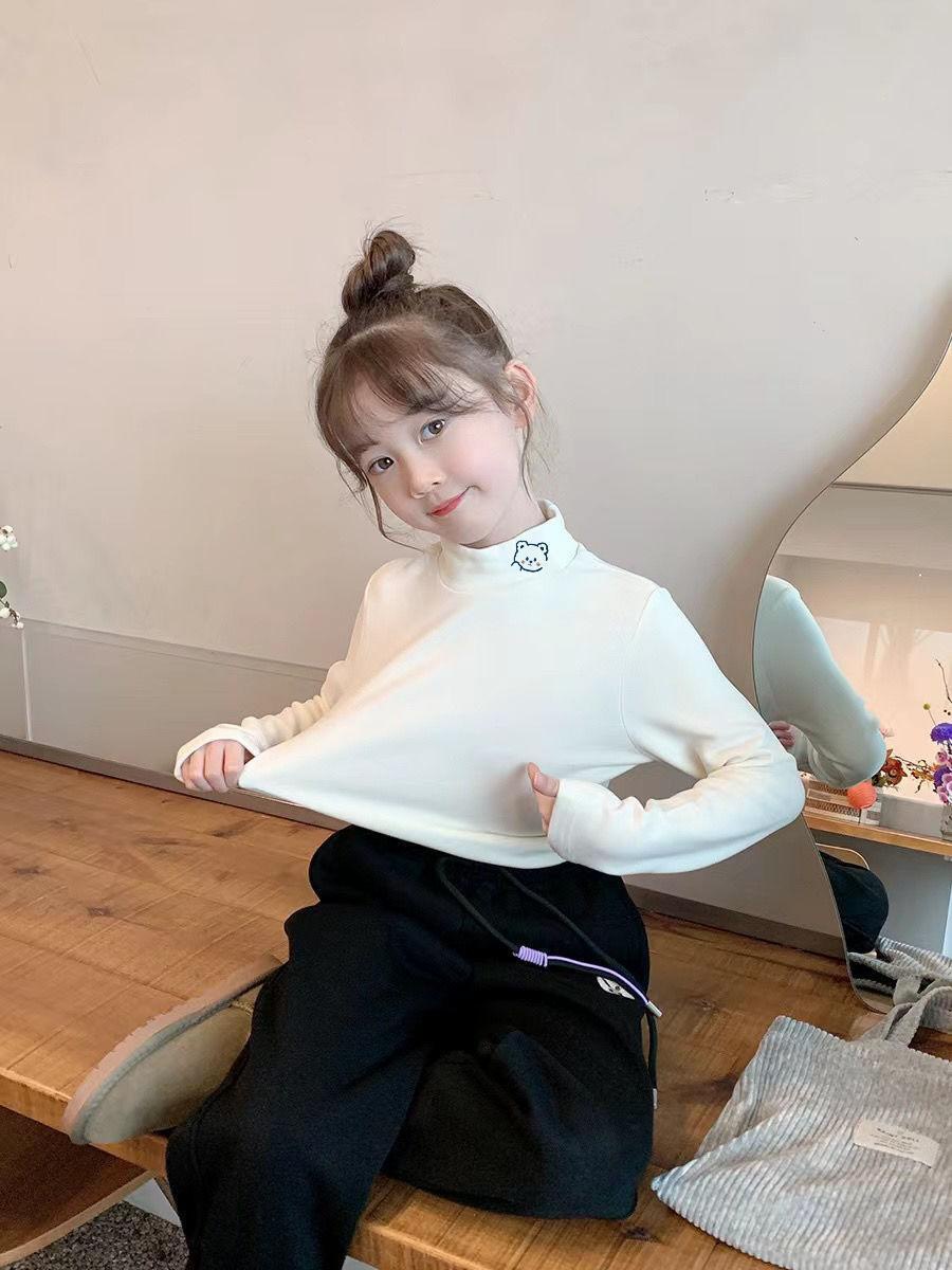 걸스 벨벳 바닥 셔츠 가을과 겨울 새로운 어린이 긴팔 티셔츠 서양식 아기의 반 높이 칼라 내한성 탑스토어 가기
