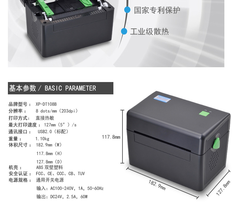 Xinye XP-DT108B 열 프린터 바코드 라벨 국경 물류 익스프레스 100mm 전자 표면 독립형스토어 가기