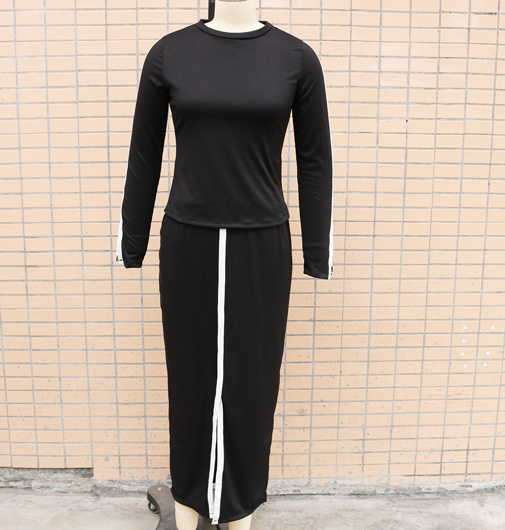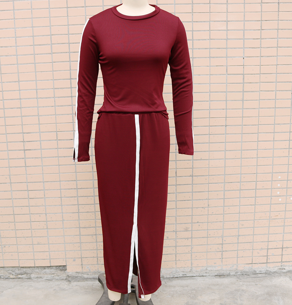 2025 독립형 웹사이트 위시 아마존 신상 가을 겨울 패션 긴팔 단색 슬릿 투피스 스커트 세트 여성용스토어 가기