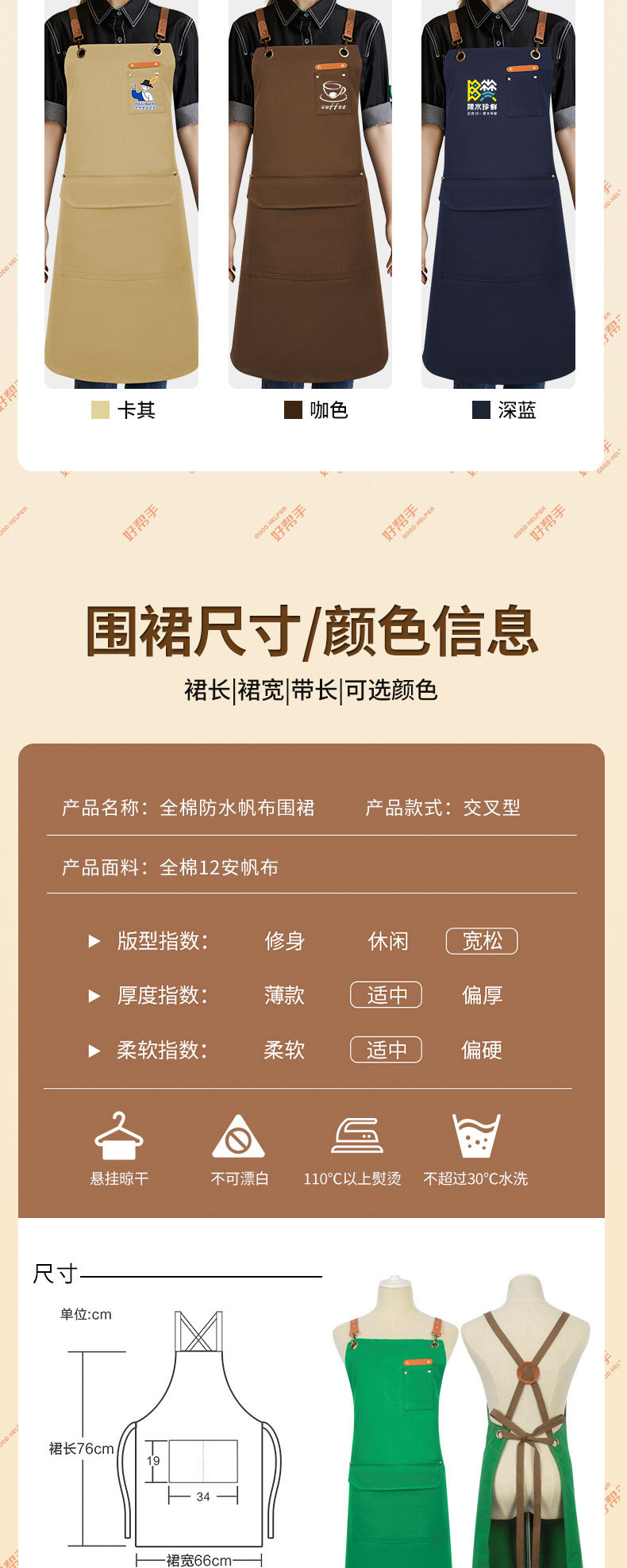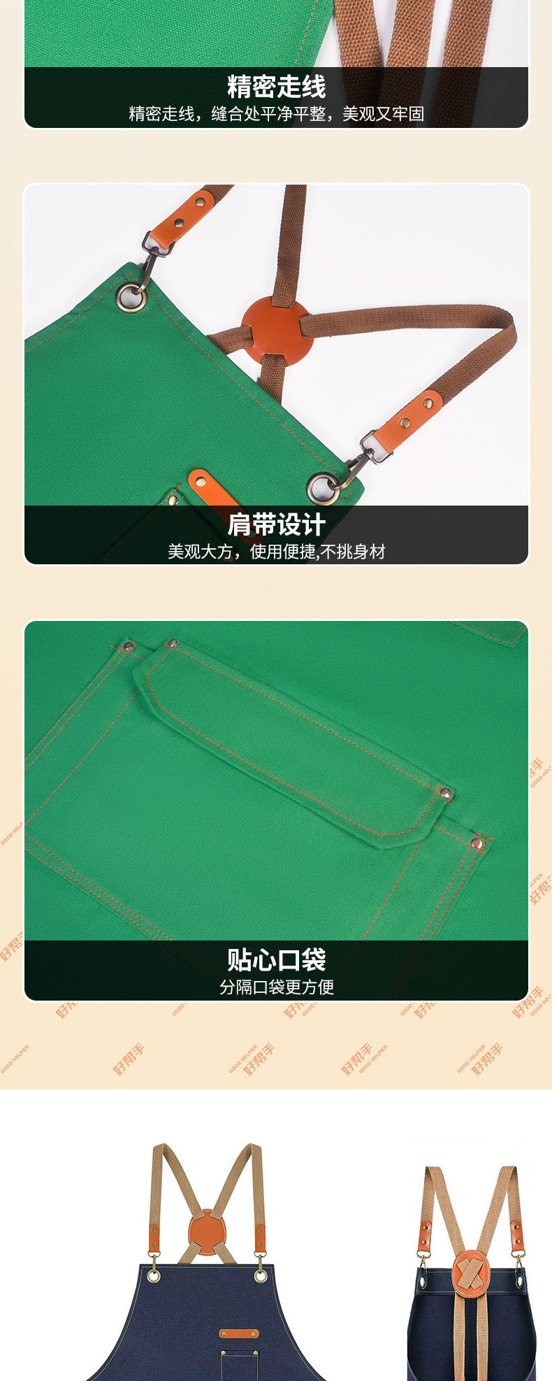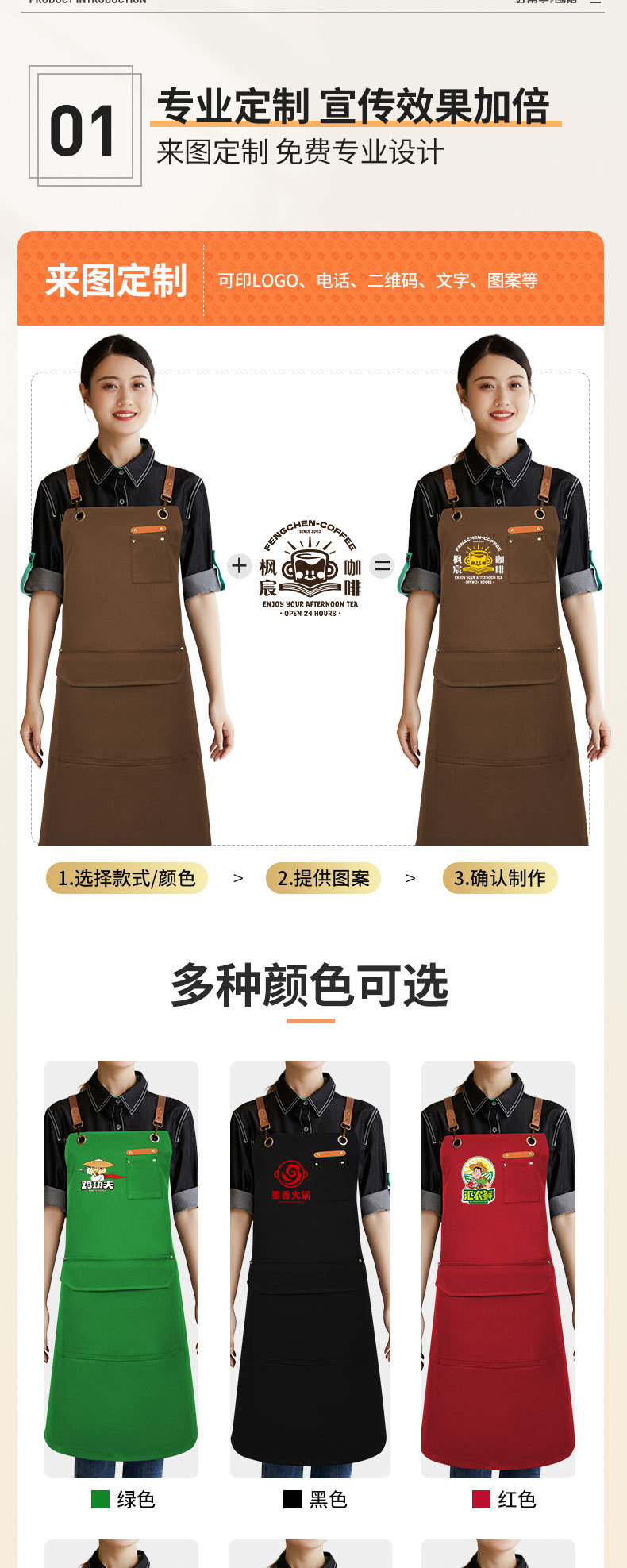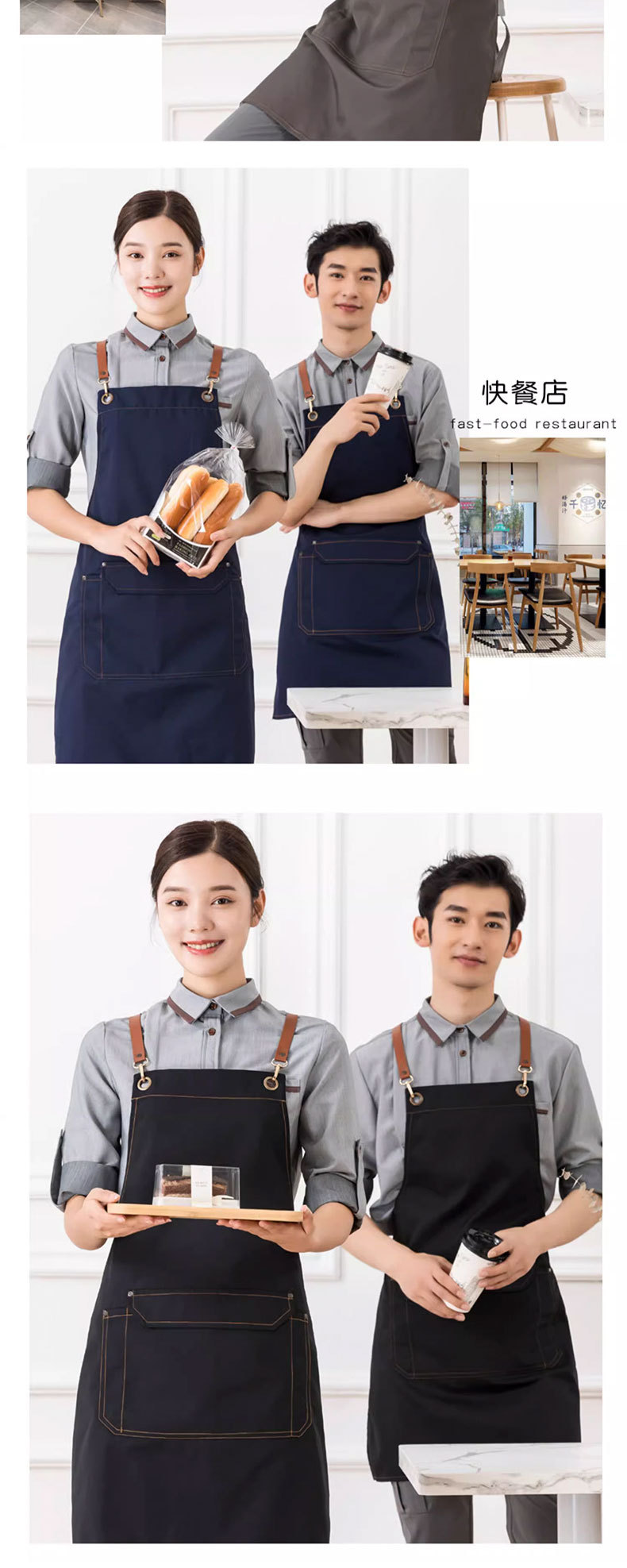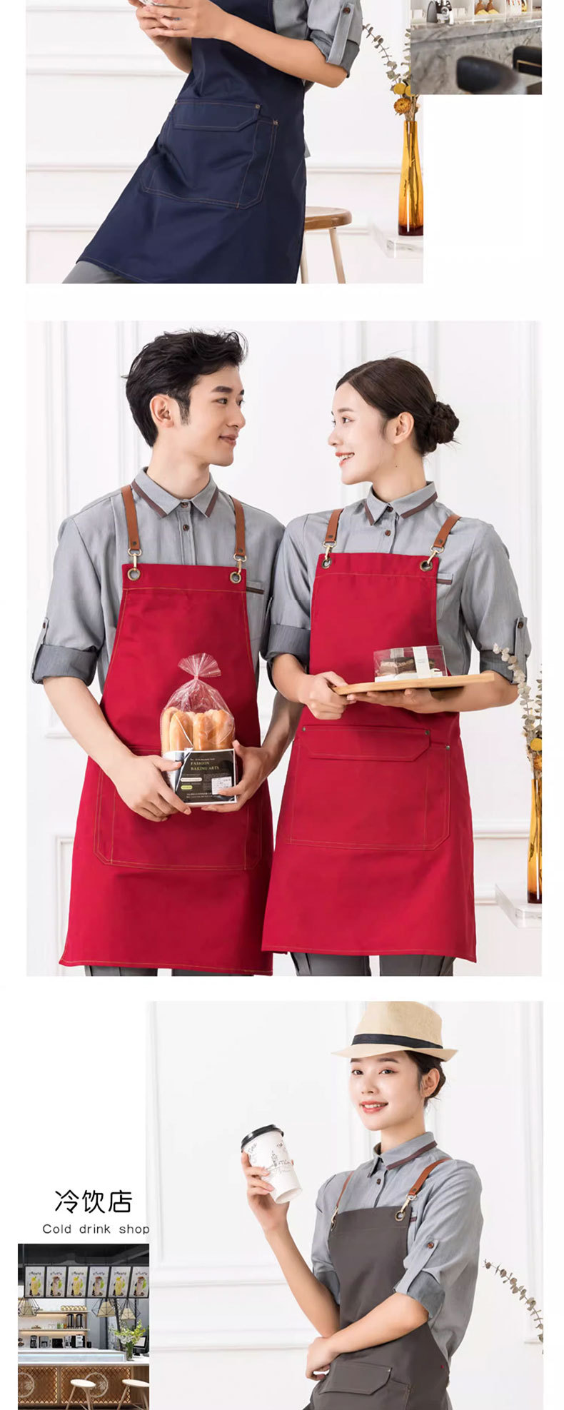 도매 기름 방지 캔버스 앞치마 홈 우유 차 커피 숍 주방 원예 작업 데님 앞치마 인쇄
