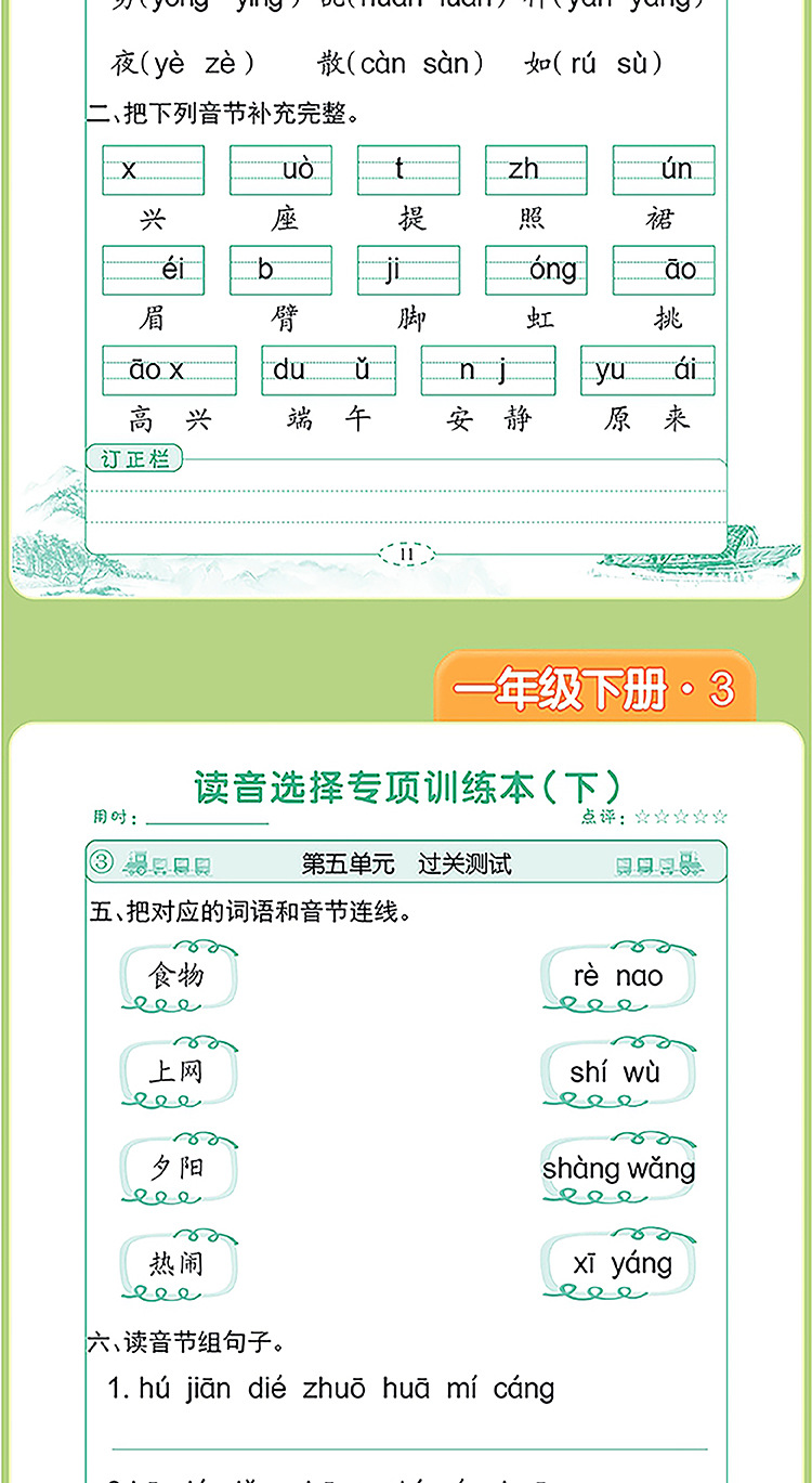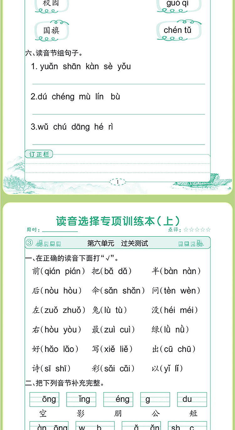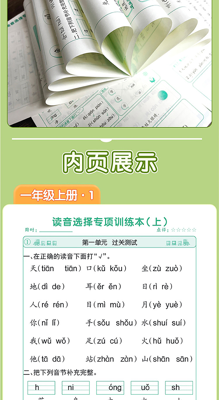 1 학년 발음 선택 특수 운동 종이 인민 교육 판 중국 동기화 훈련 종이 병음 단어 초등 학생을위한 책스토어 가기