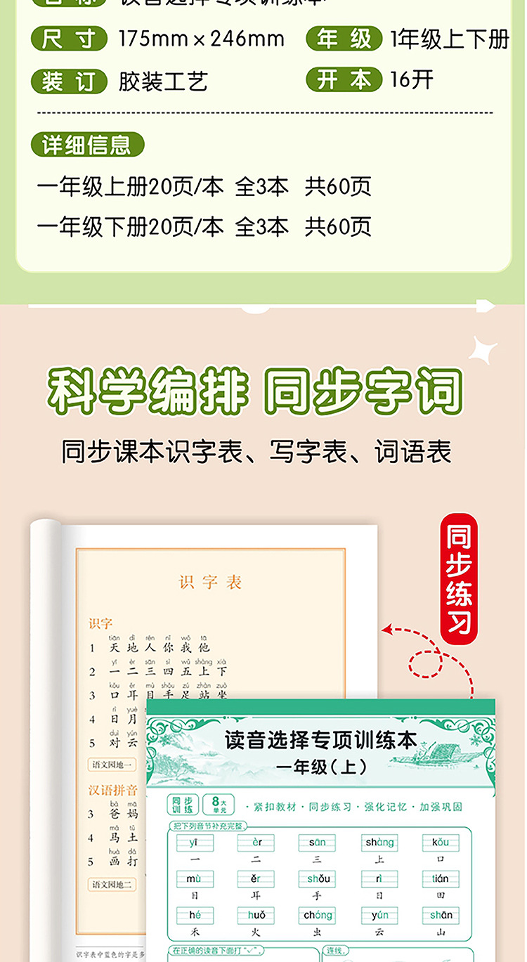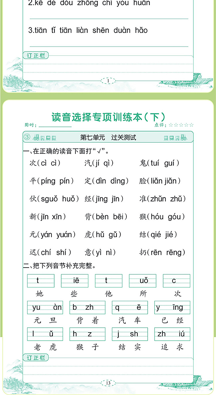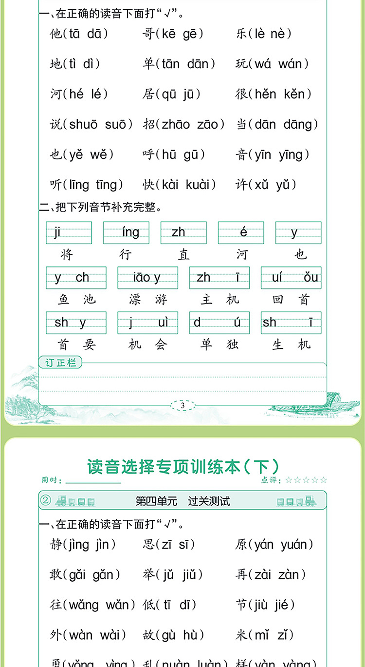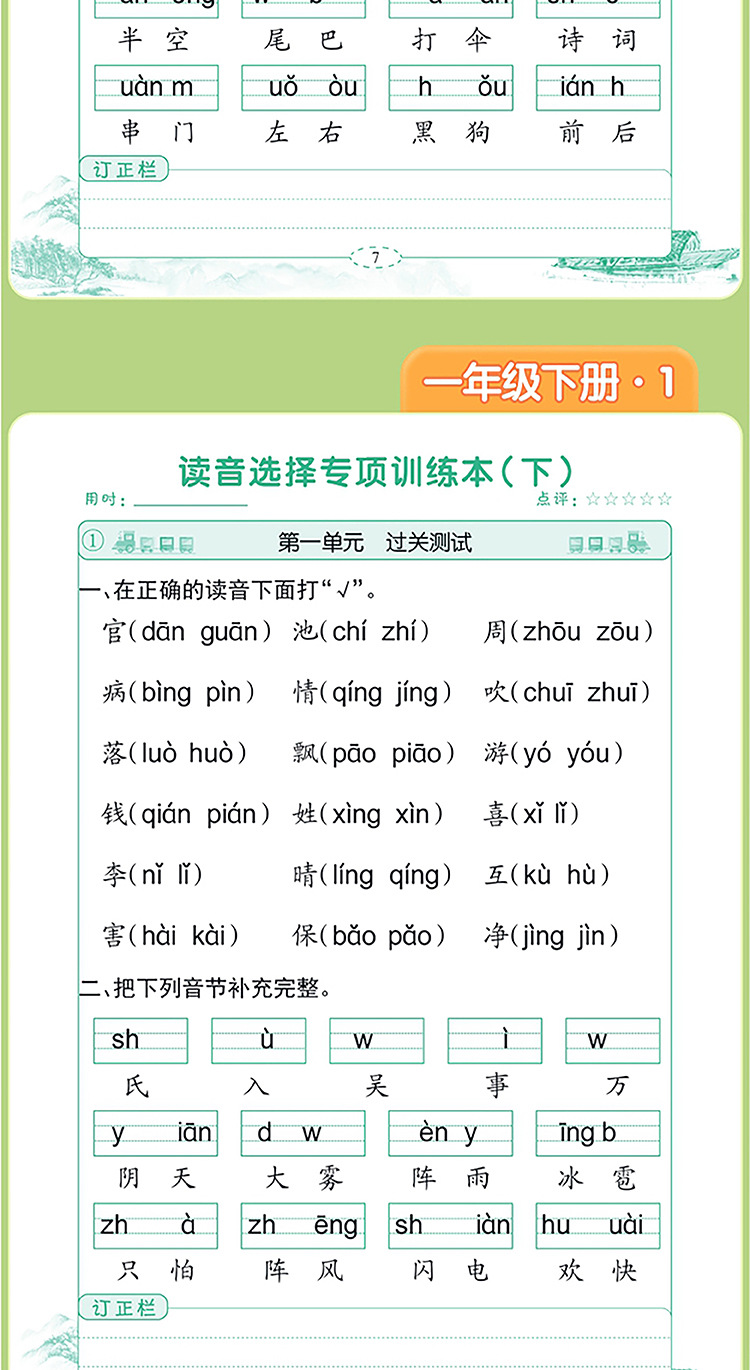 1 학년 발음 선택 특수 운동 종이 인민 교육 판 중국 동기화 훈련 종이 병음 단어 초등 학생을위한 책스토어 가기
