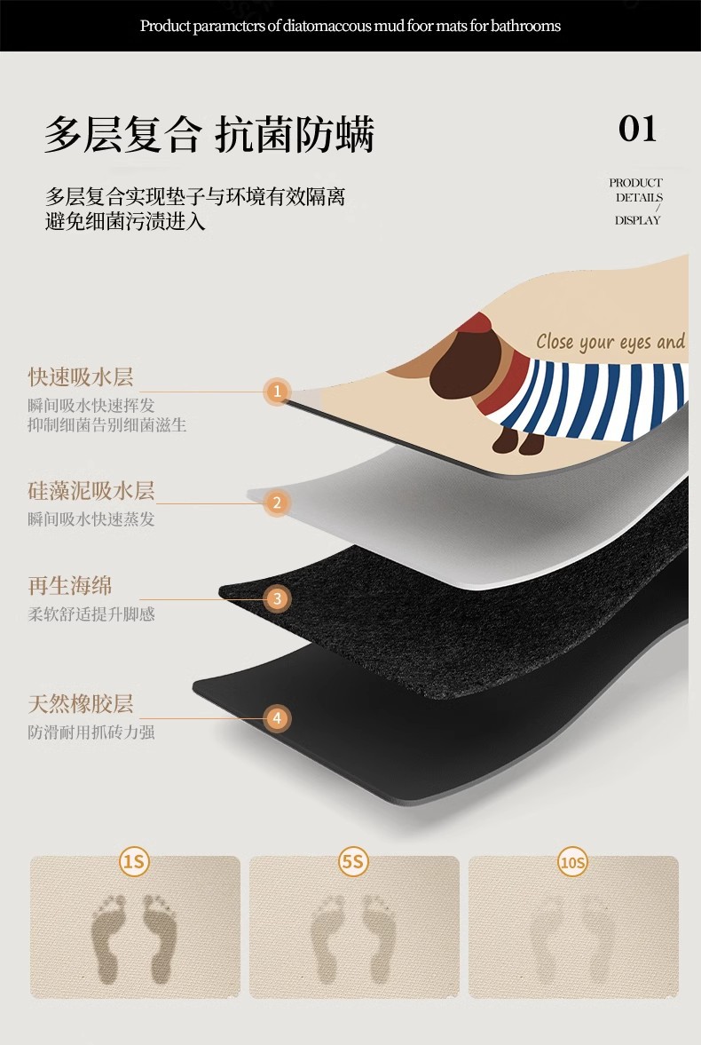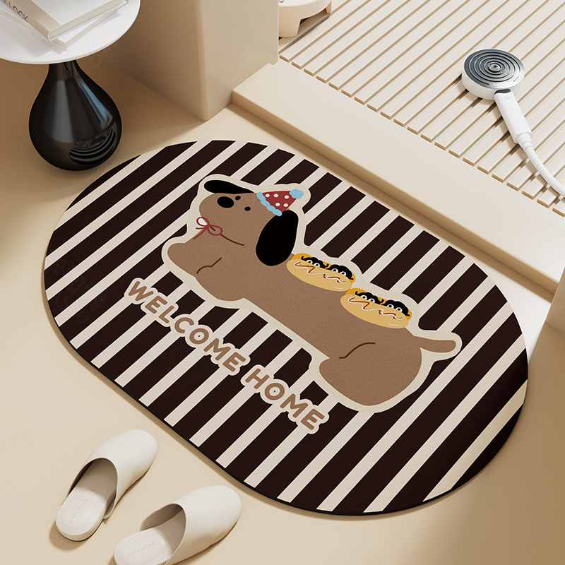 만화 귀여운 초콜릿 강아지 바닥 매트 욕실 물 흡수 비 슬립 빠른 건조 문지름 발 매트 머리카락 세대스토어 가기