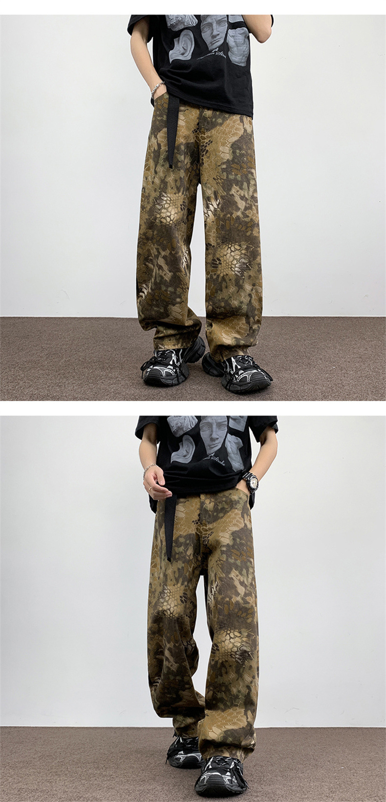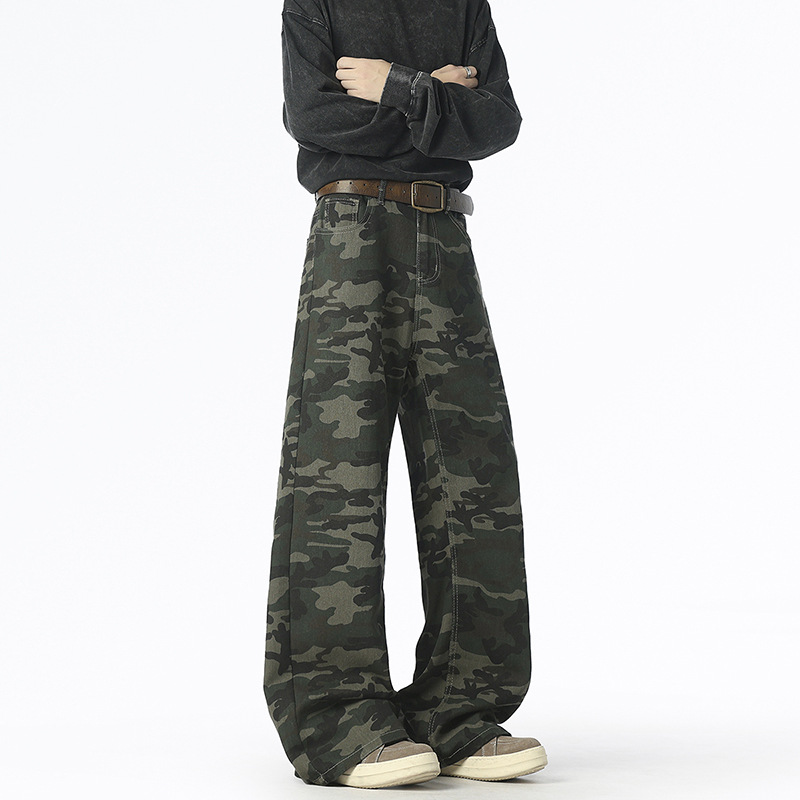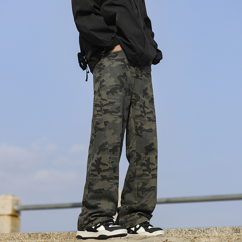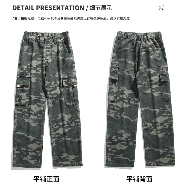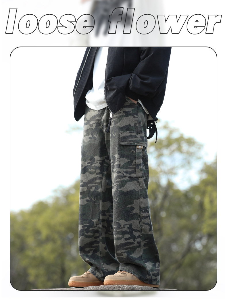 위장 청바지 남자 스트레이트 느슨한 가을 새로운 남자 캐주얼 툴링 올 매치 재킷 남자 트렌디 브랜드 바지스토어 가기