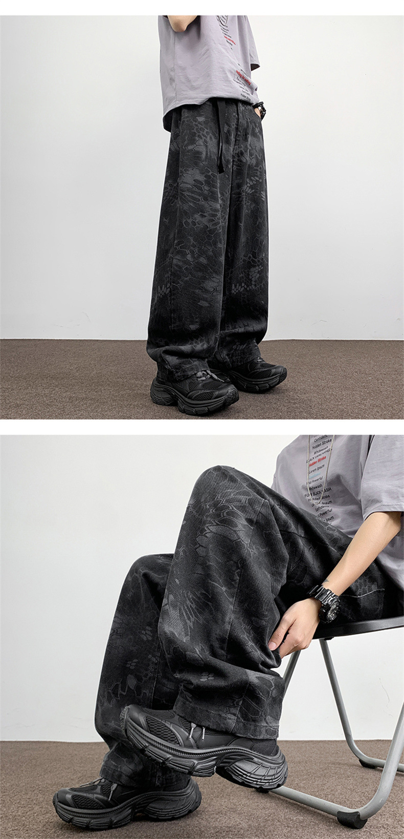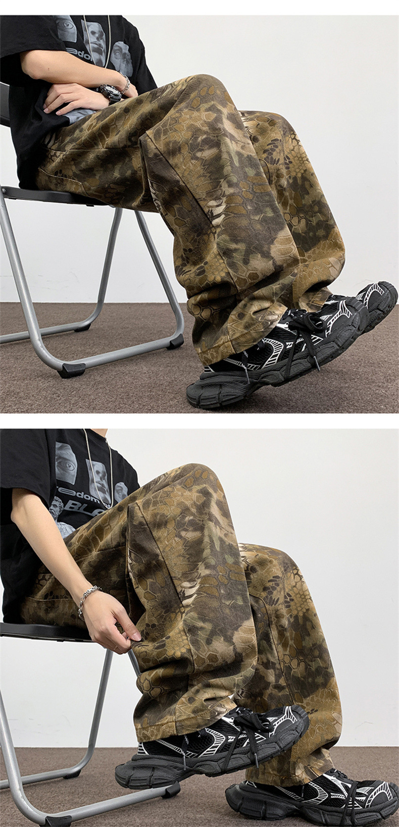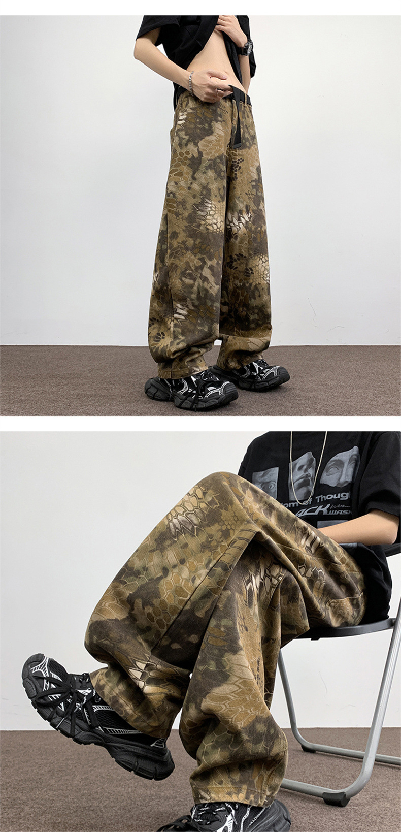 위장 청바지 남자 스트레이트 느슨한 가을 새로운 남자 캐주얼 툴링 올 매치 재킷 남자 트렌디 브랜드 바지스토어 가기