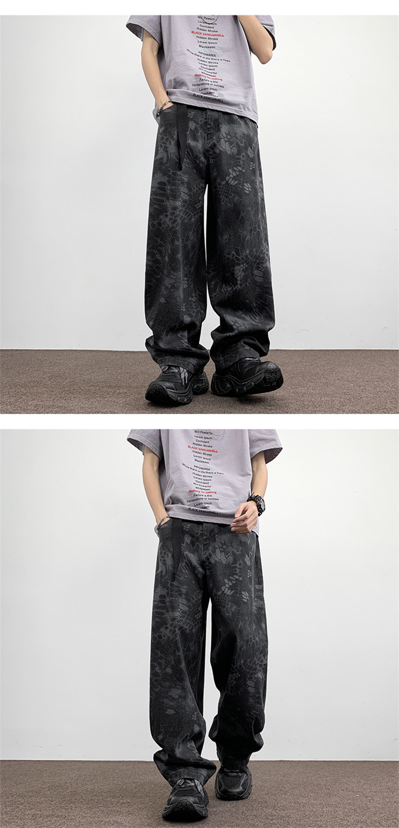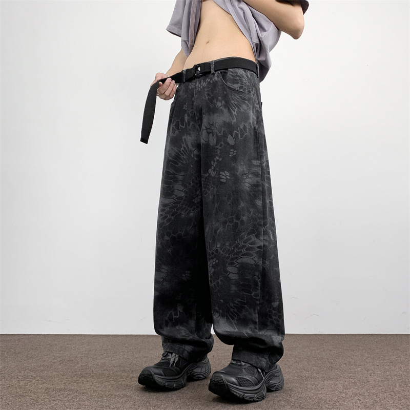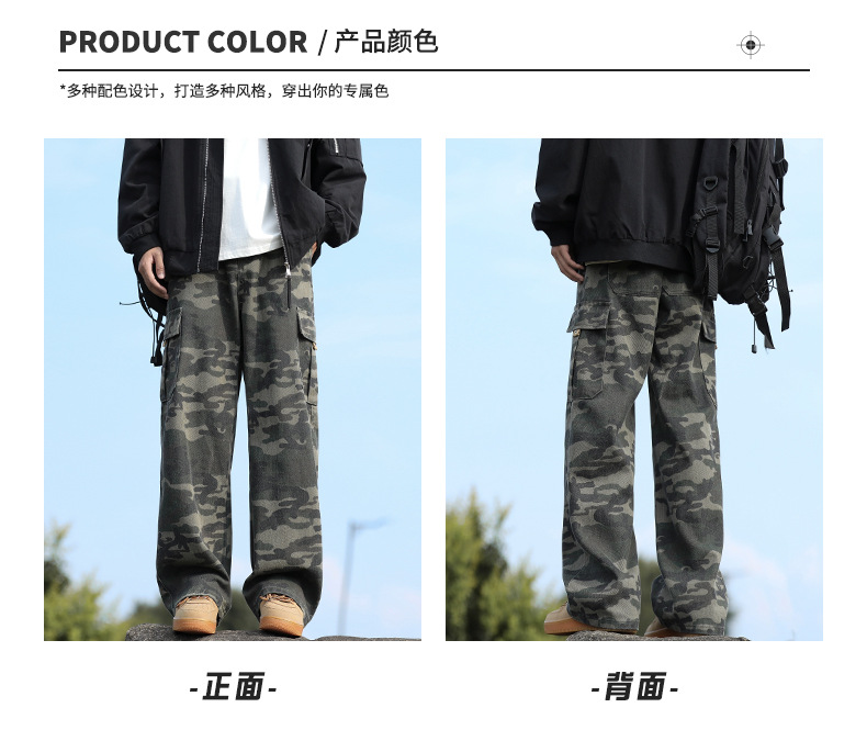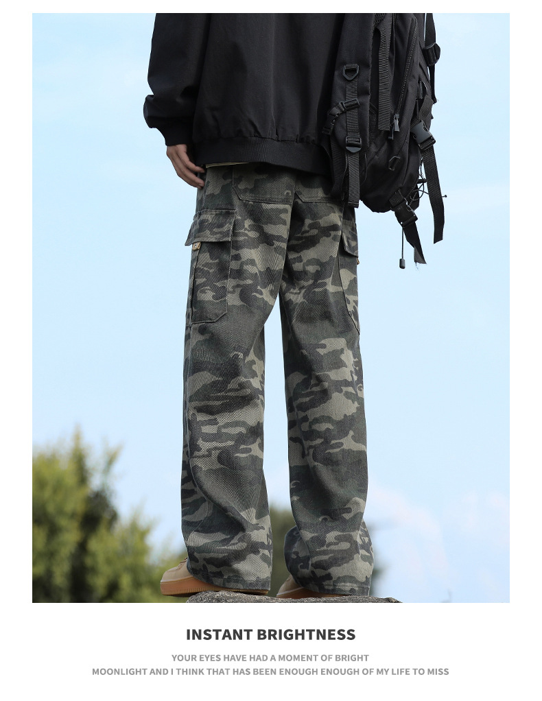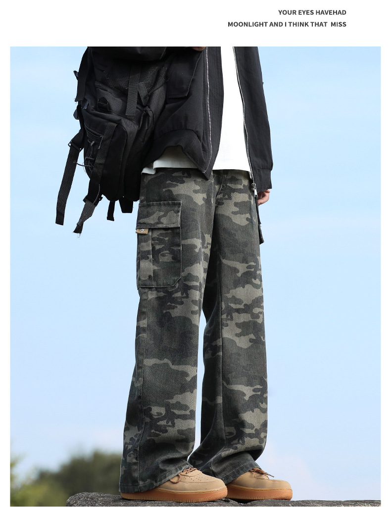 위장 청바지 남자 스트레이트 느슨한 가을 새로운 남자 캐주얼 툴링 올 매치 재킷 남자 트렌디 브랜드 바지